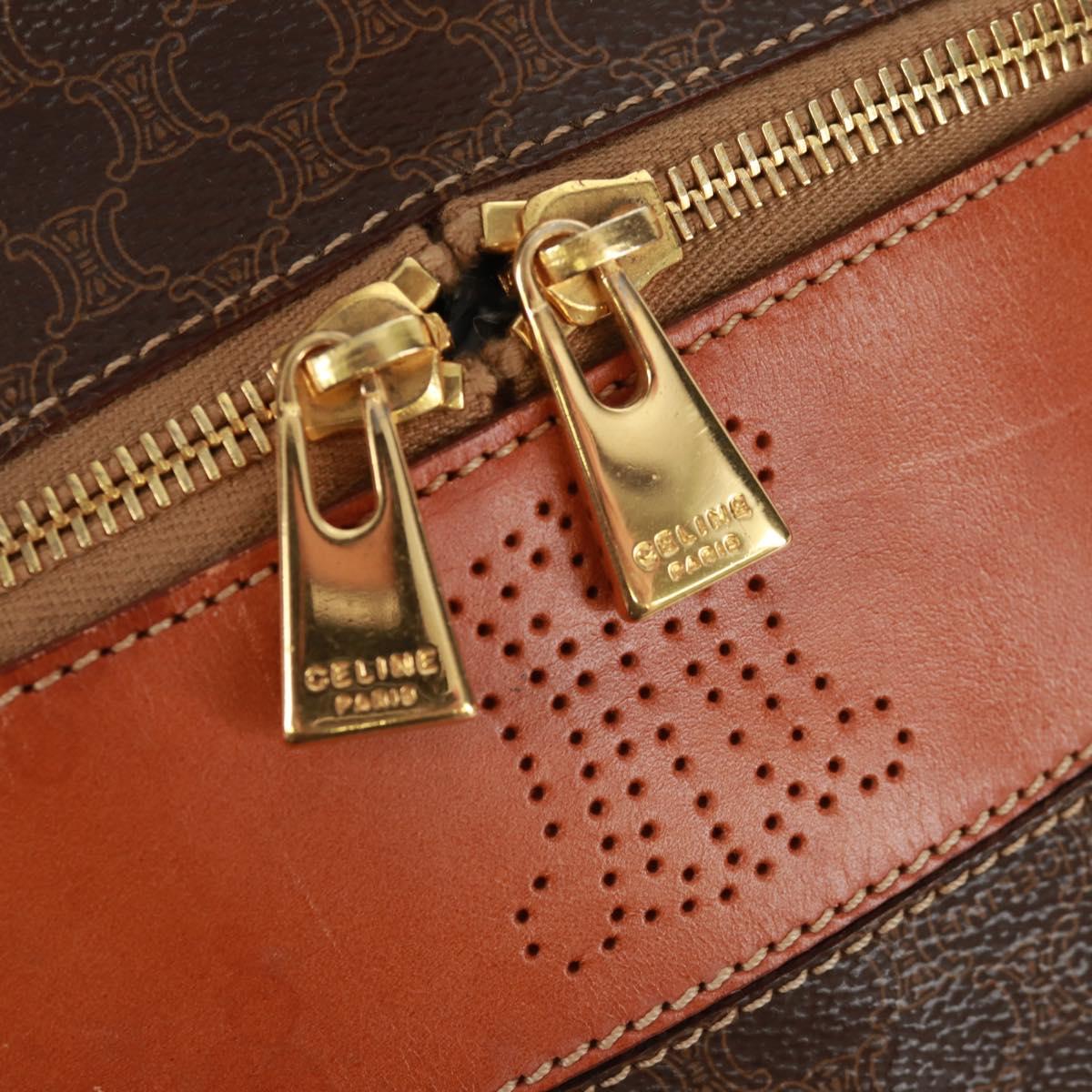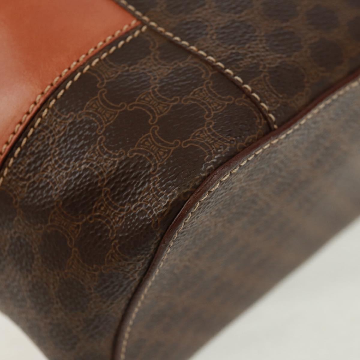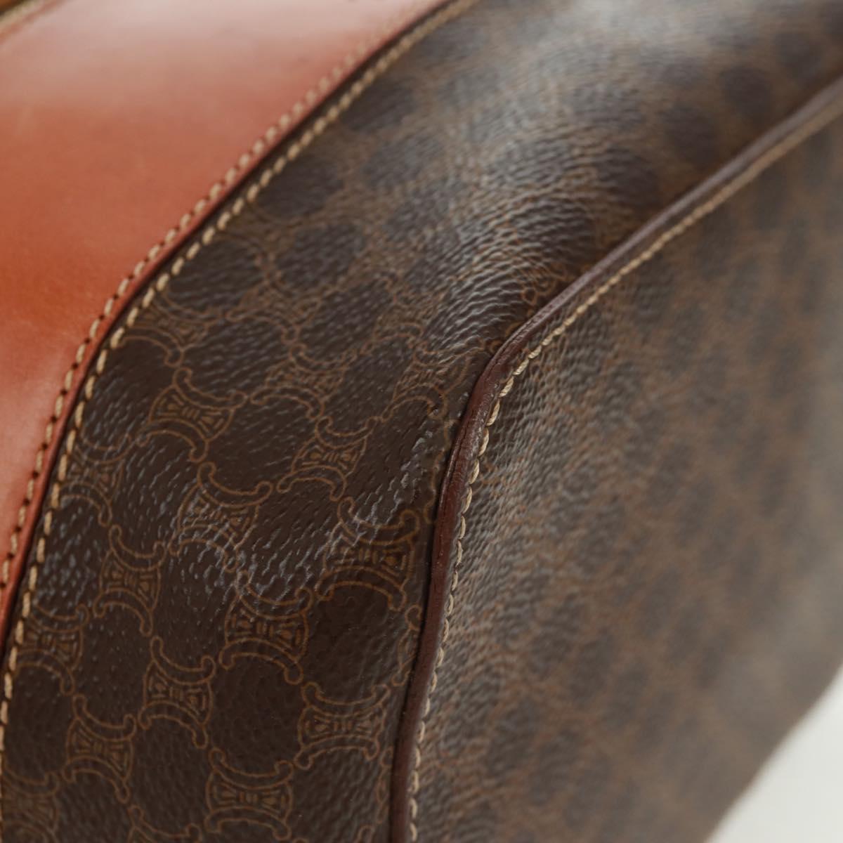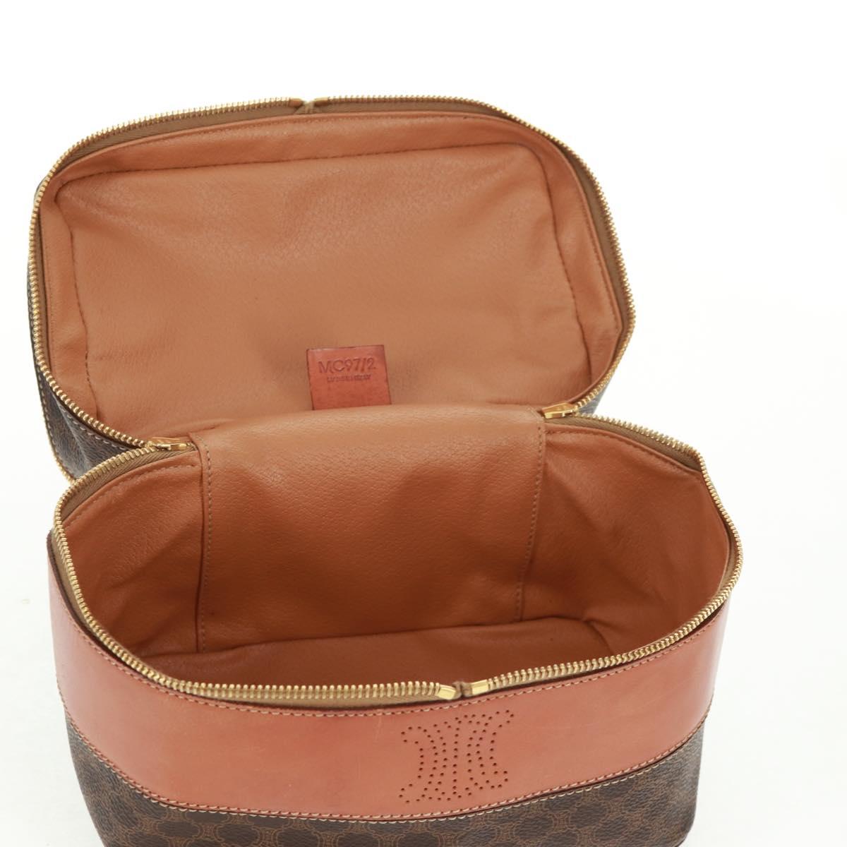 CELINE Vanity Macadam Canvas Hand Bag PVC Leather Brown Gold Auth 163366V