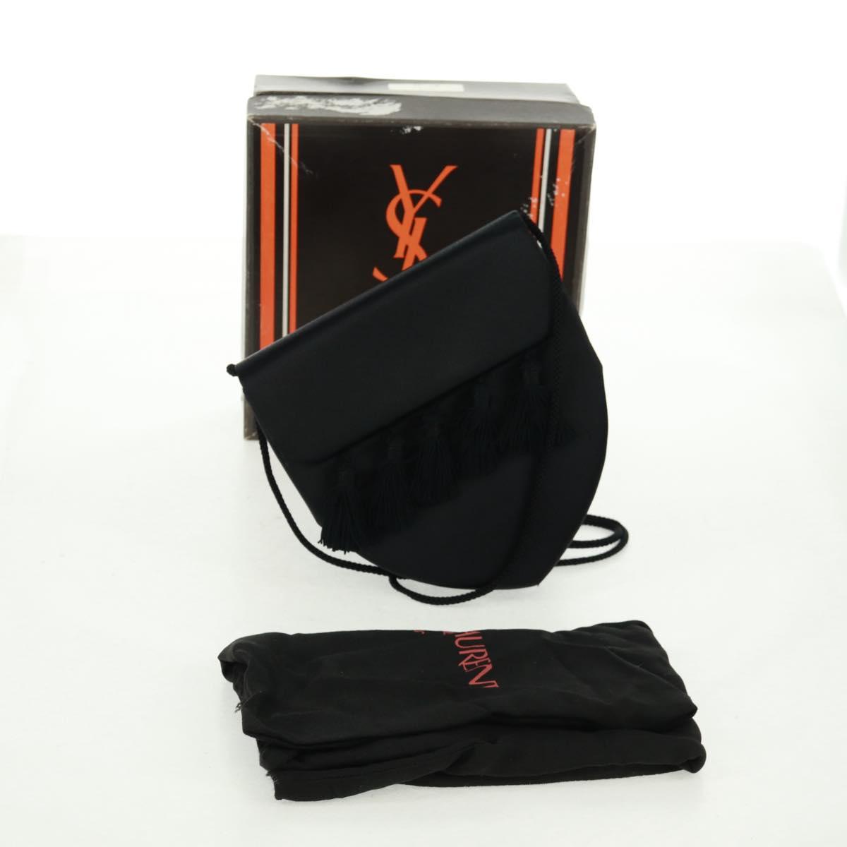 SAINT LAURENT Shoulder Bag Satin Black Auth 164069V