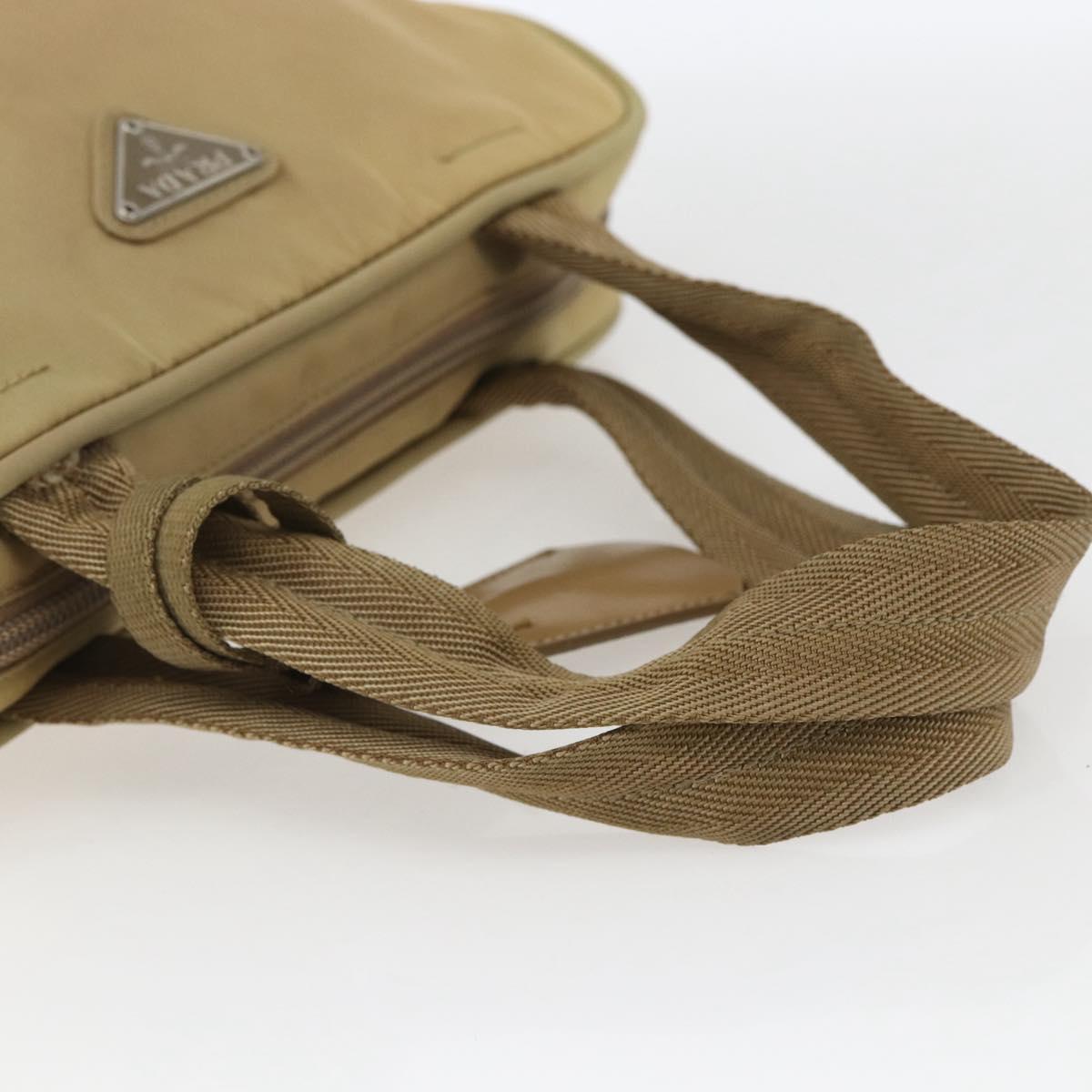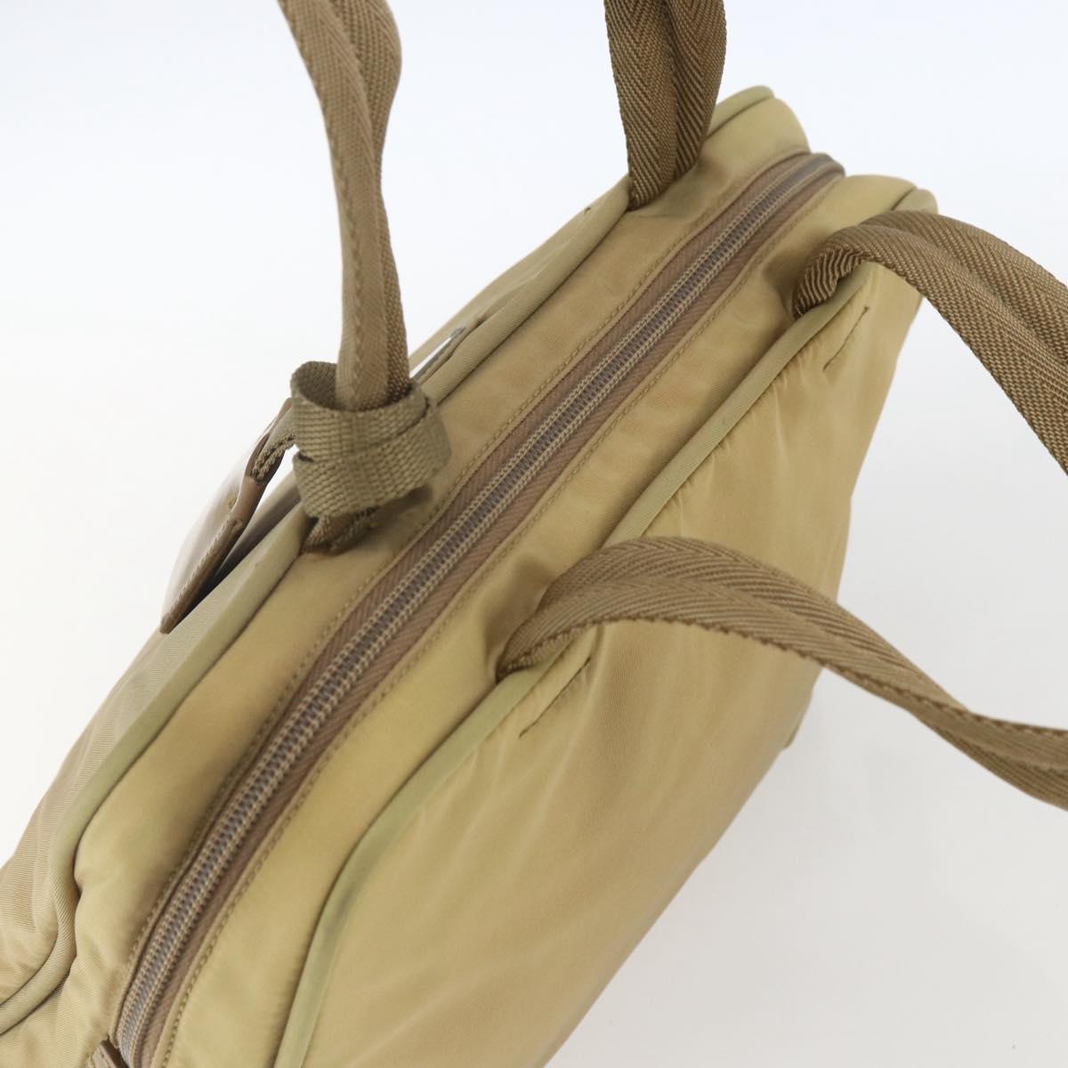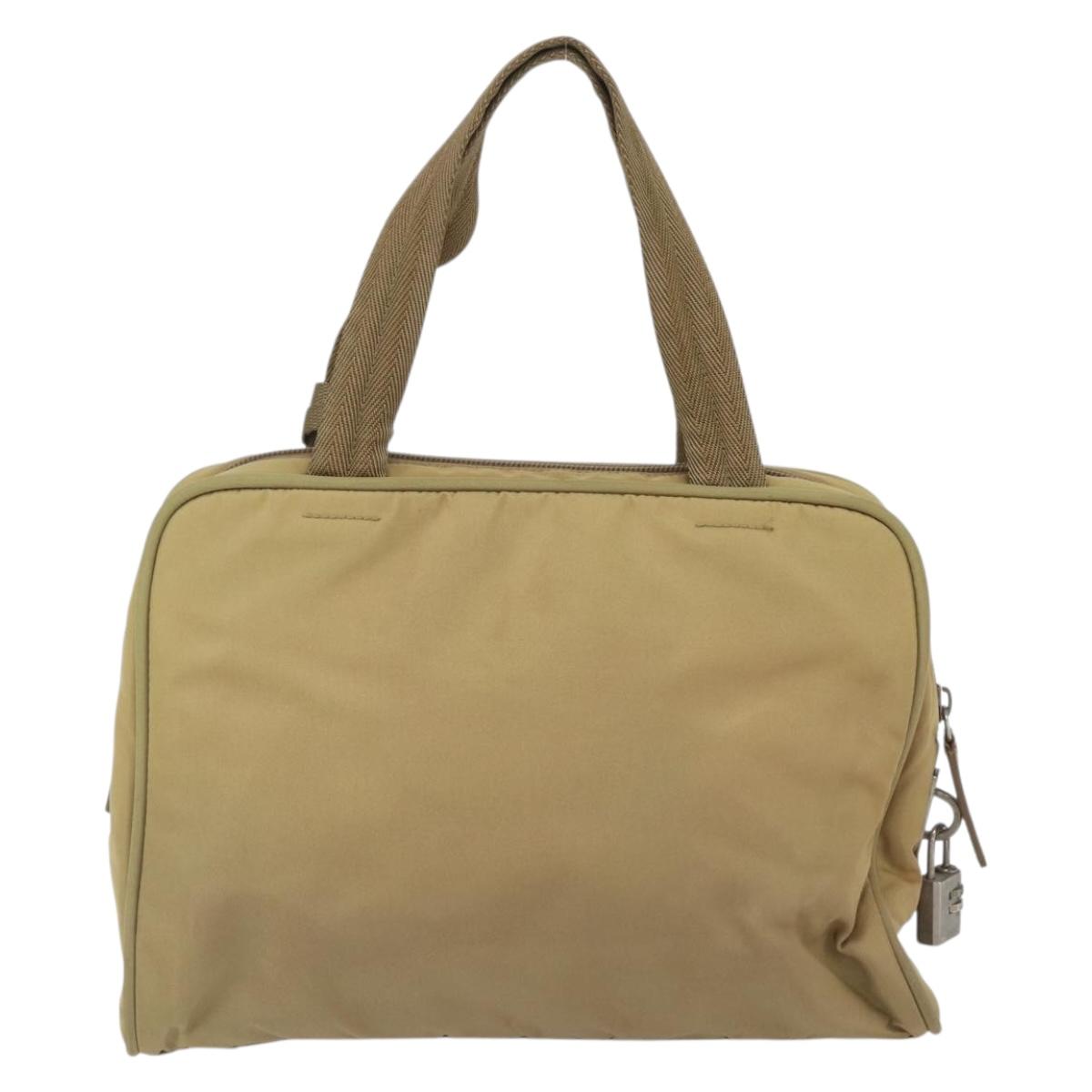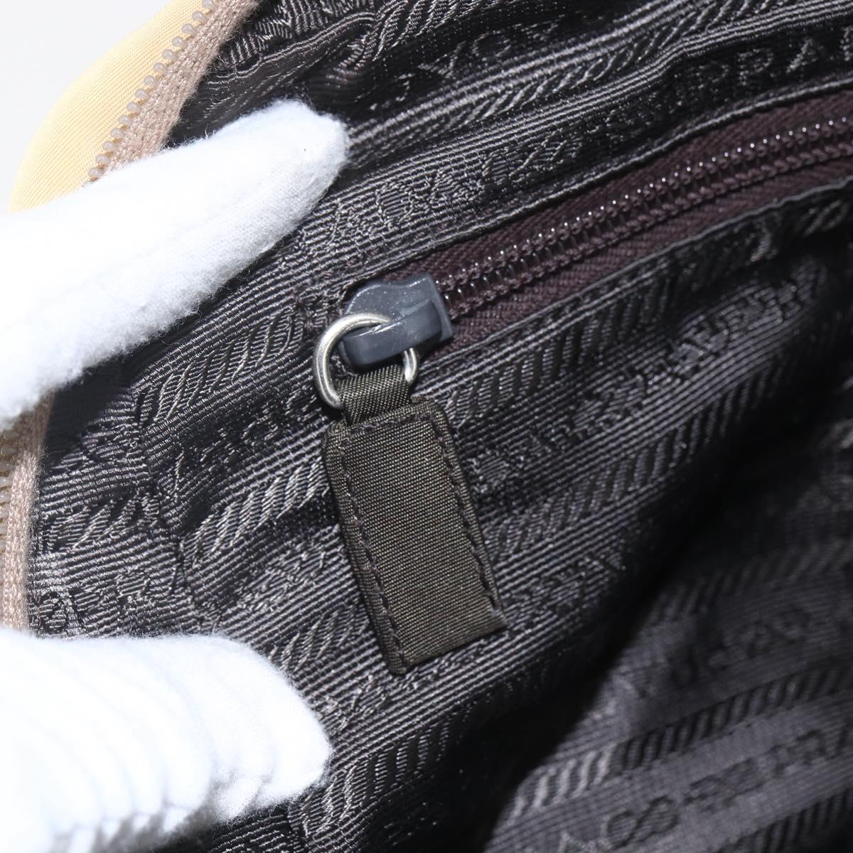 PRADA Hand Bag Nylon Beige Silver Auth SW1890