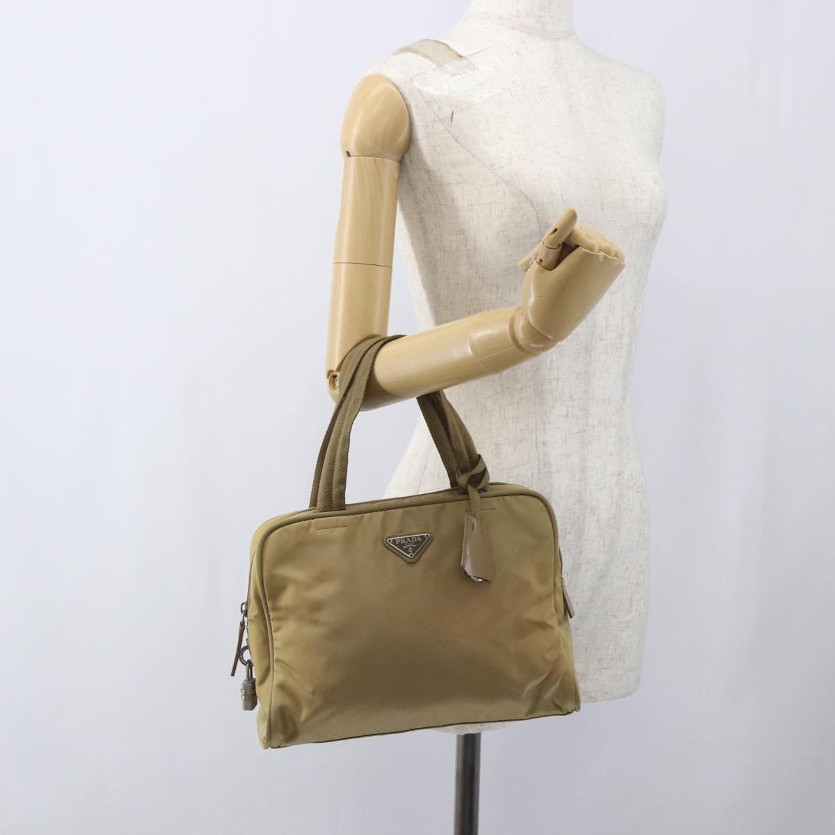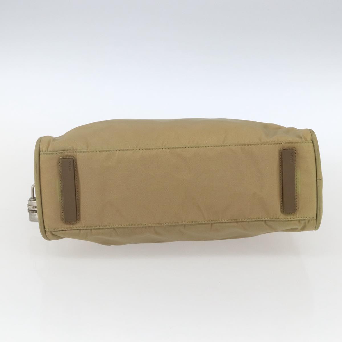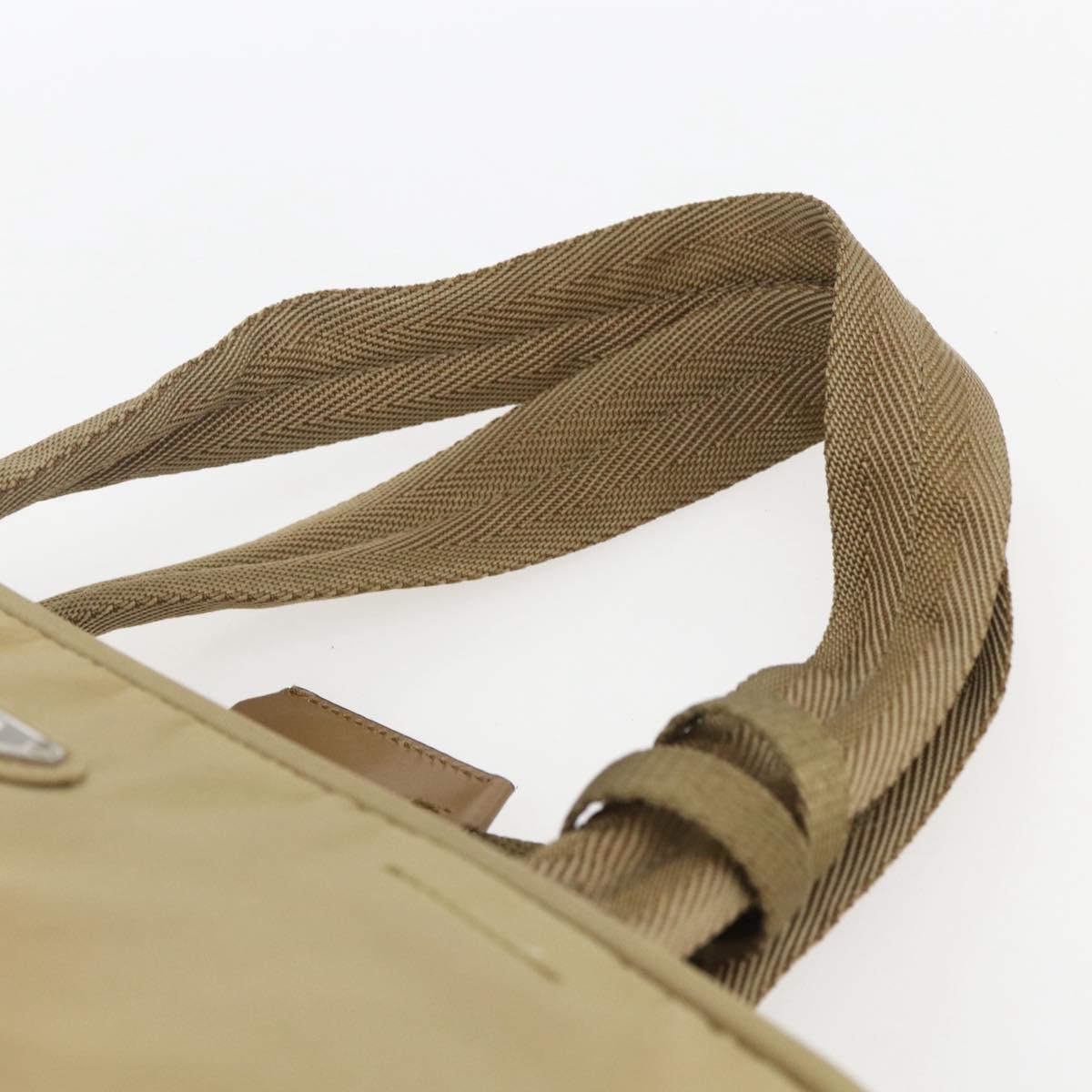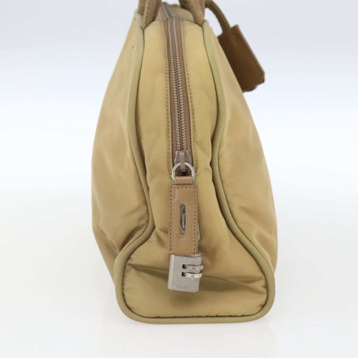 PRADA Hand Bag Nylon Beige Silver Auth SW1890