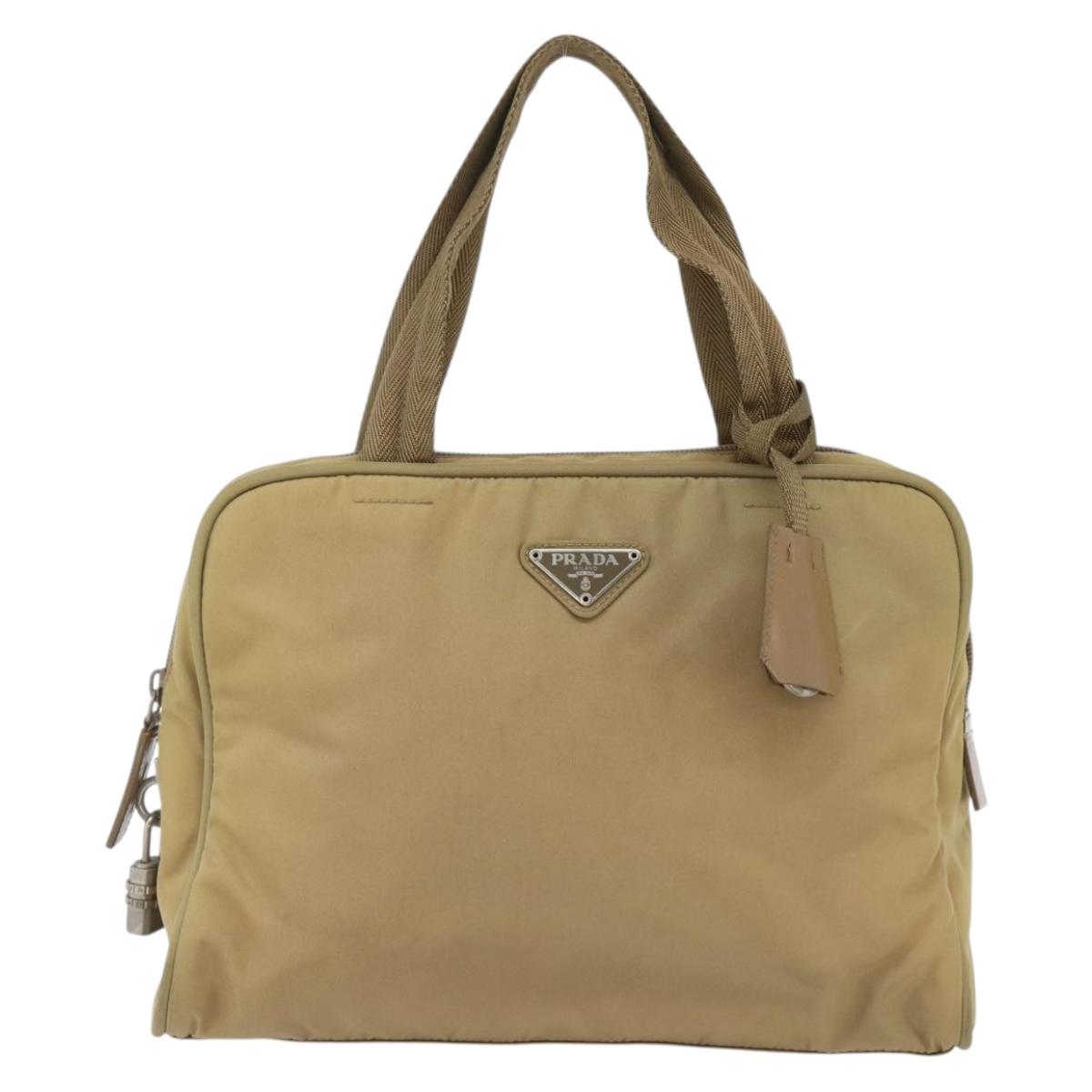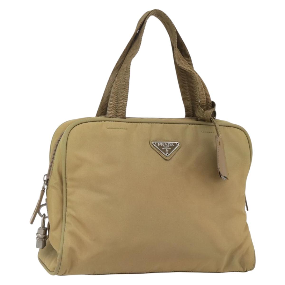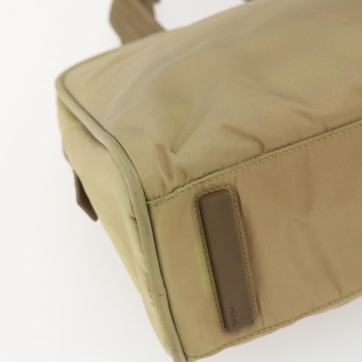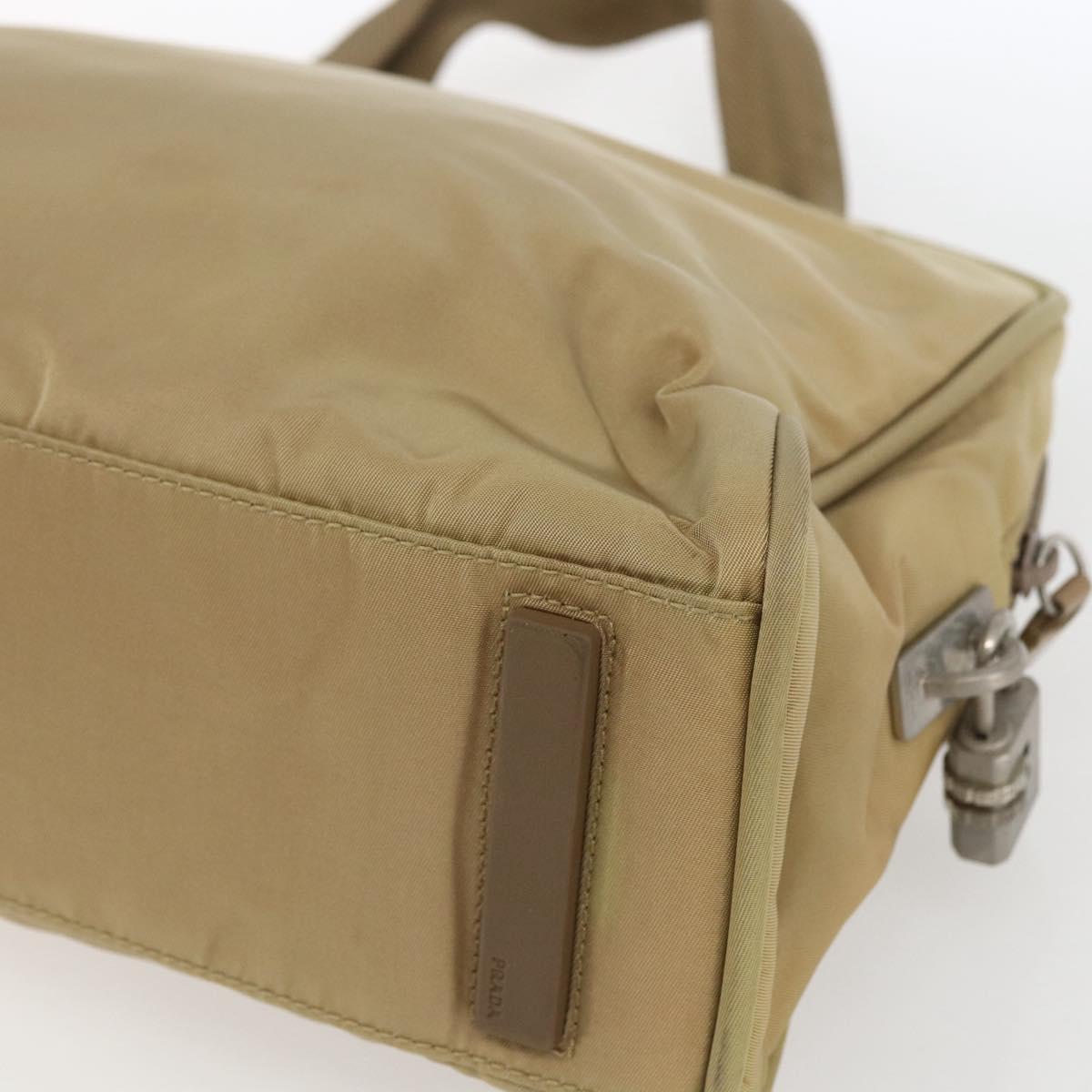 PRADA Hand Bag Nylon Beige Silver Auth SW1890