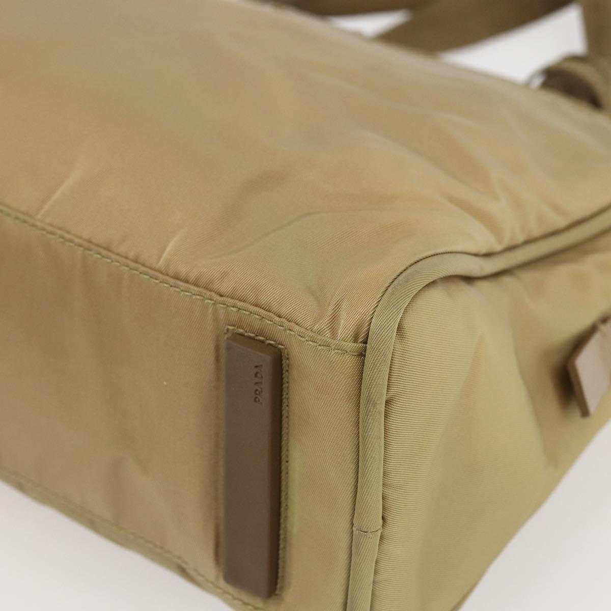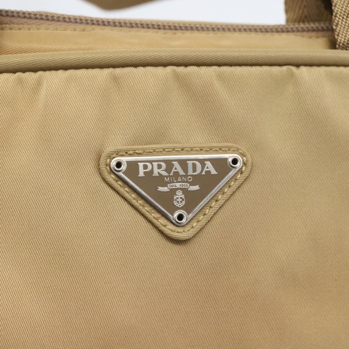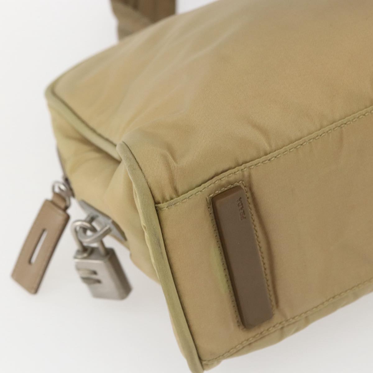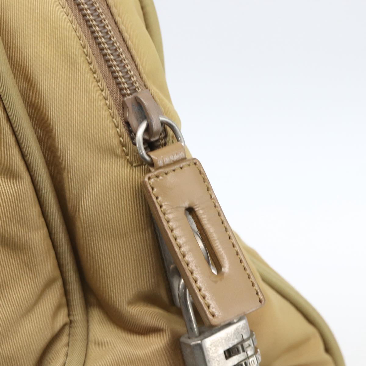 PRADA Hand Bag Nylon Beige Silver Auth SW1890