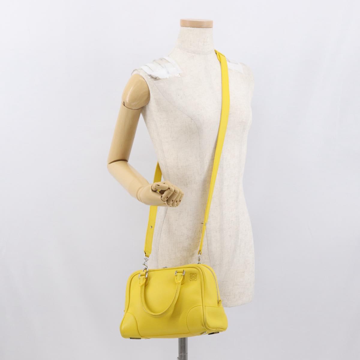 LOEWE Hand Bag Leather 2way Yellow Silver Auth ka1544