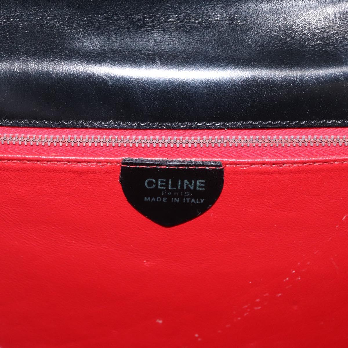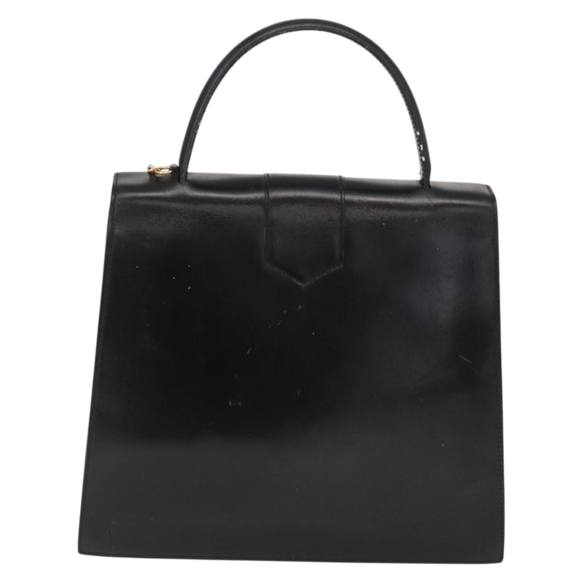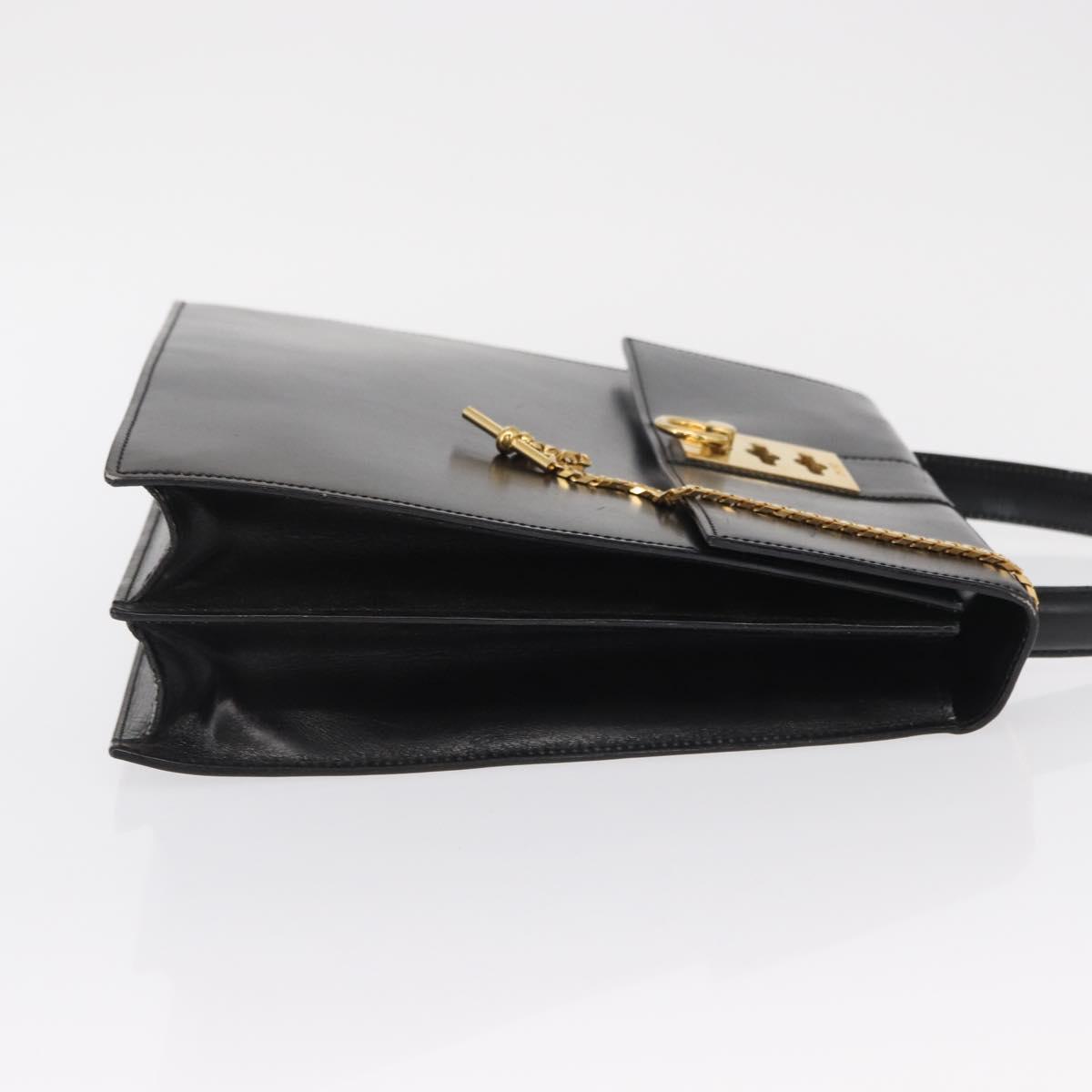 CELINE Hand Bag Leather Black Gold Auth 165770
