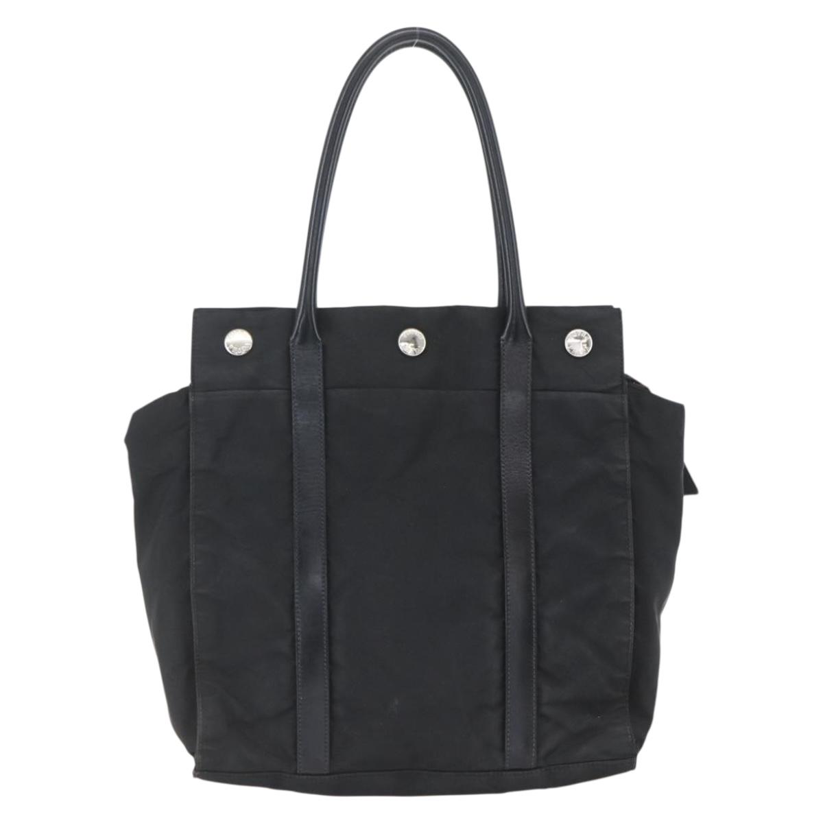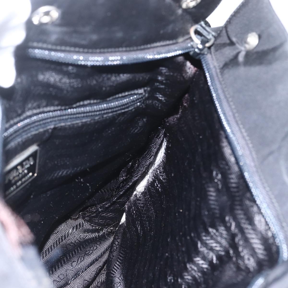PRADA Hand Bag Nylon Black Silver Auth 153784