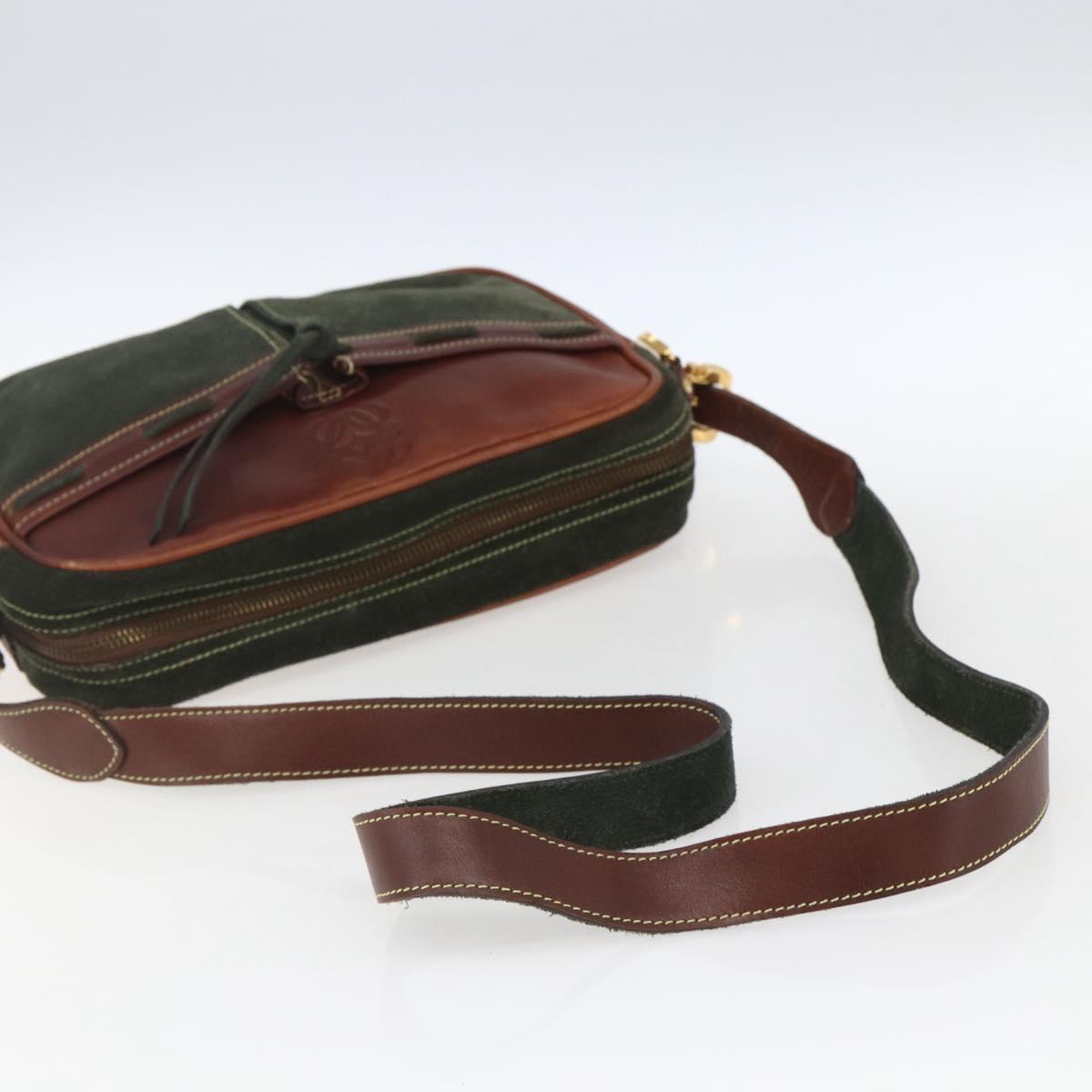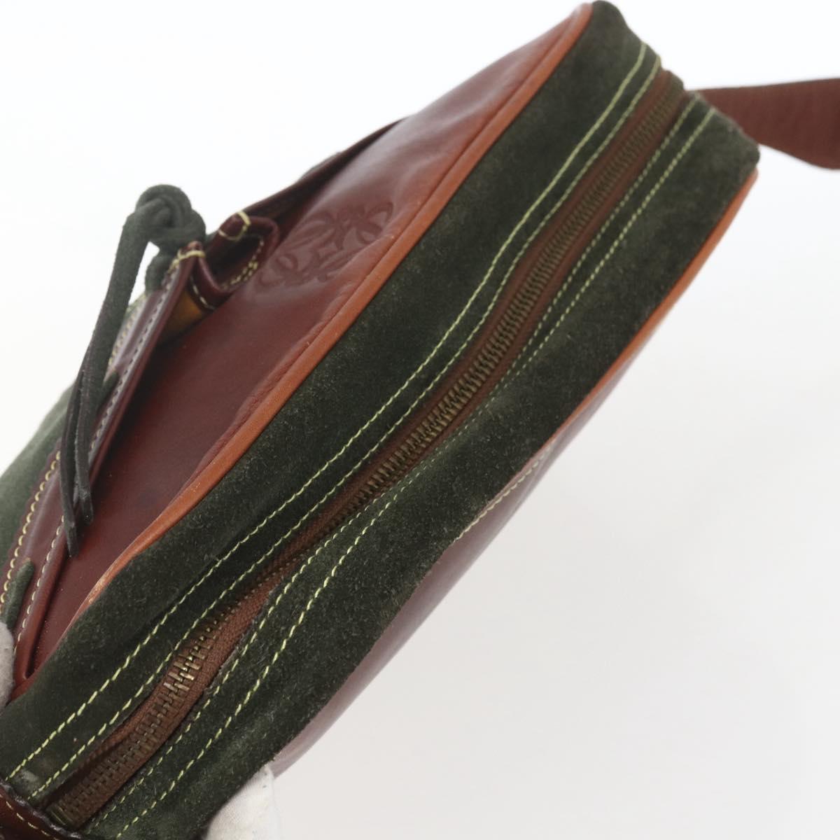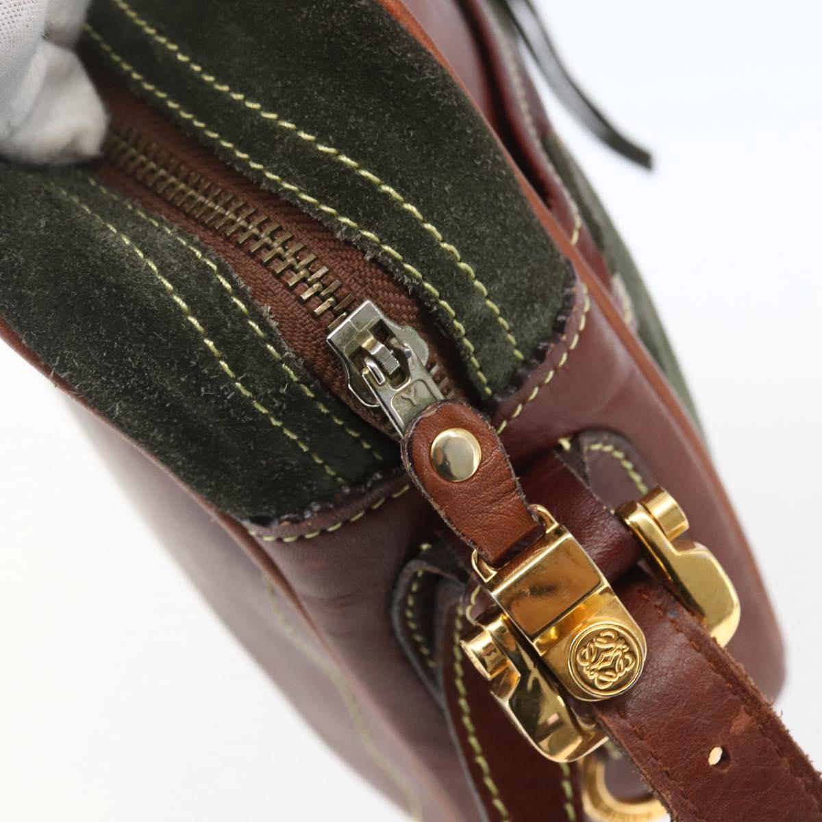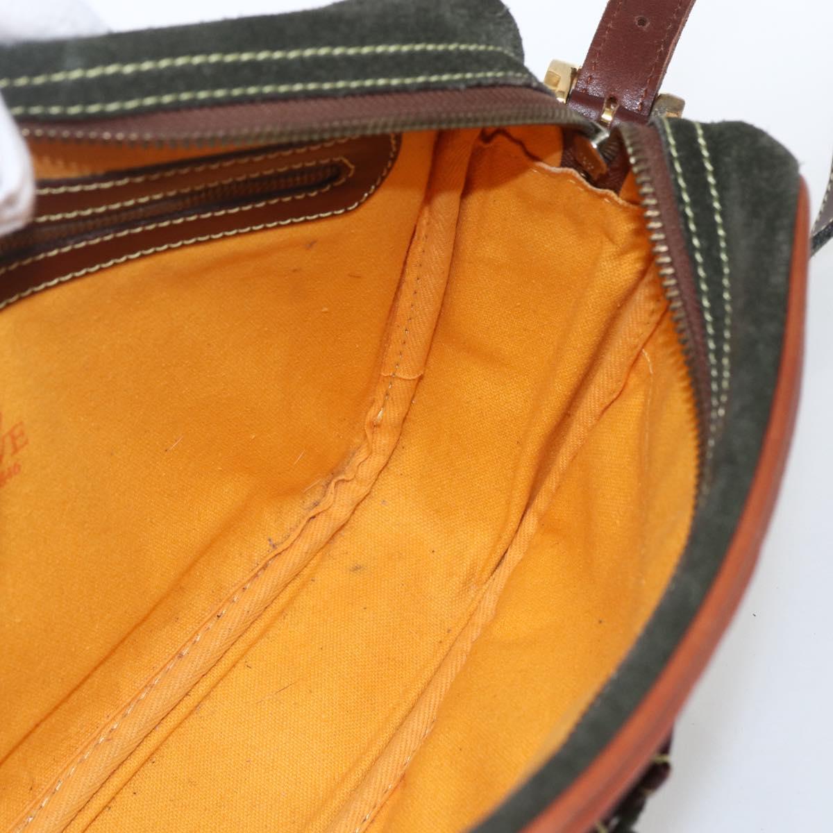 LOEWE Shoulder Bag Suede Khaki Gold Auth bs32579