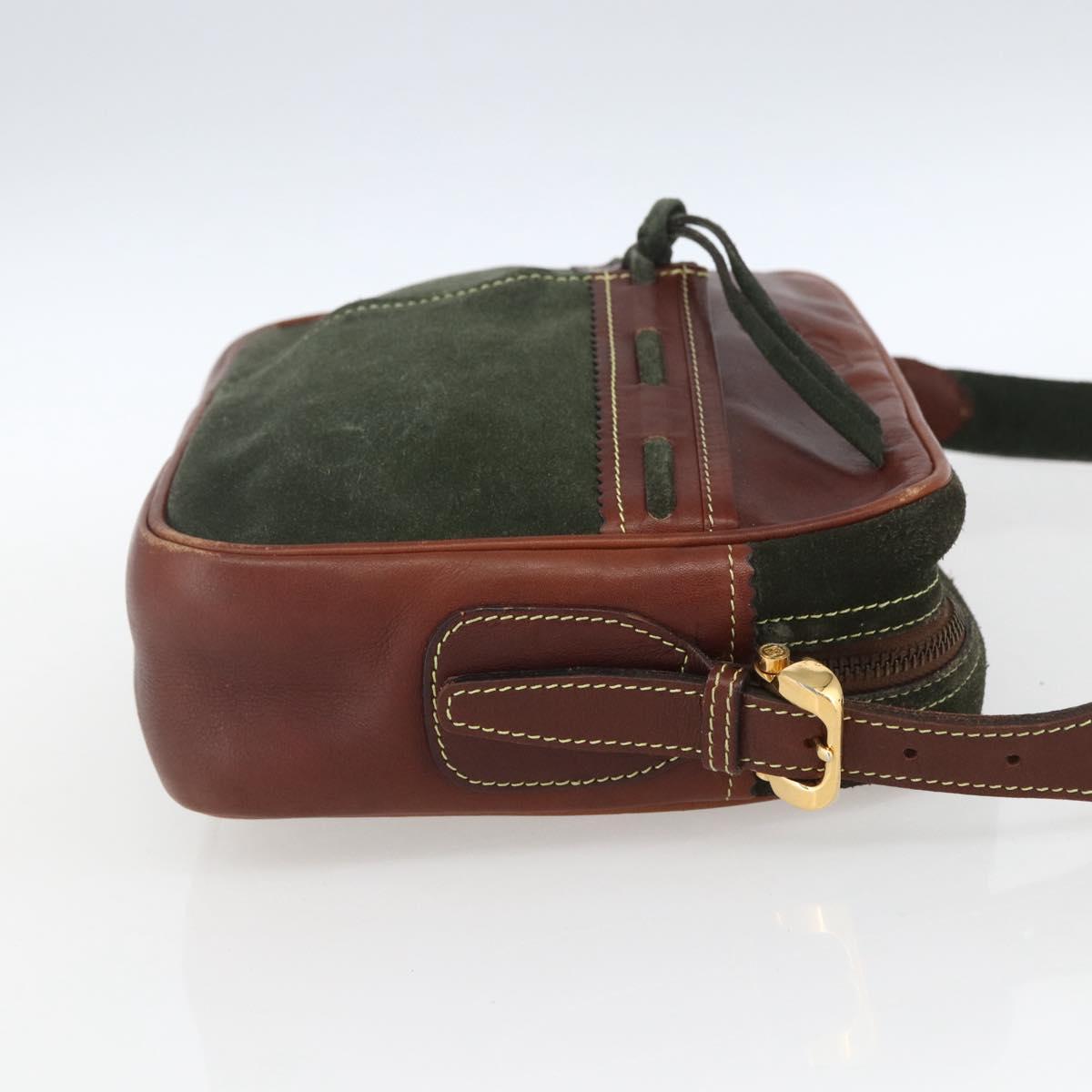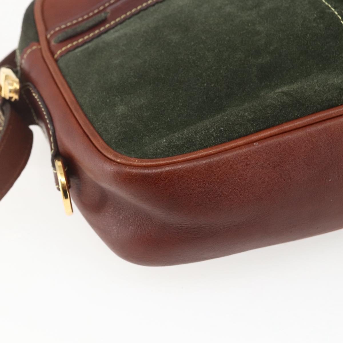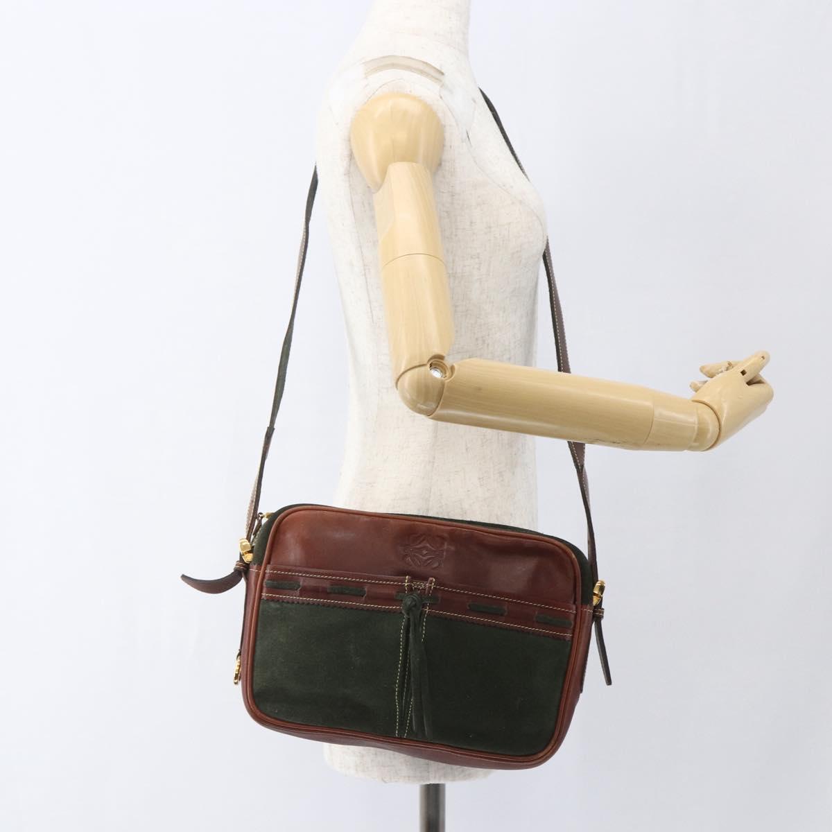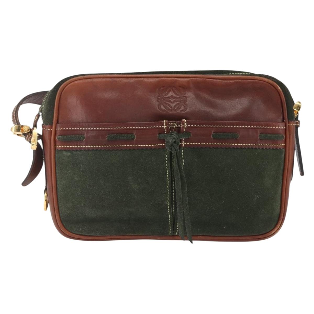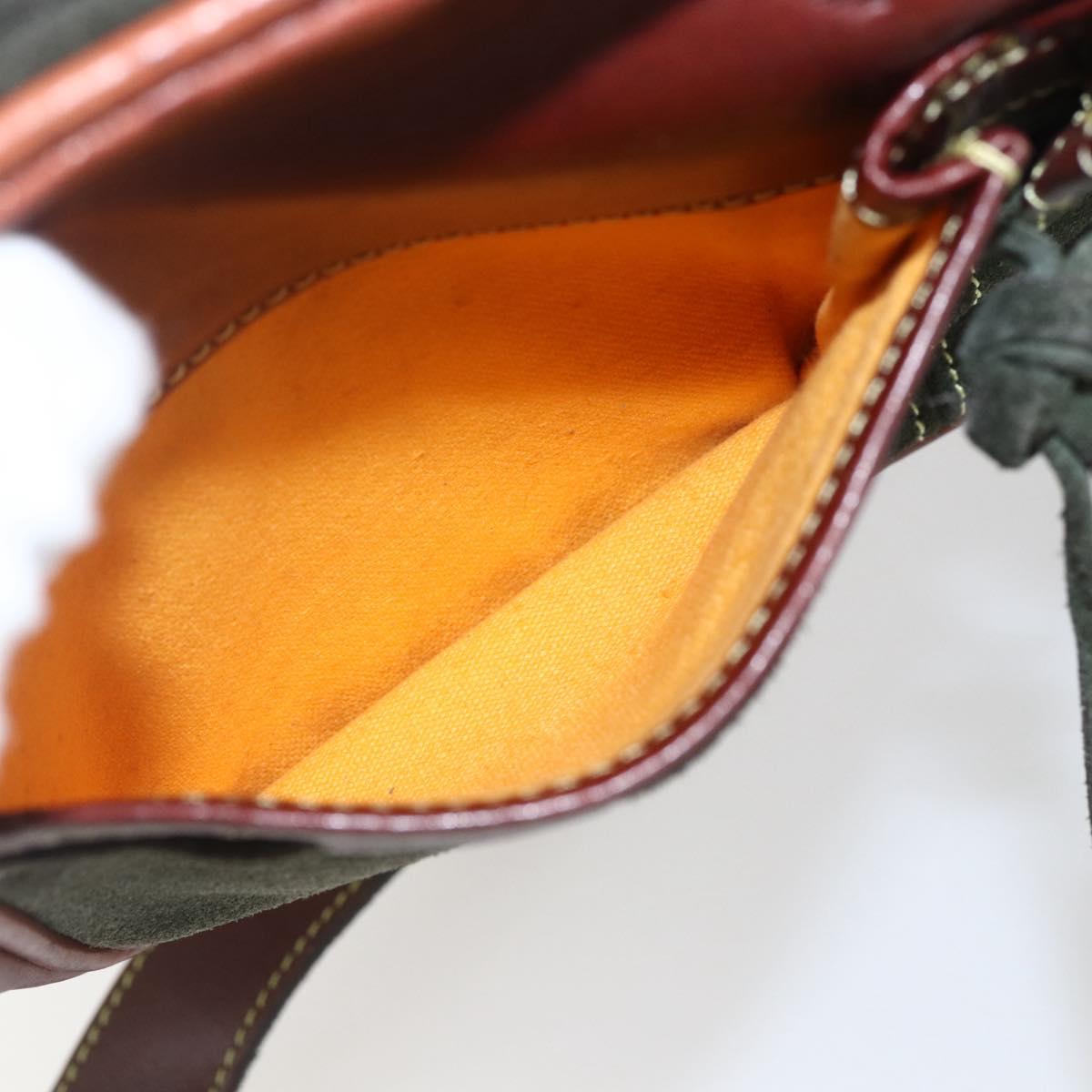 LOEWE Shoulder Bag Suede Khaki Gold Auth bs32579