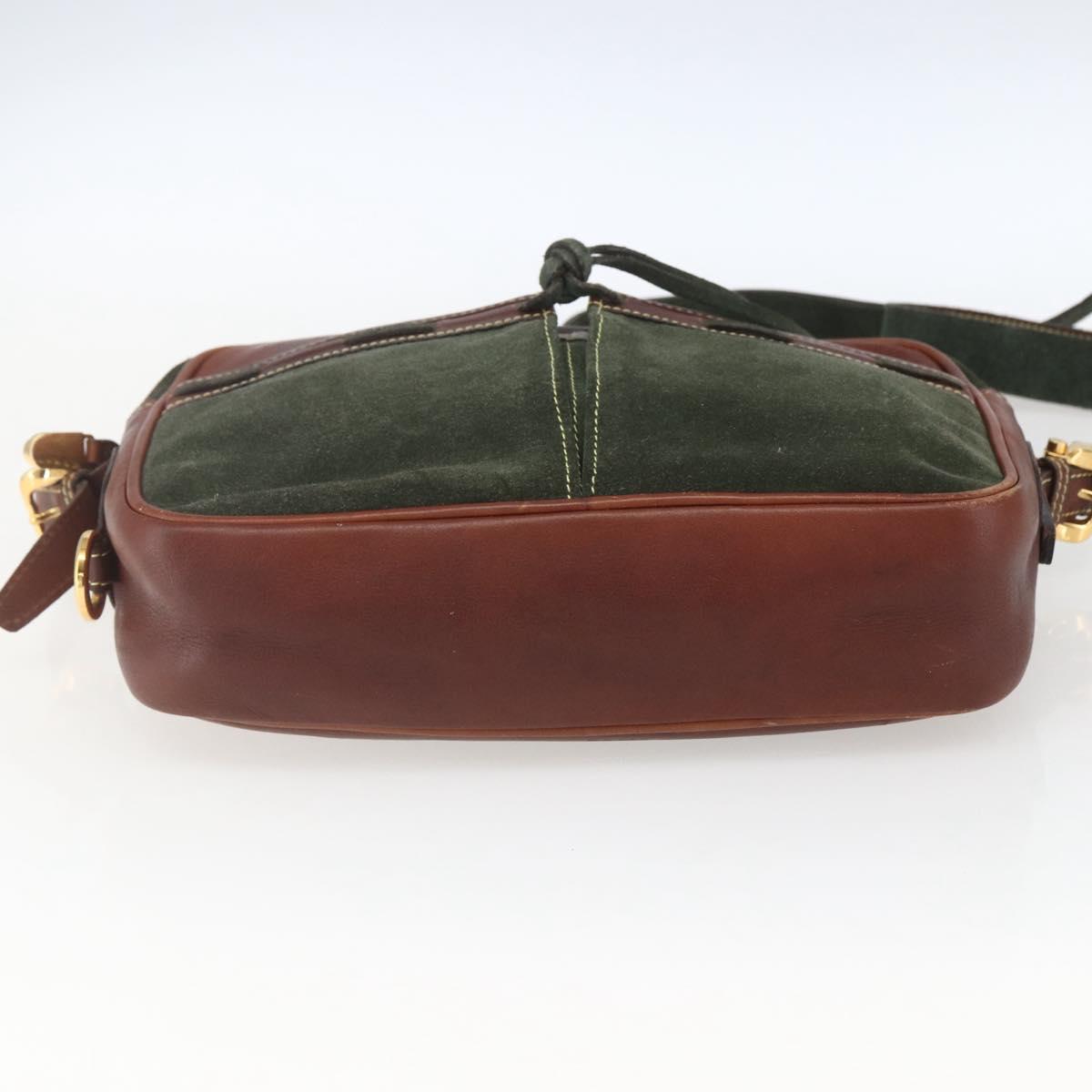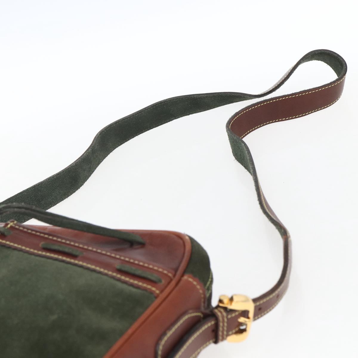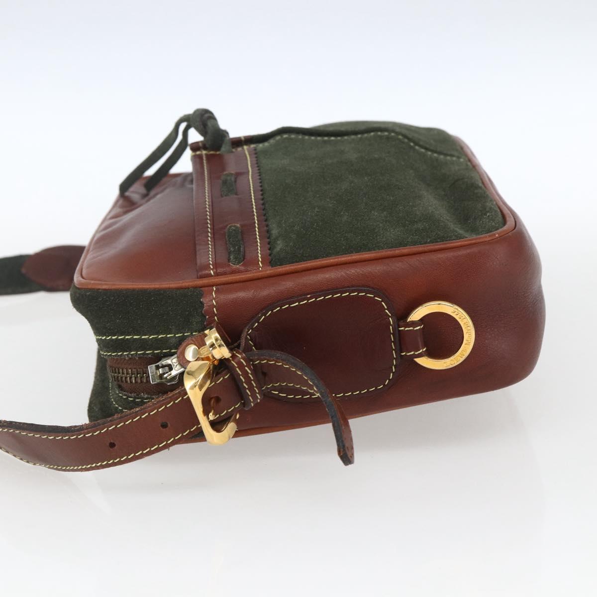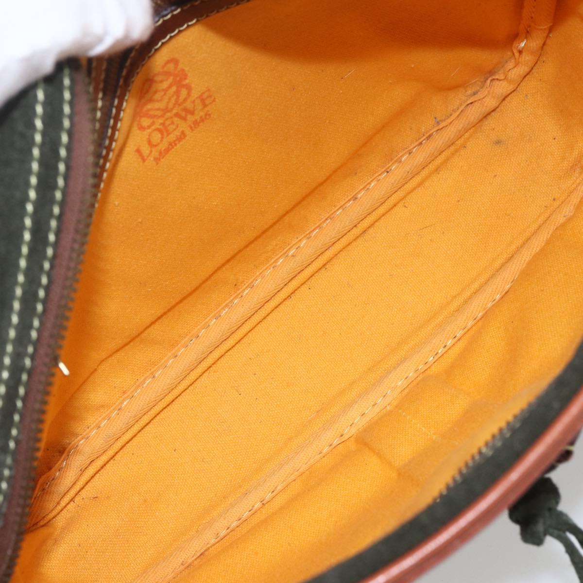 LOEWE Shoulder Bag Suede Khaki Gold Auth bs32579