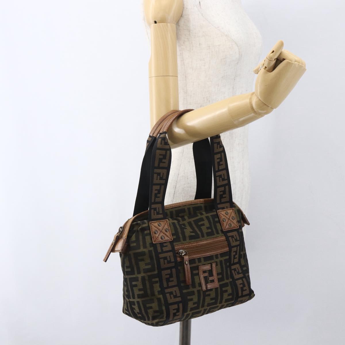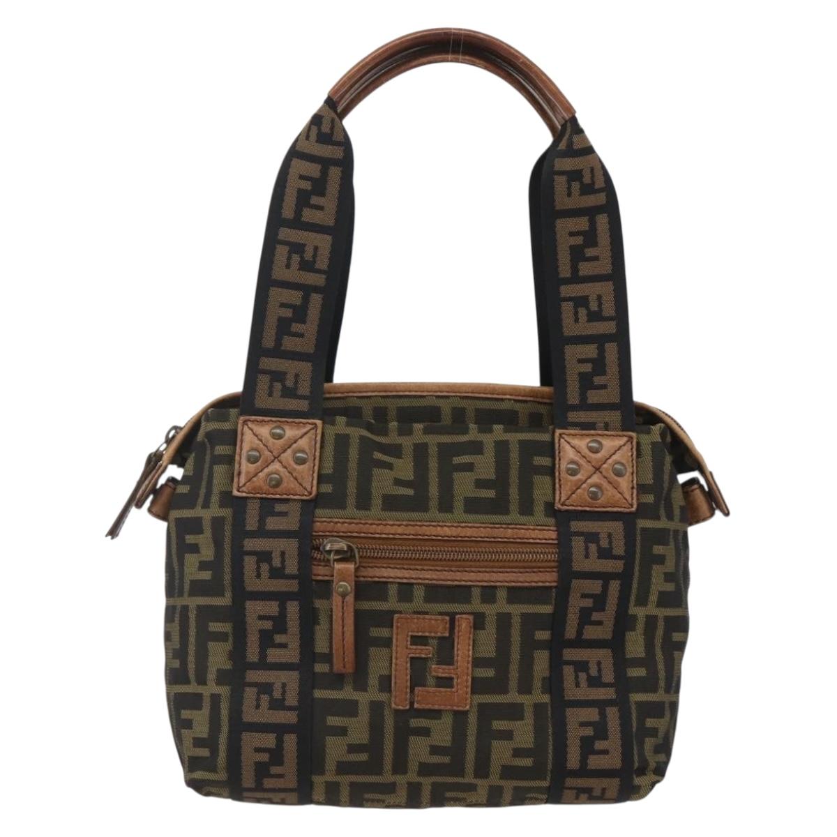 FENDI Zucca Canvas Tote Bag Black Brown Auth ki6340
