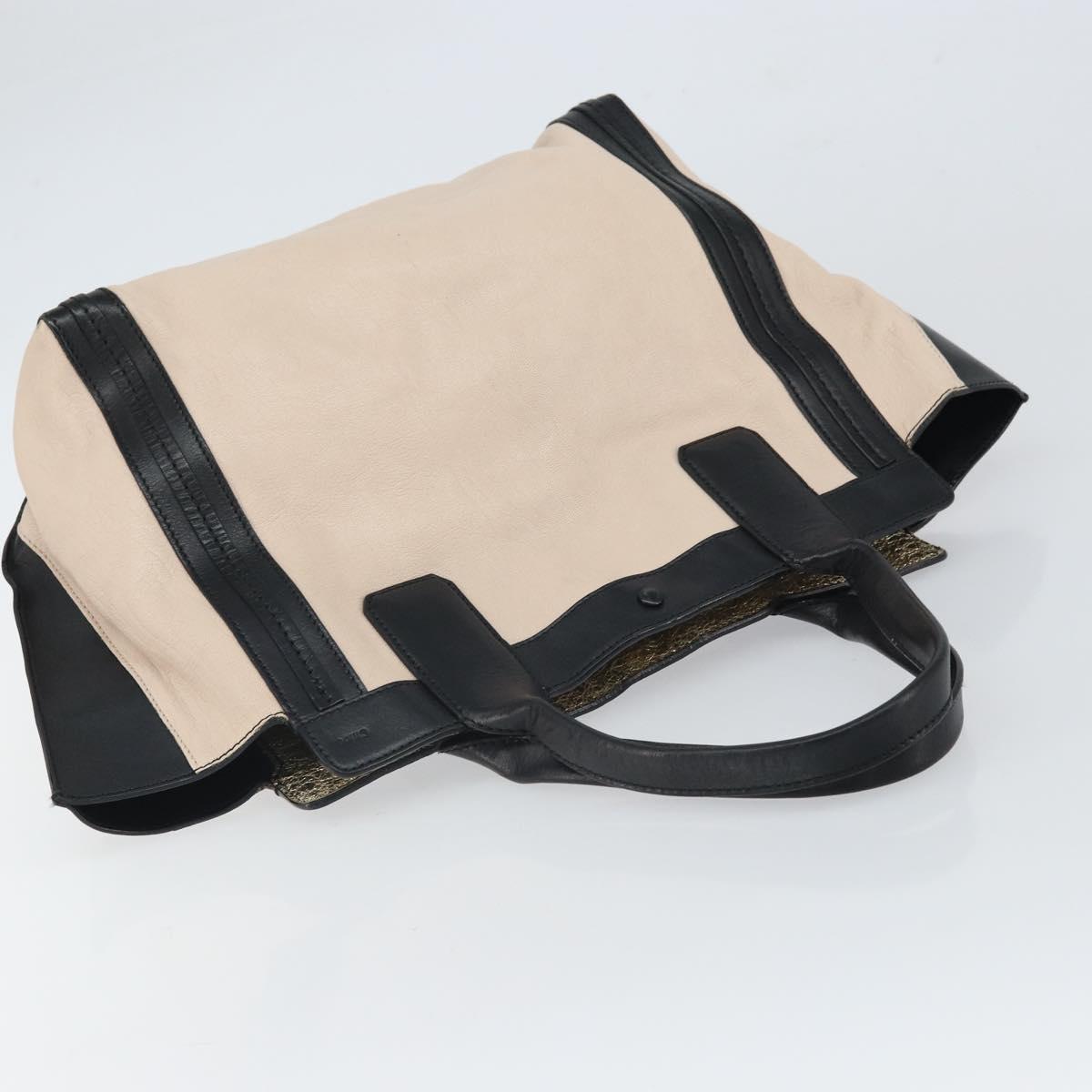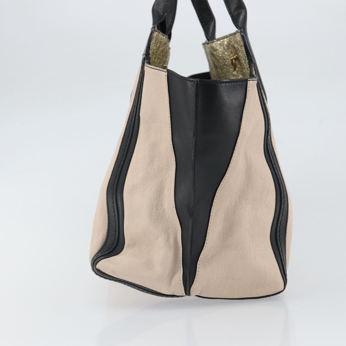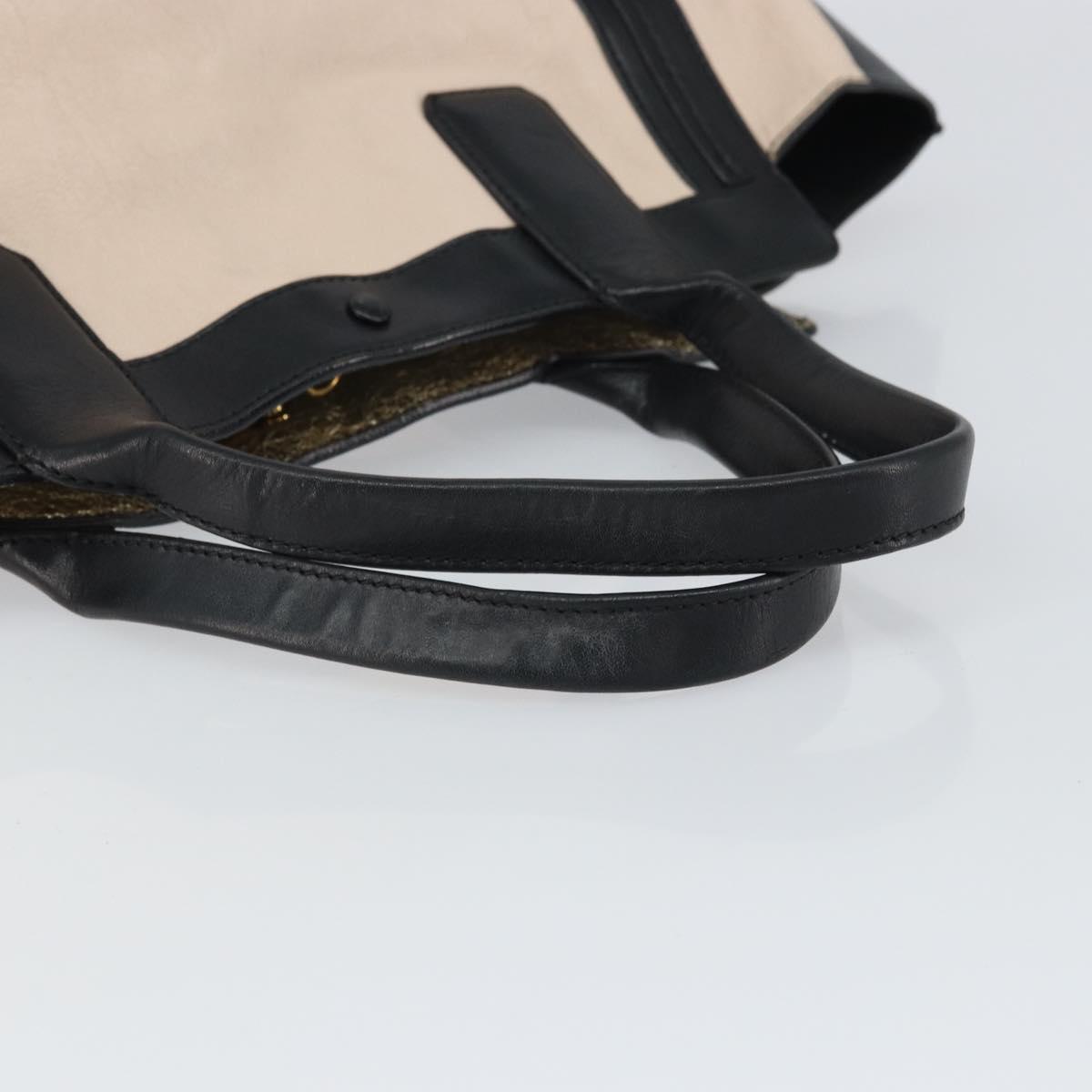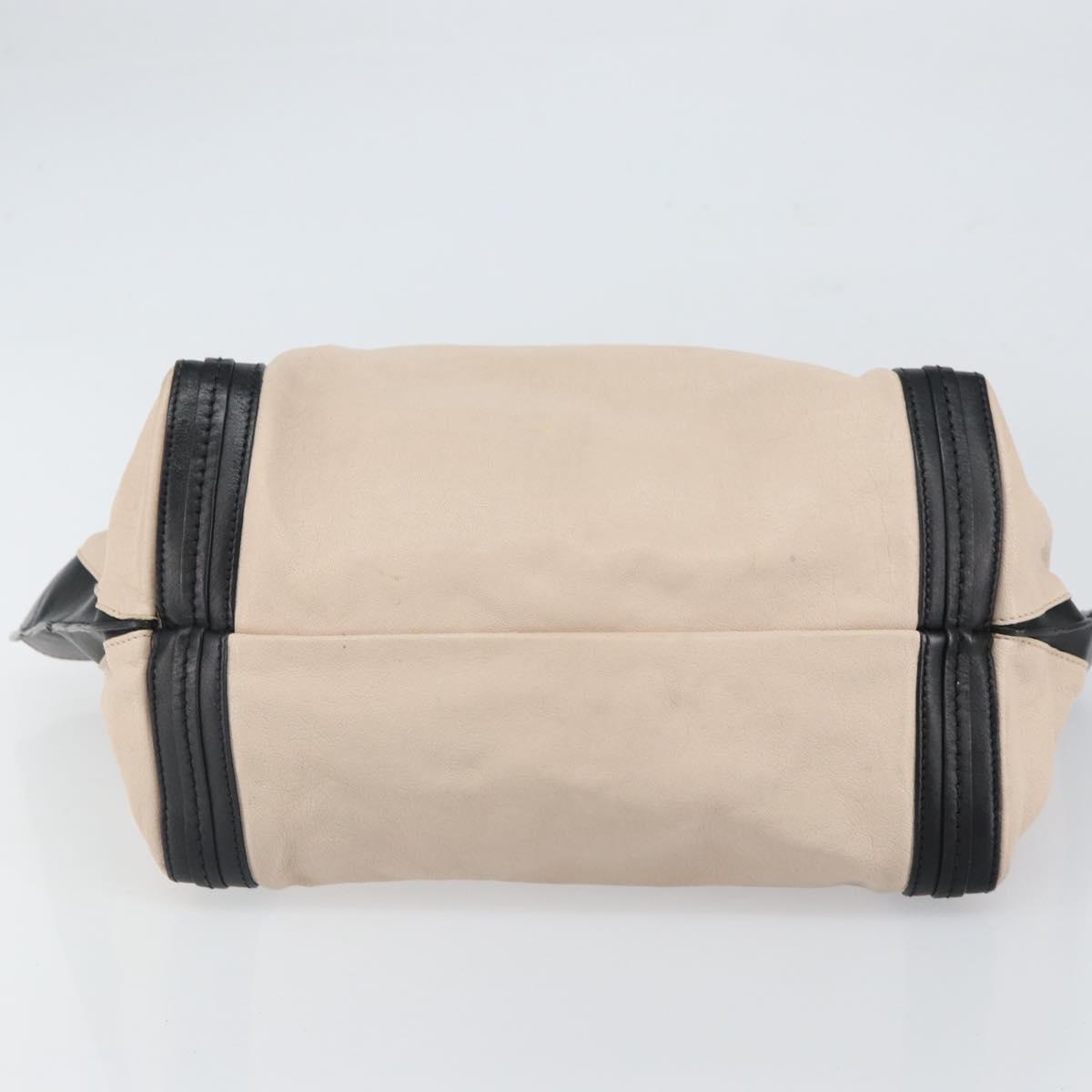 Chloe Alison Hand Bag Leather Beige Black gold Auth fm5024