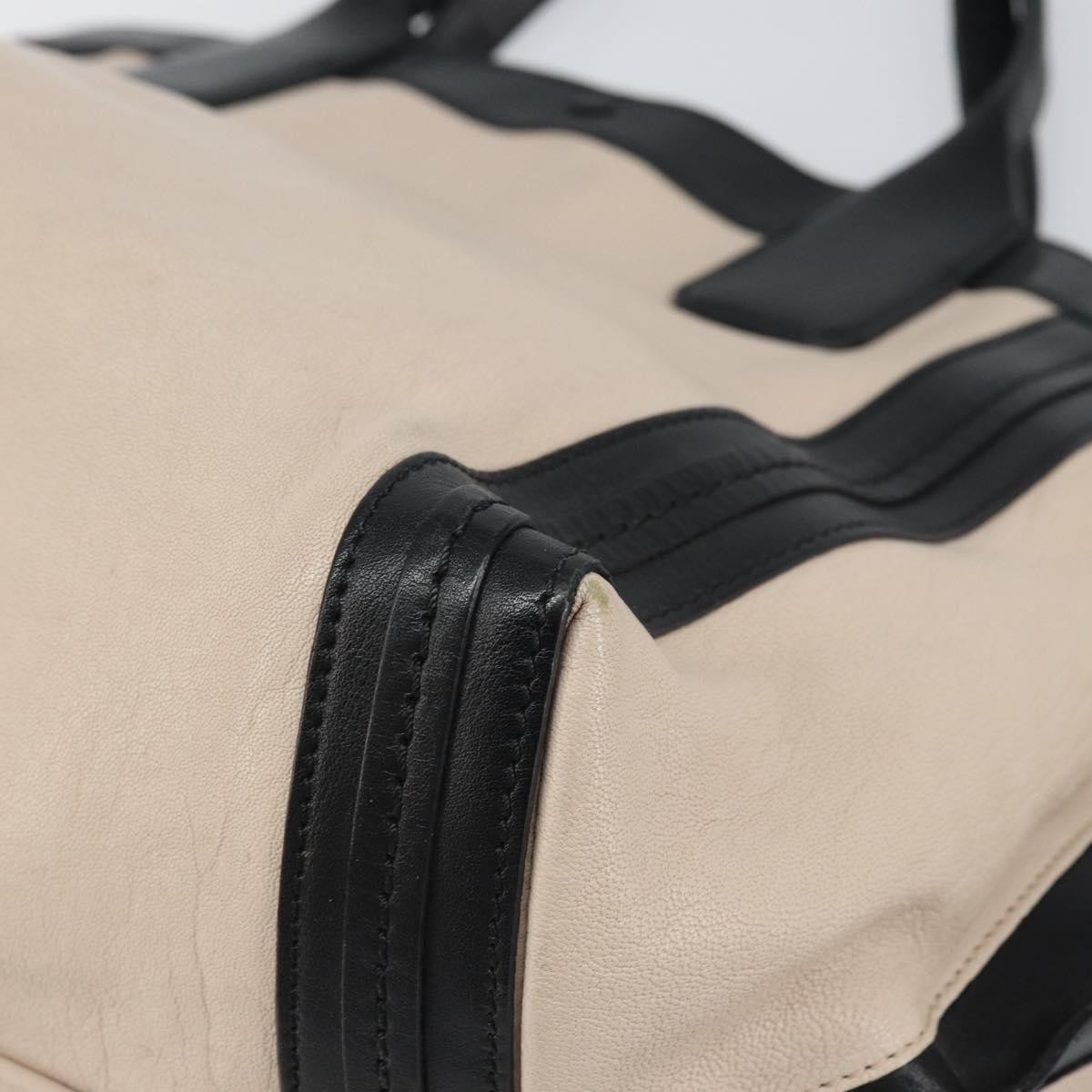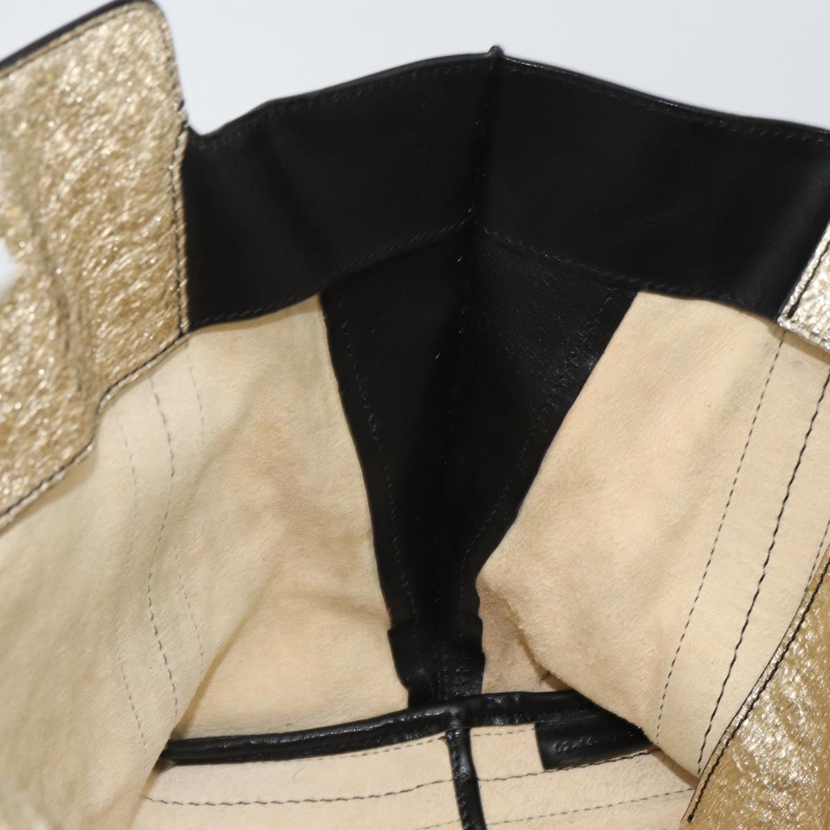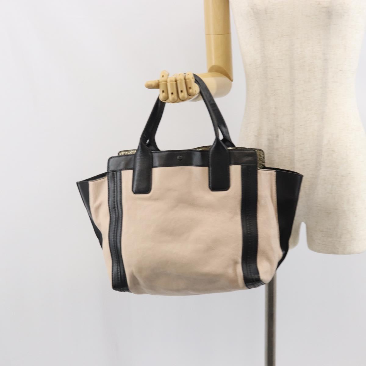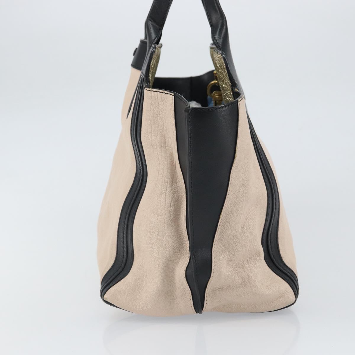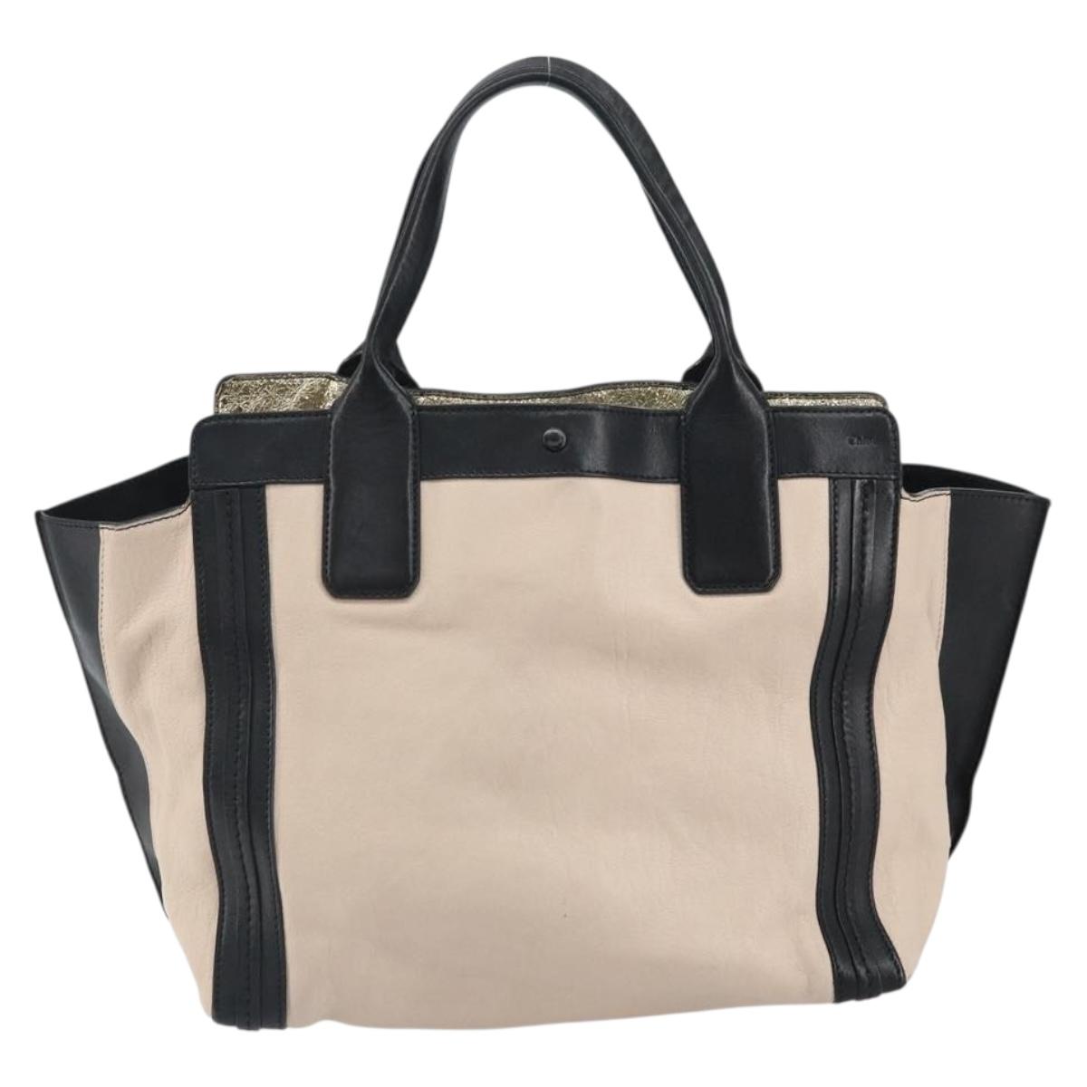 Chloe Alison Hand Bag Leather Beige Black gold Auth fm5024