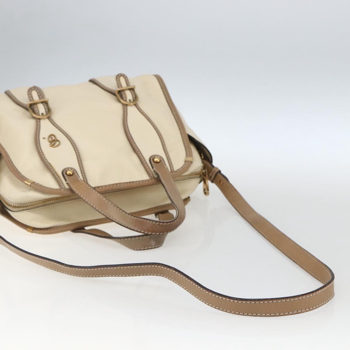 Chloe Hand Bag Leather 2way Beige Gold Auth fm5023