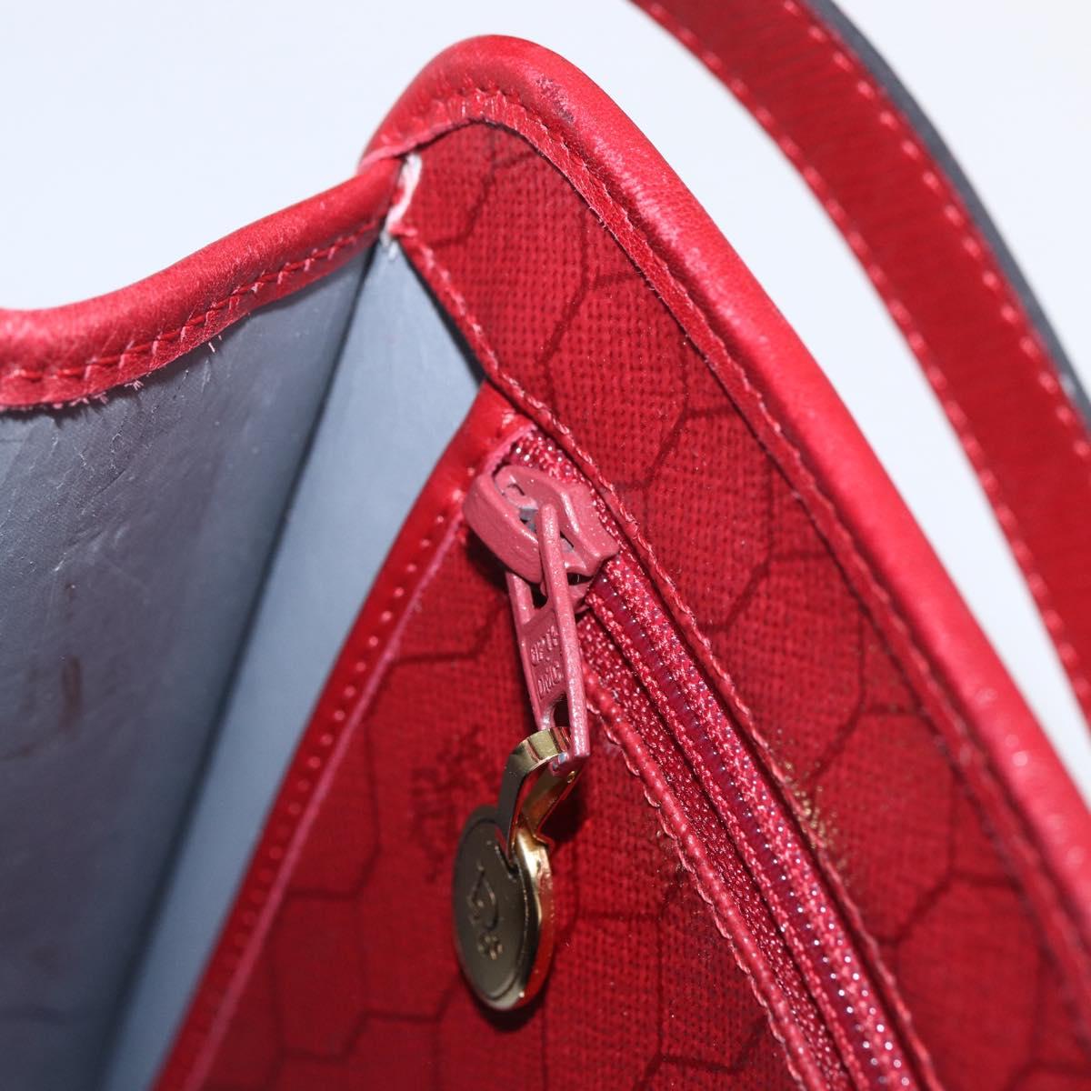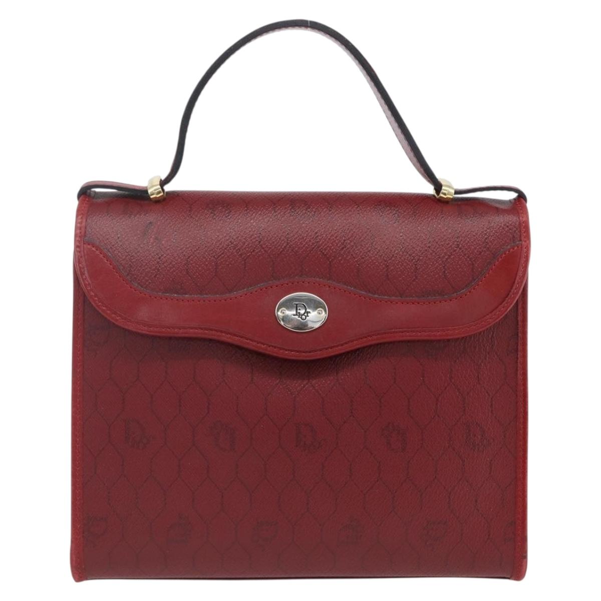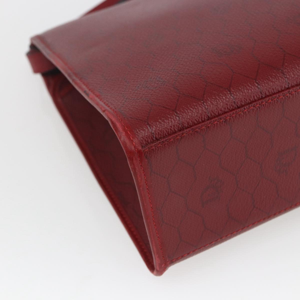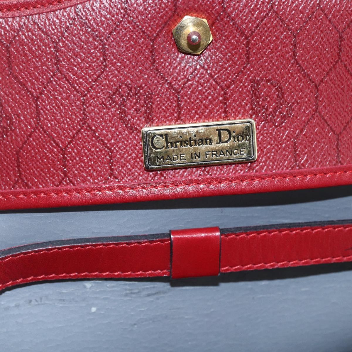 Christian Dior Honeycomb Canvas Hand Bag PVC Leather 2way Red Gold Auth 163559