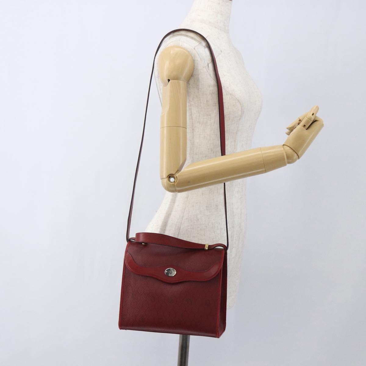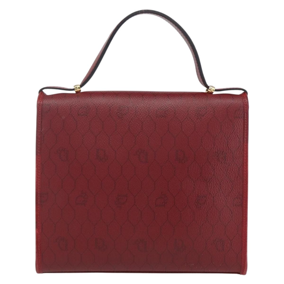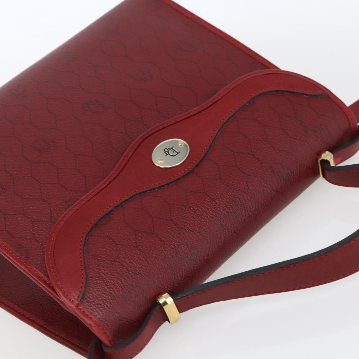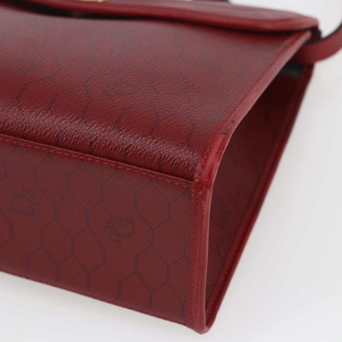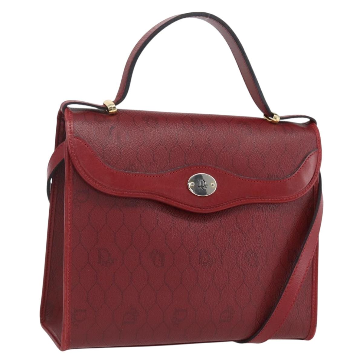 Christian Dior Honeycomb Canvas Hand Bag PVC Leather 2way Red Gold Auth 163559