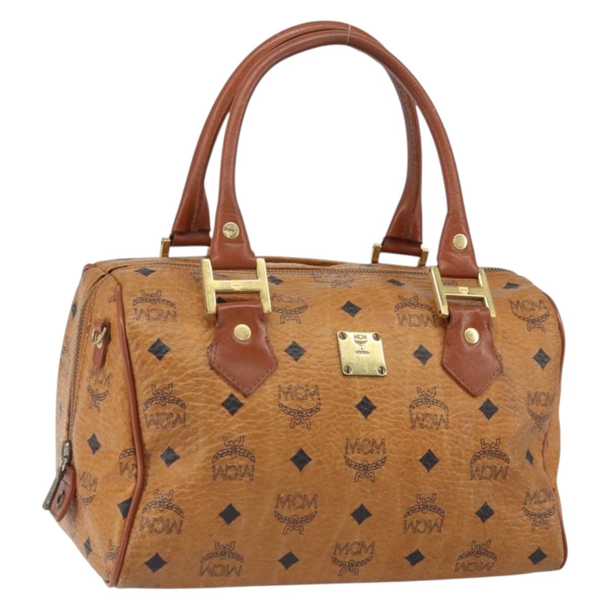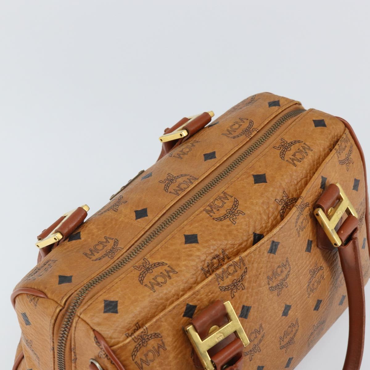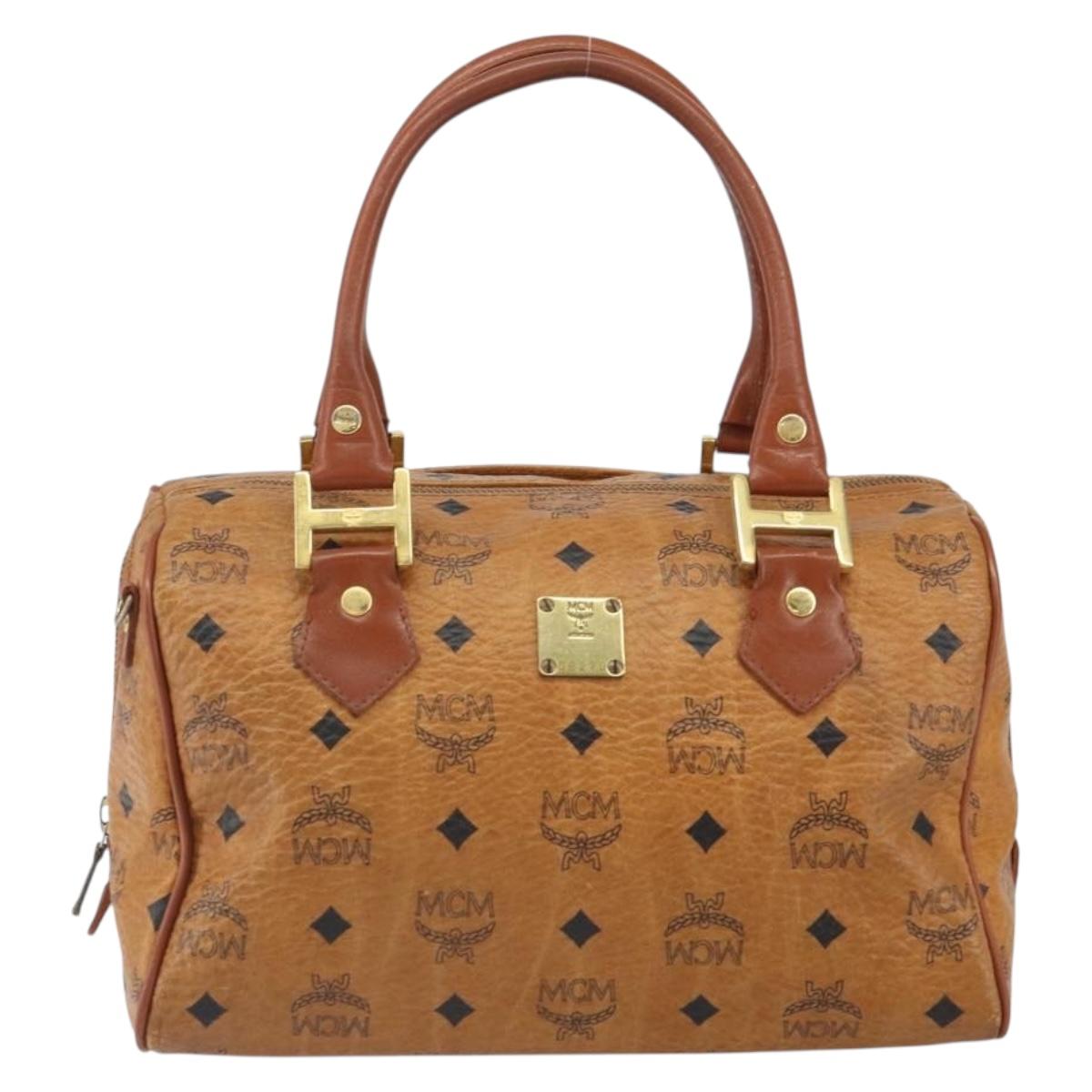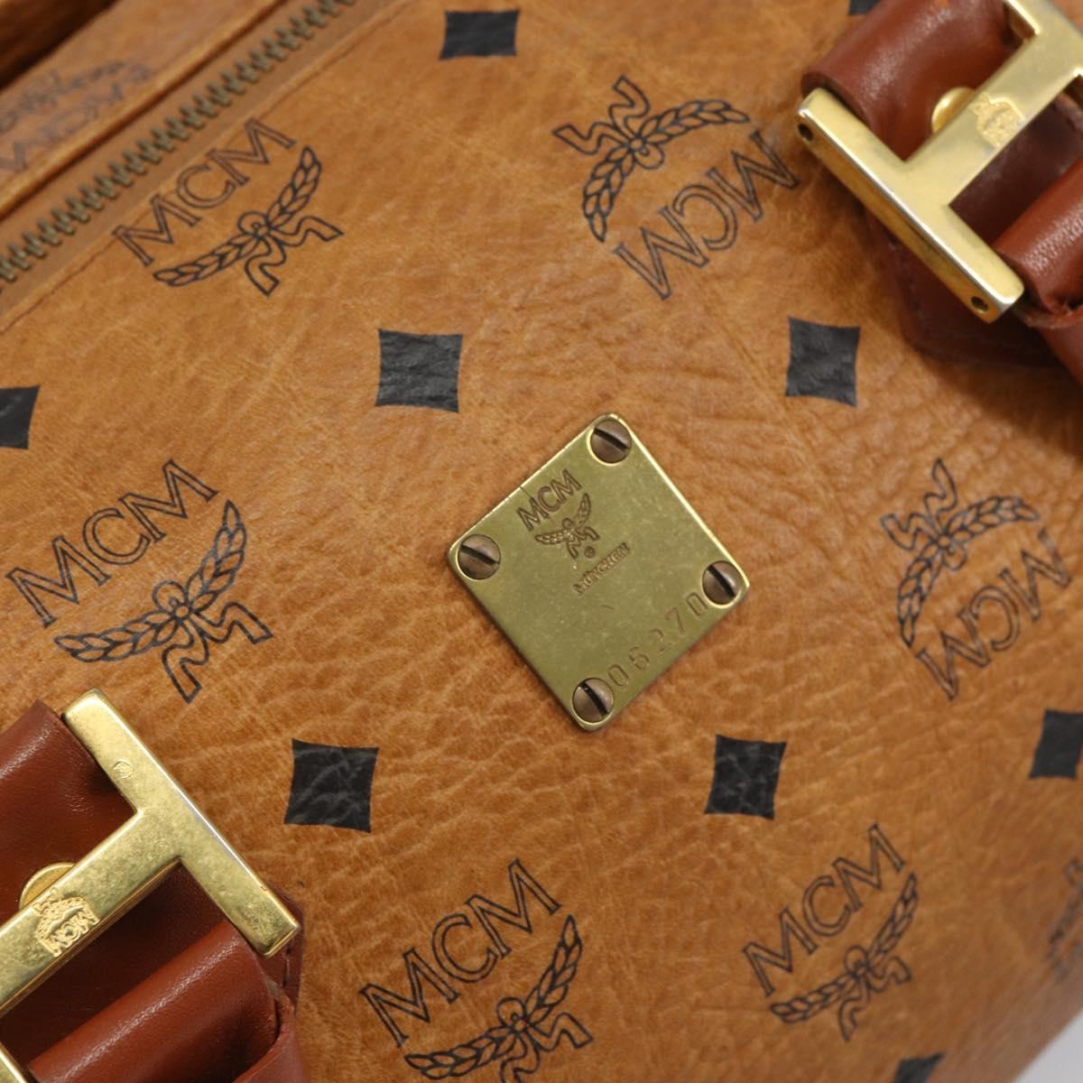 MCM Vicetos Logogram Boston Bag PVC Leather Brown Gold Auth 163539