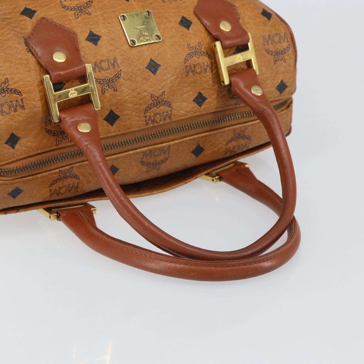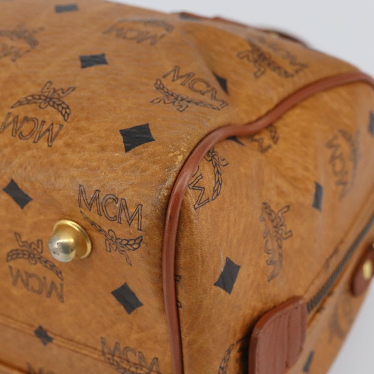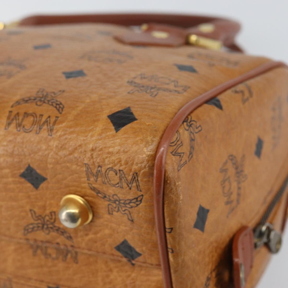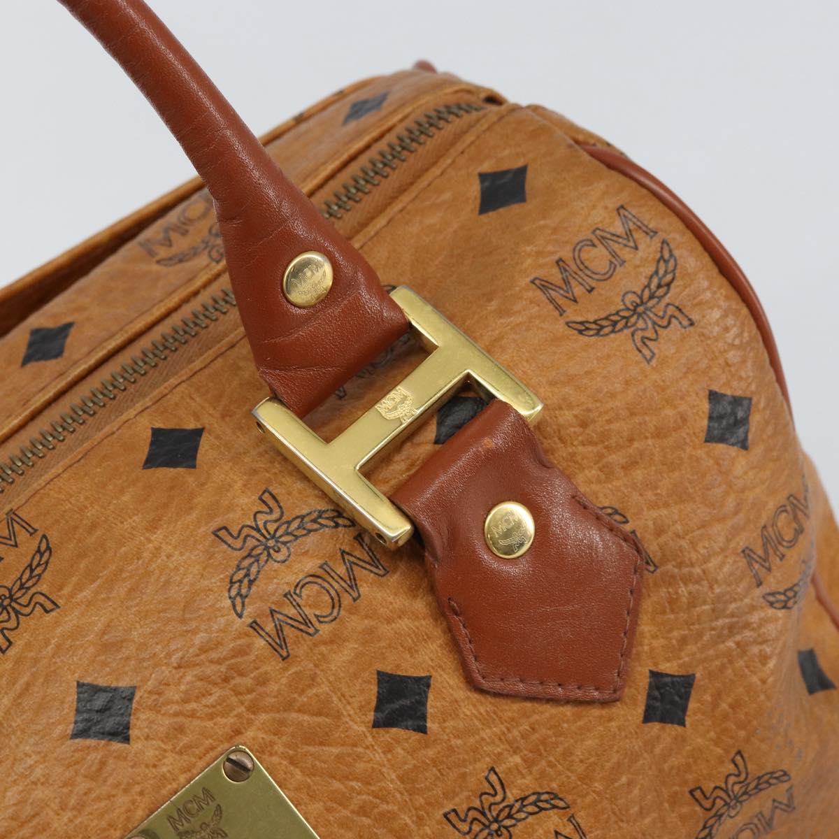 MCM Vicetos Logogram Boston Bag PVC Leather Brown Gold Auth 163539