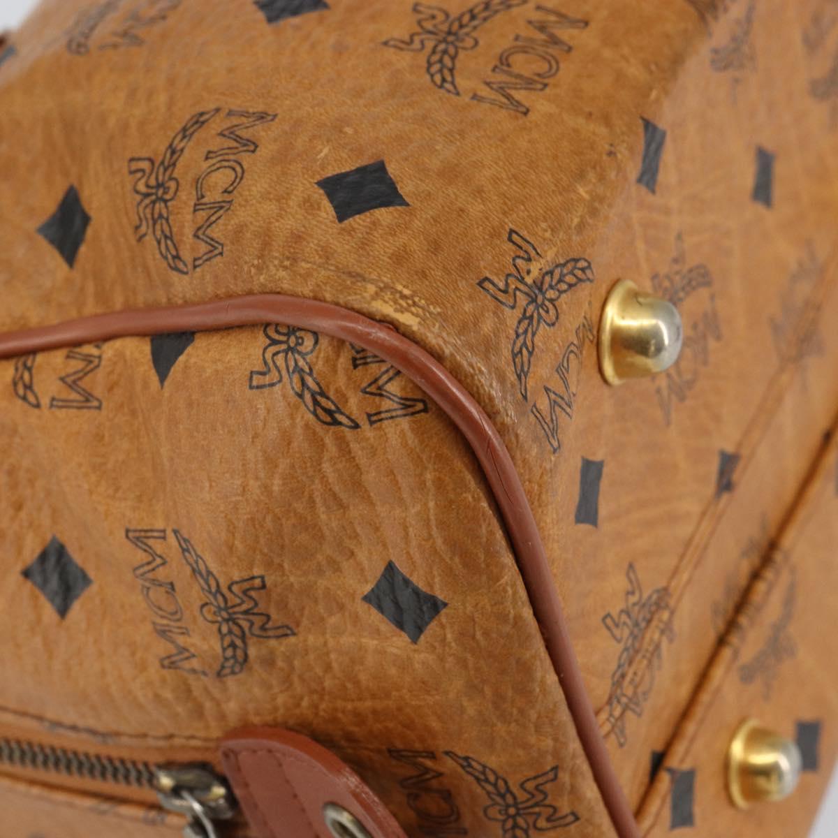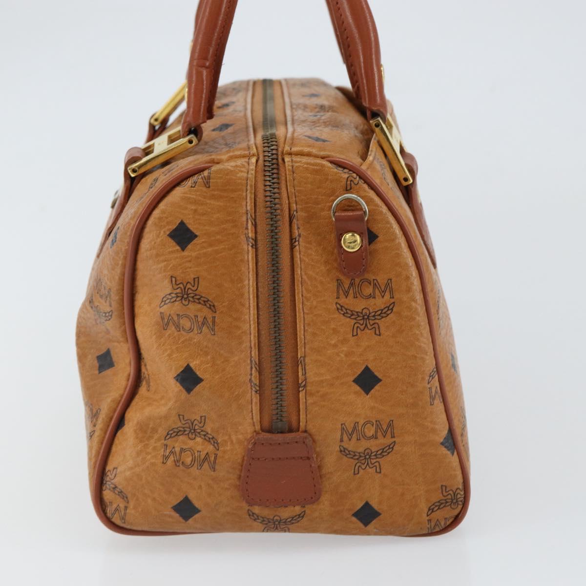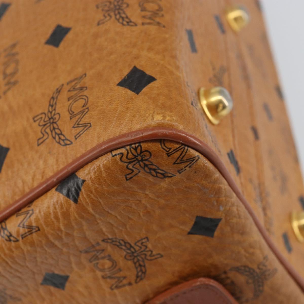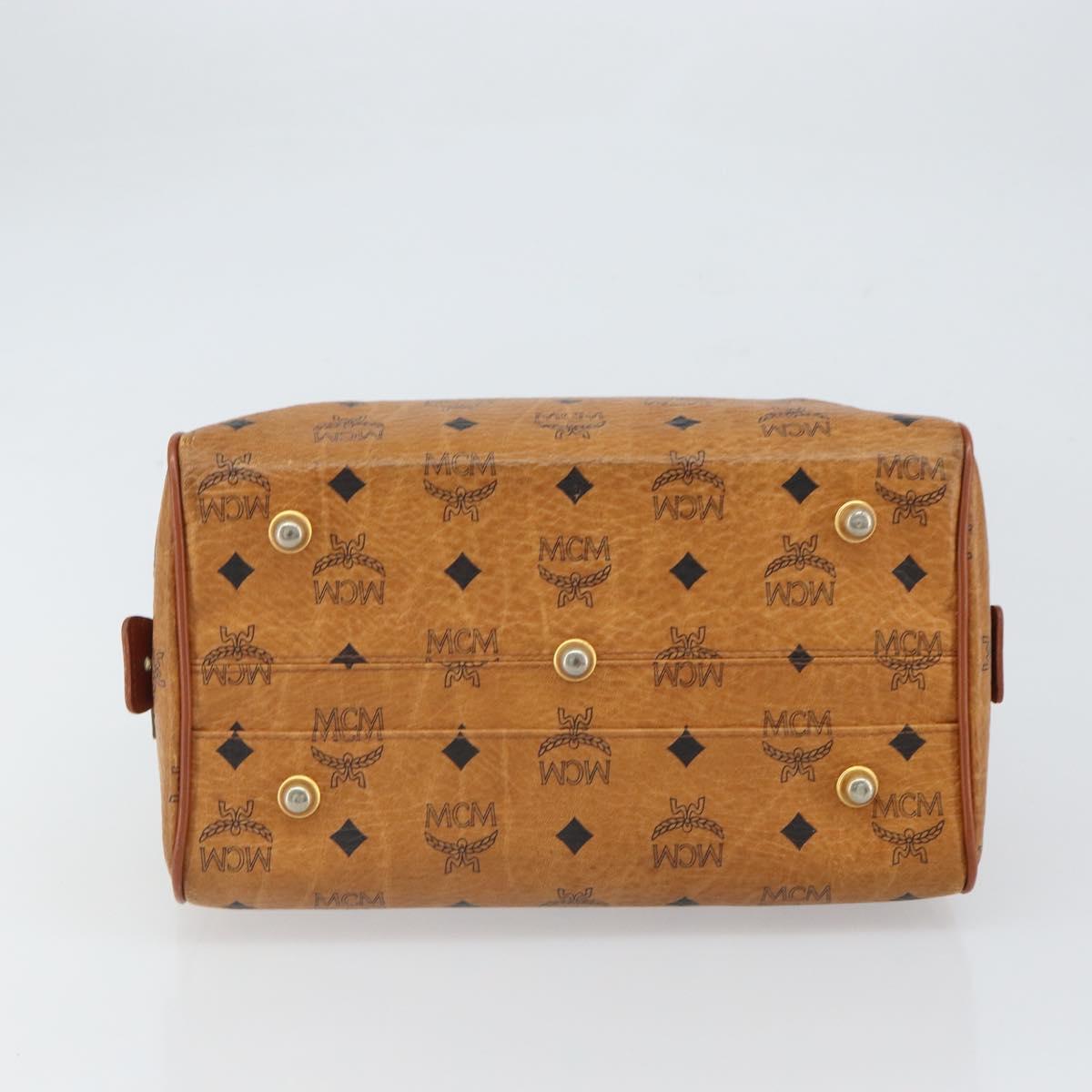 MCM Vicetos Logogram Boston Bag PVC Leather Brown Gold Auth 163539