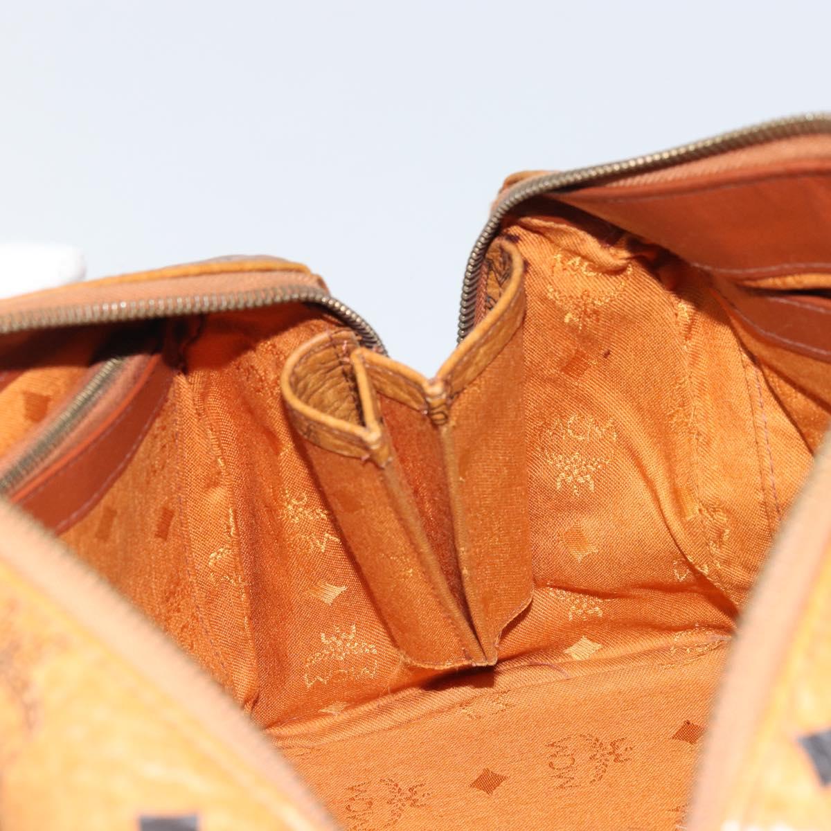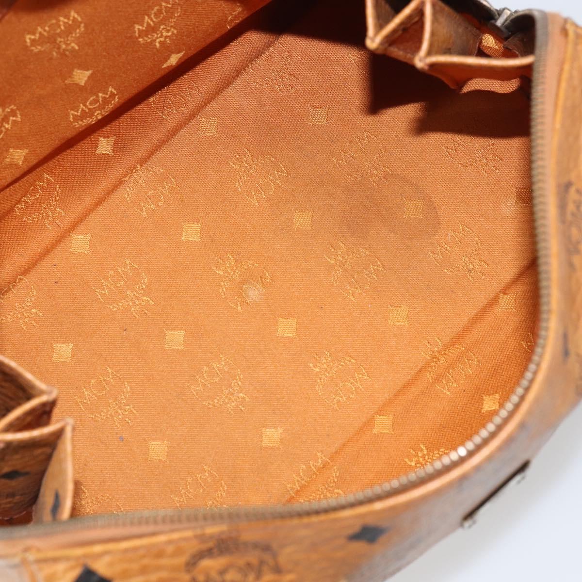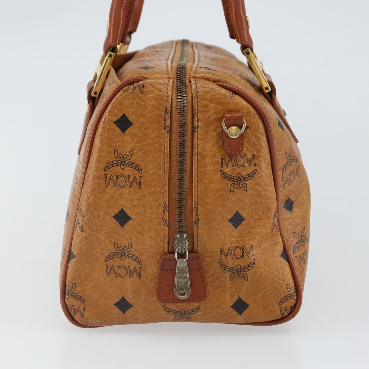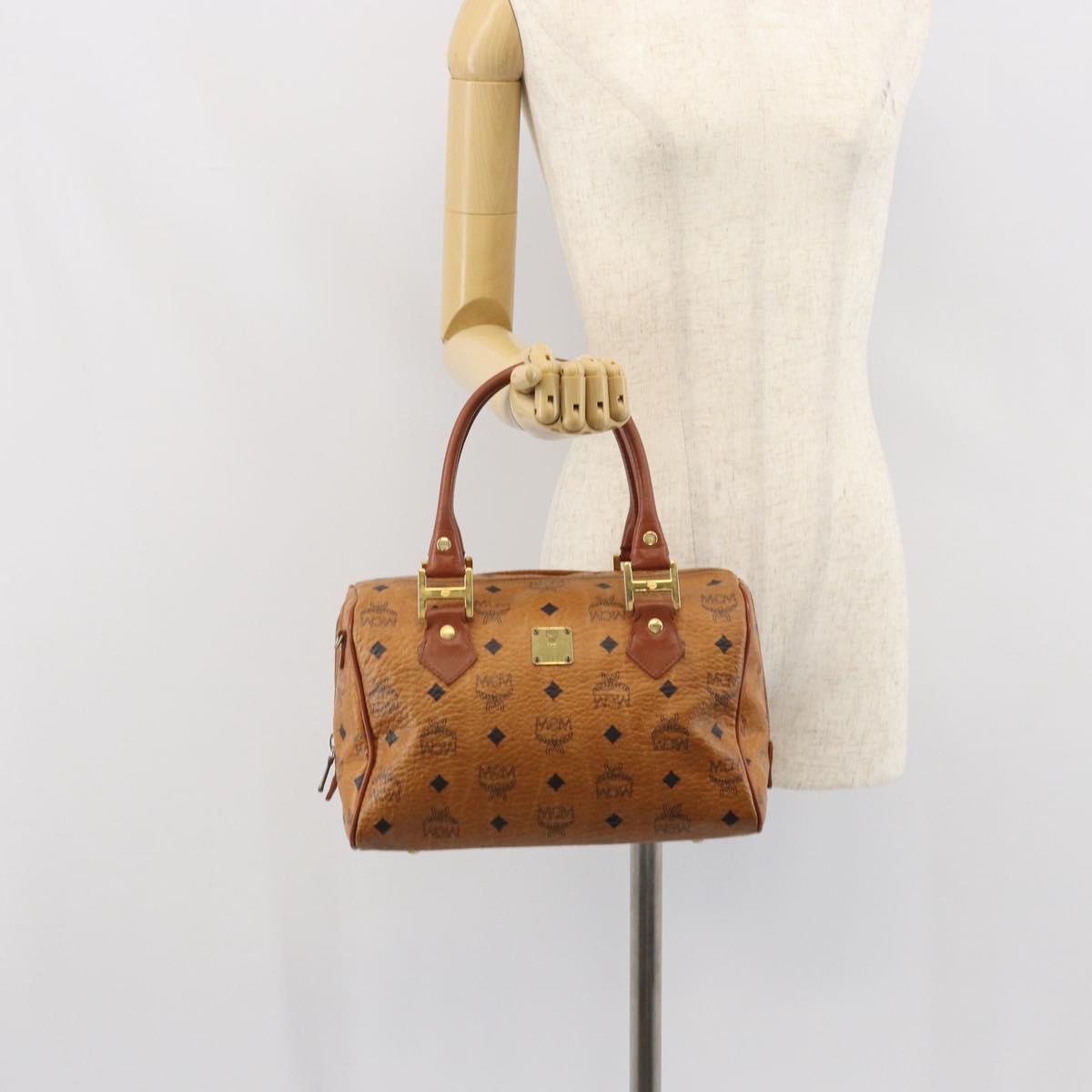 MCM Vicetos Logogram Boston Bag PVC Leather Brown Gold Auth 163539