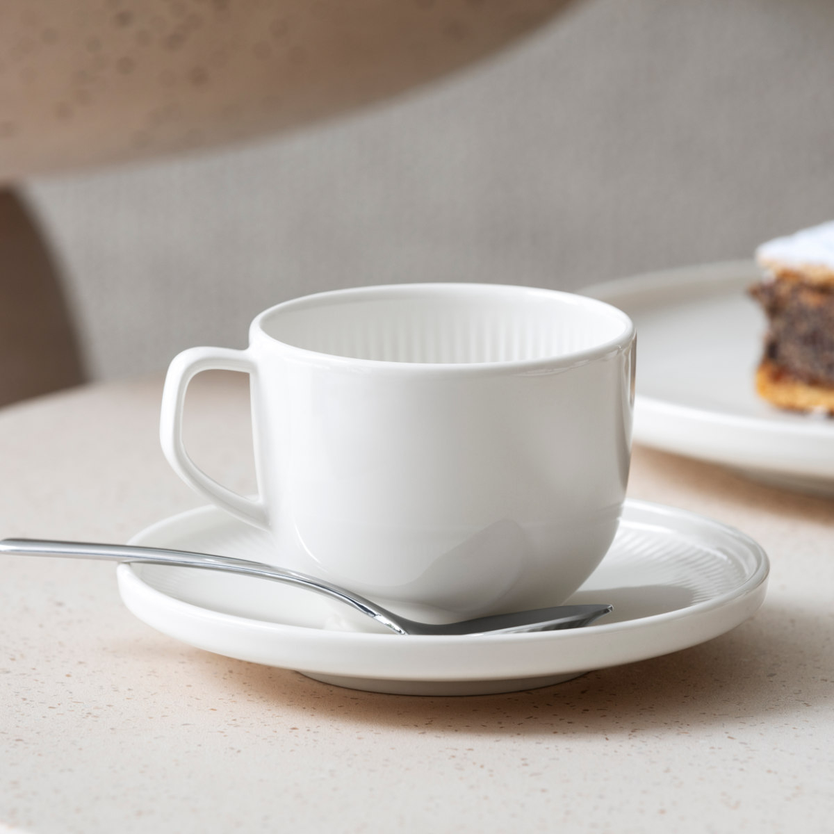 La collezione Villeroy & Boch Afina comprende varianti di articoli come le tazze da caffè.