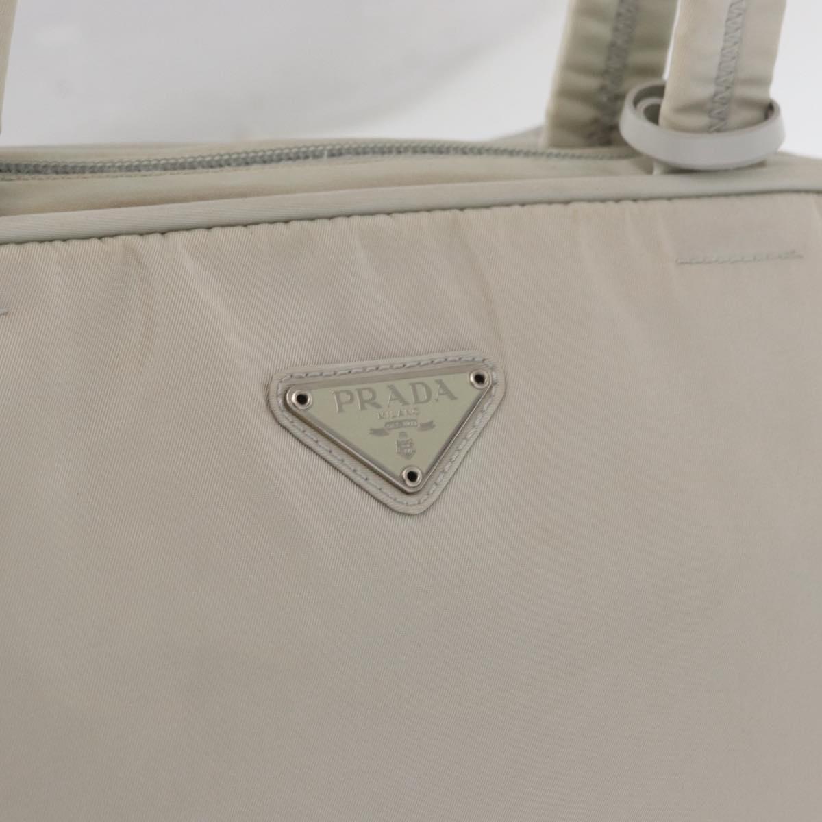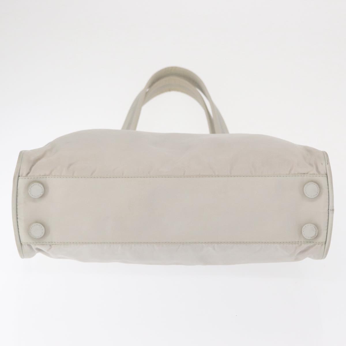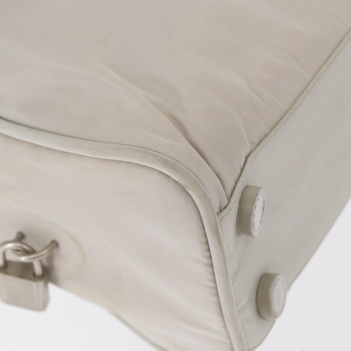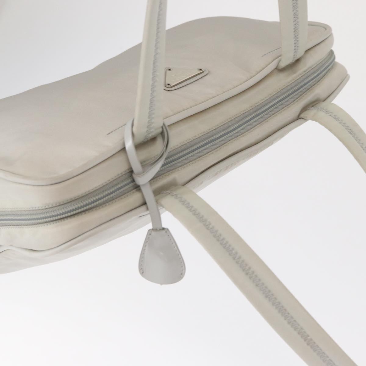PRADA Tote Bag Nylon White Silver Auth am10449