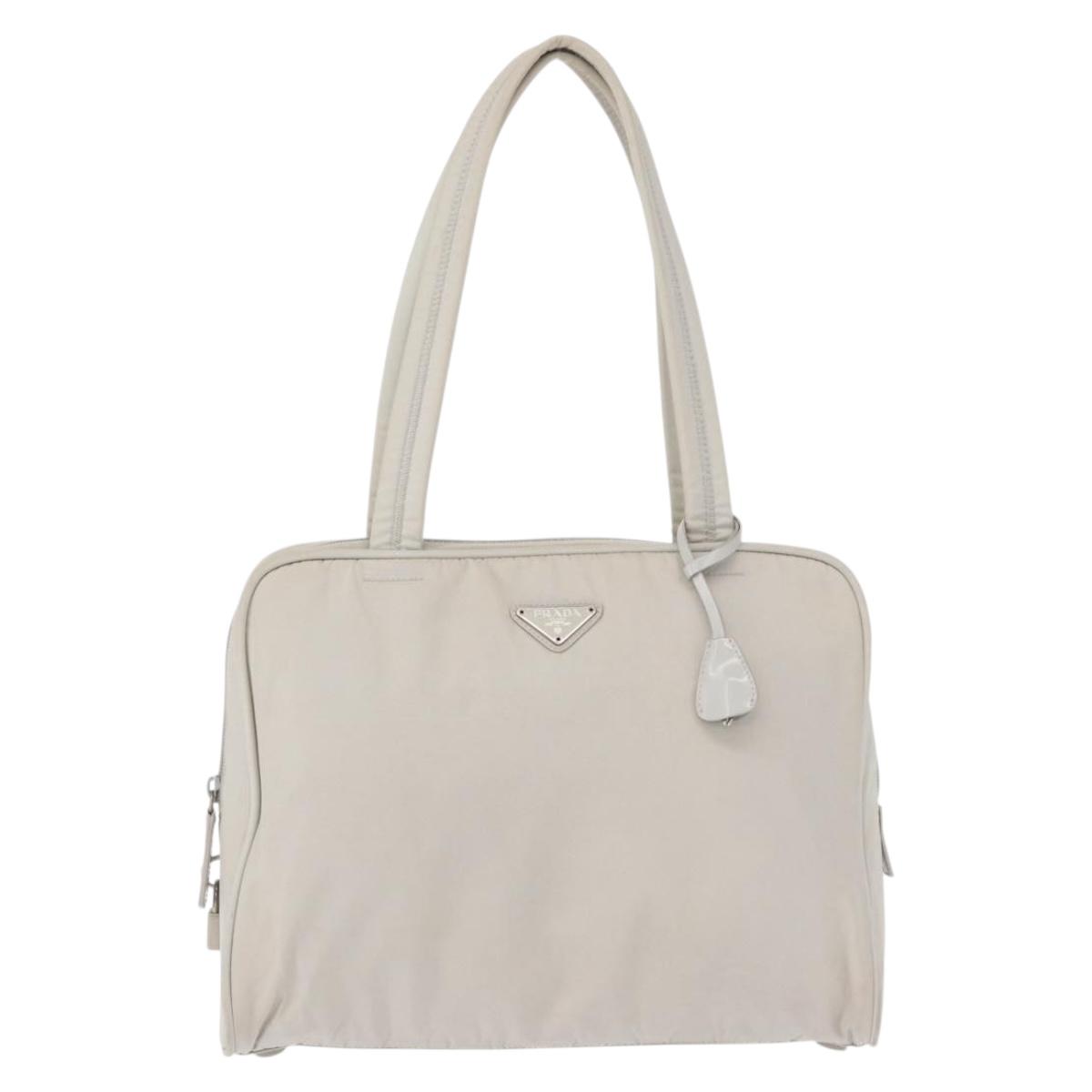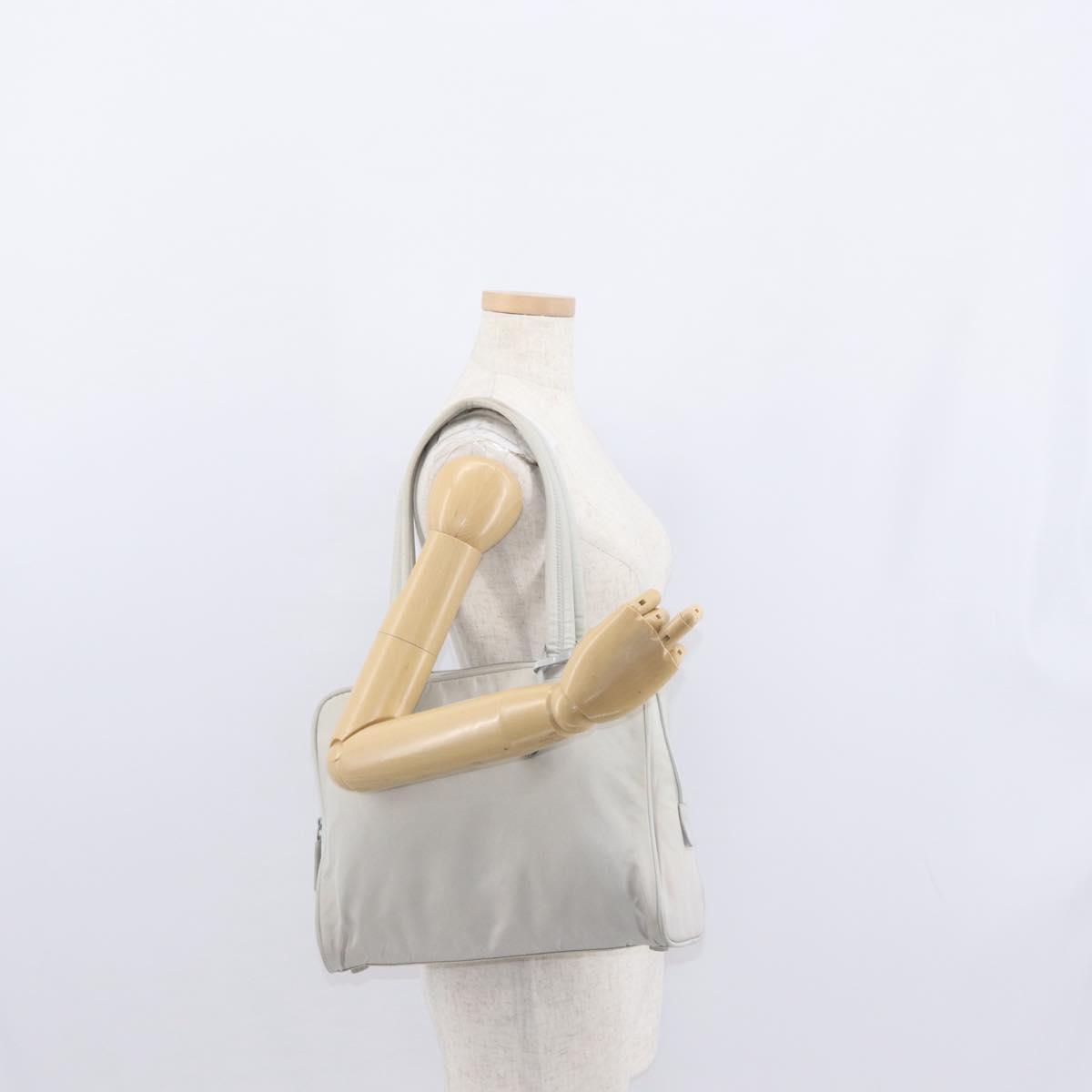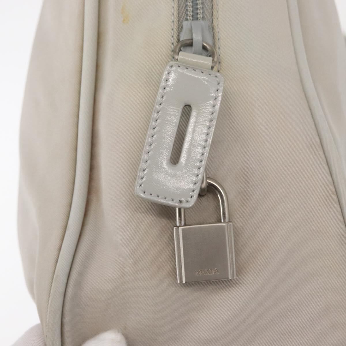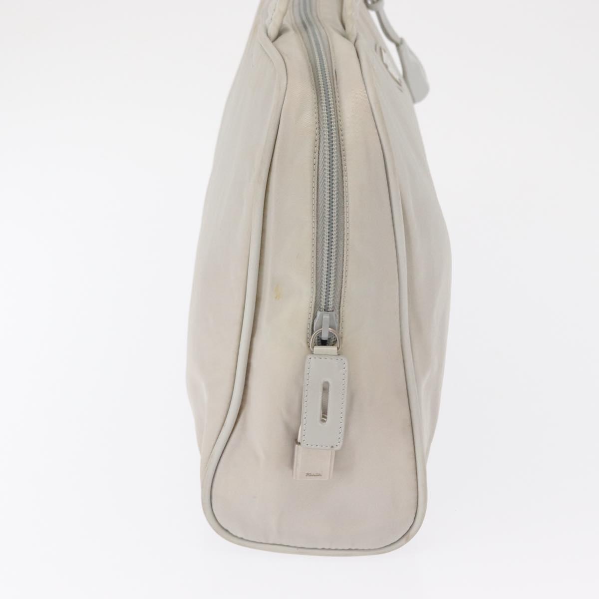 PRADA Tote Bag Nylon White Silver Auth am10449
