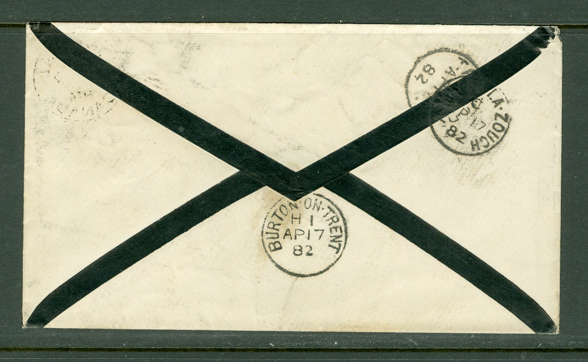 CANADAMONTREAL 1882 5CENT SMALL QUEEN MOURNING COVER TO ENGLAND. Front and back shown.