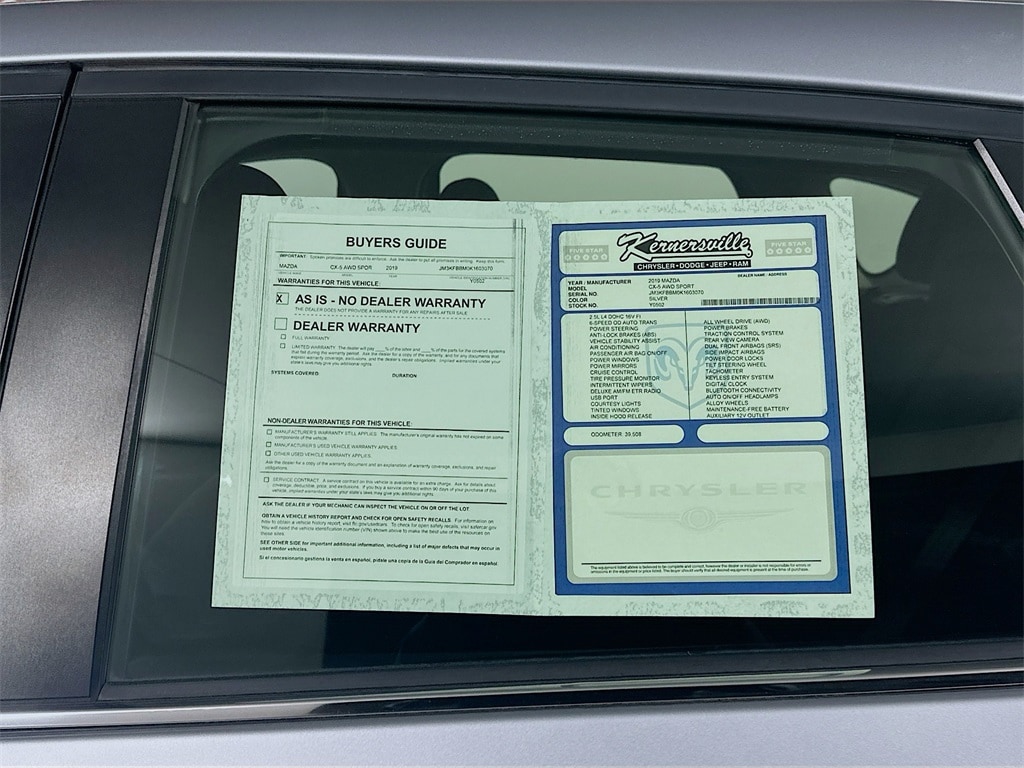When calling or emailing, please reference stock number Y0502.MORE ABOUT THIS 2019 Mazda CX-5 Sport Sport Utility Check out this great value! It just arrived on our lot, and surely won't be here long! With less than 40,000 miles on the odometer, this 4 door sport utility vehicle prioritizes comfort, safety and convenience. Mazda prioritized practicality, efficiency, and style by including: a rear window wiper, cruise control, and much more. Smooth gearshifts are achieved thanks to the 2.5 liter 4 cylinder engine, and for added security, dynamic Stability Control supplements the drivetrain. Our aim is to provide our customers with the best prices and service at all times. Stop by our dealership or give us a call for more information.