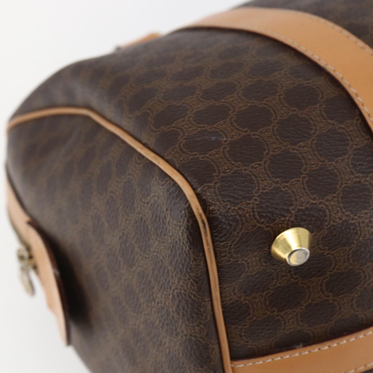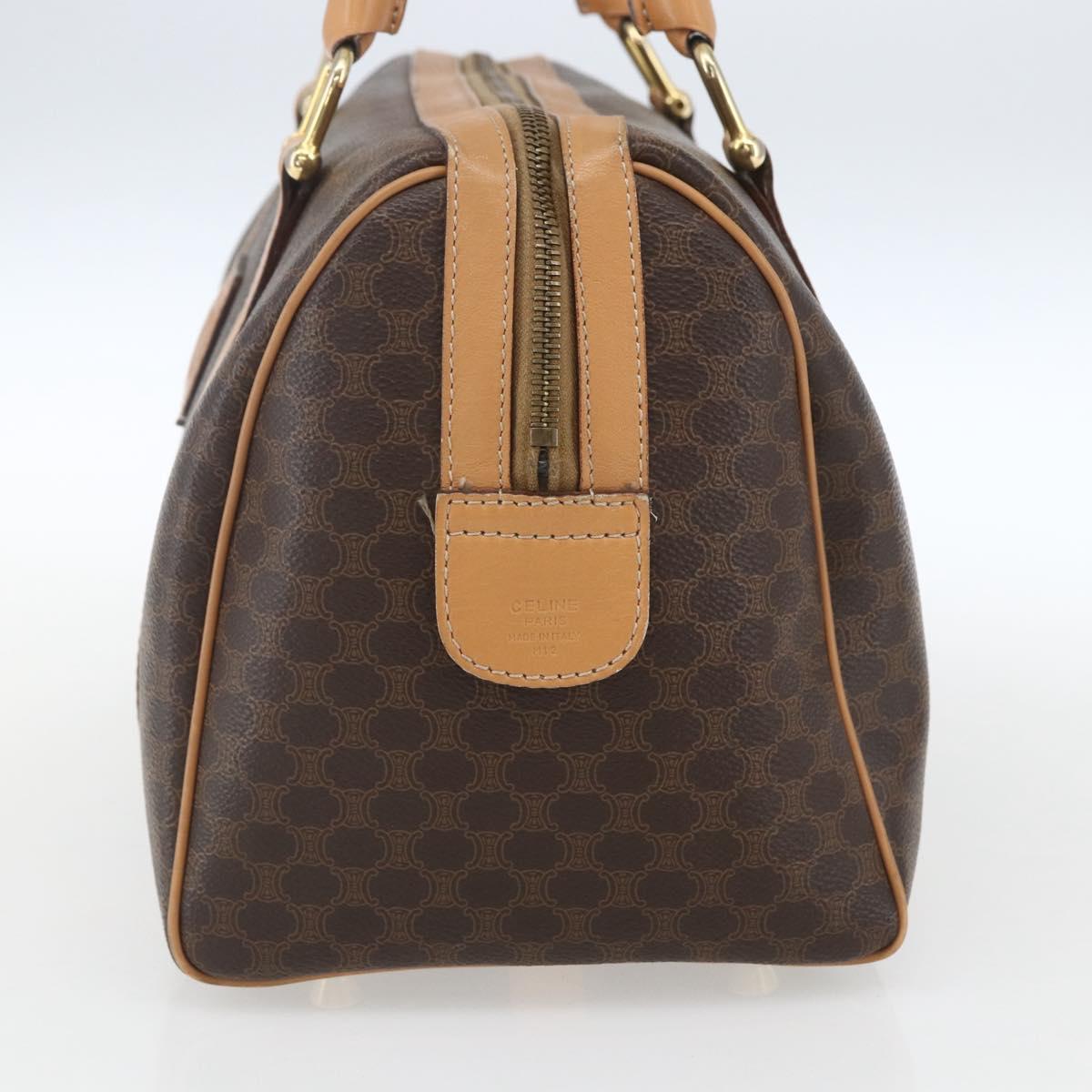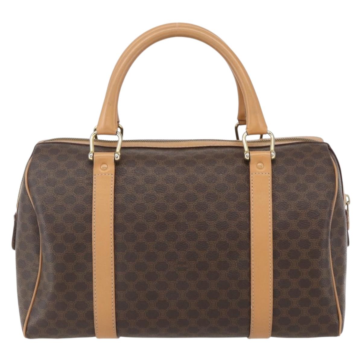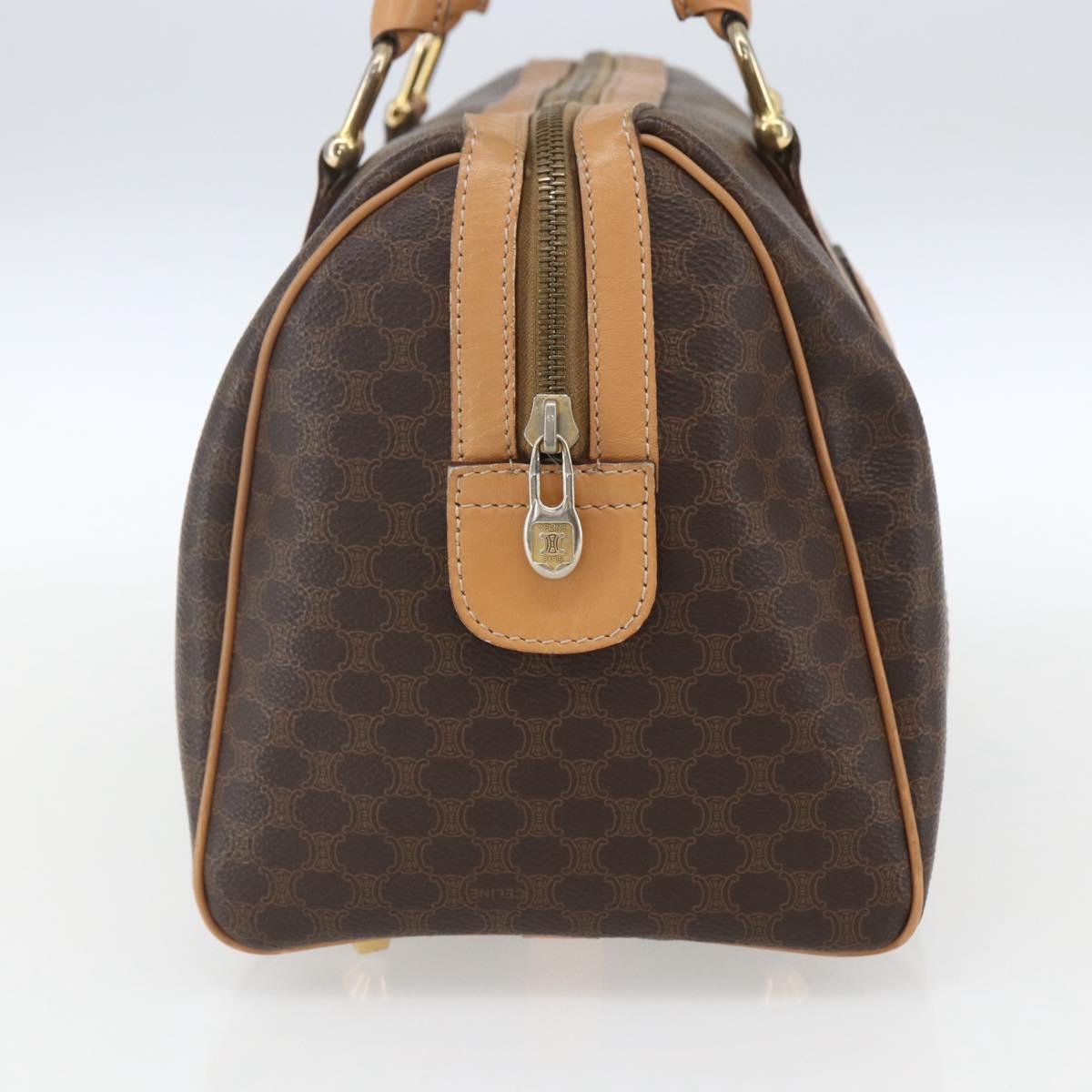 CELINE Macadam Canvas Boston Bag PVC Leather Brown Gold Auth ki6313