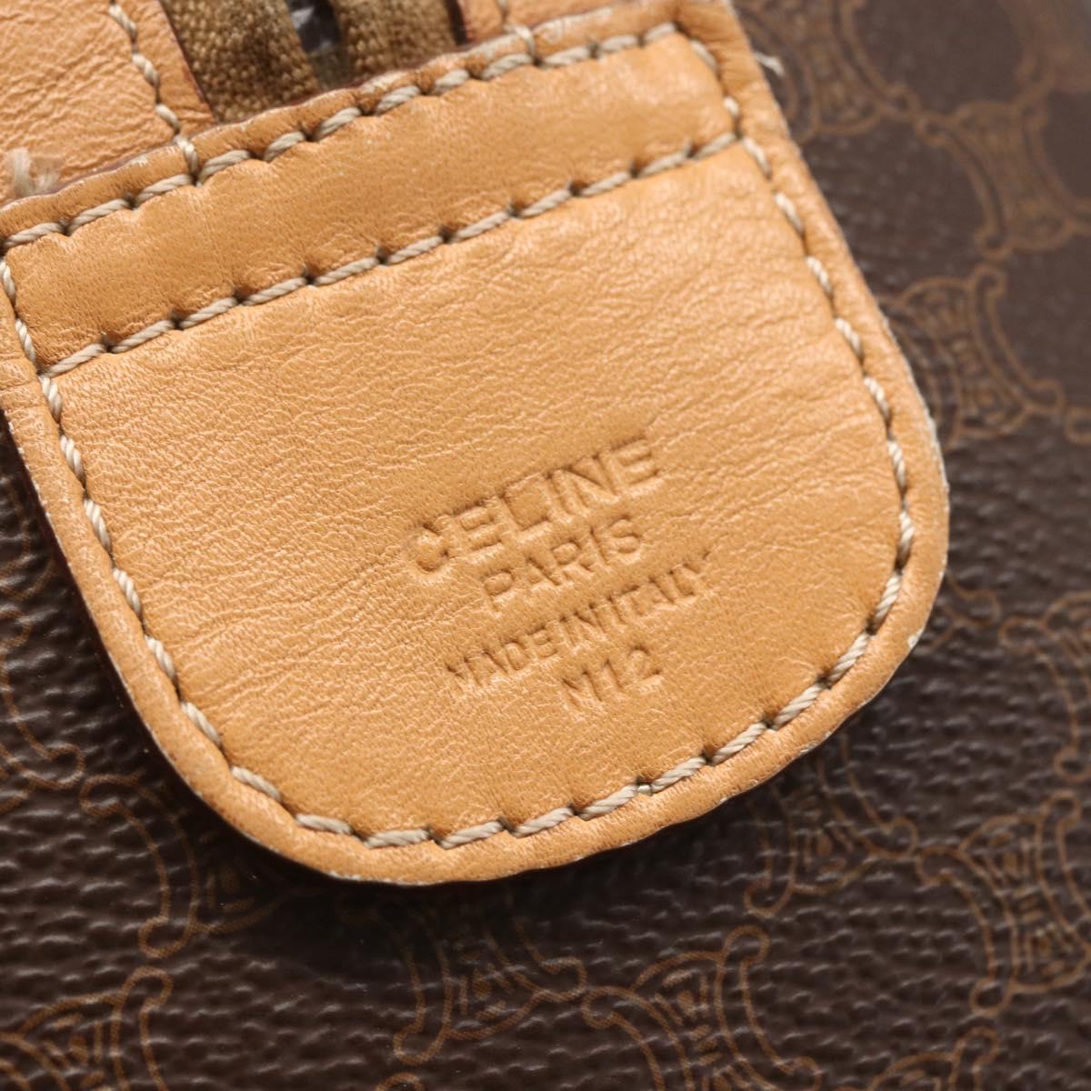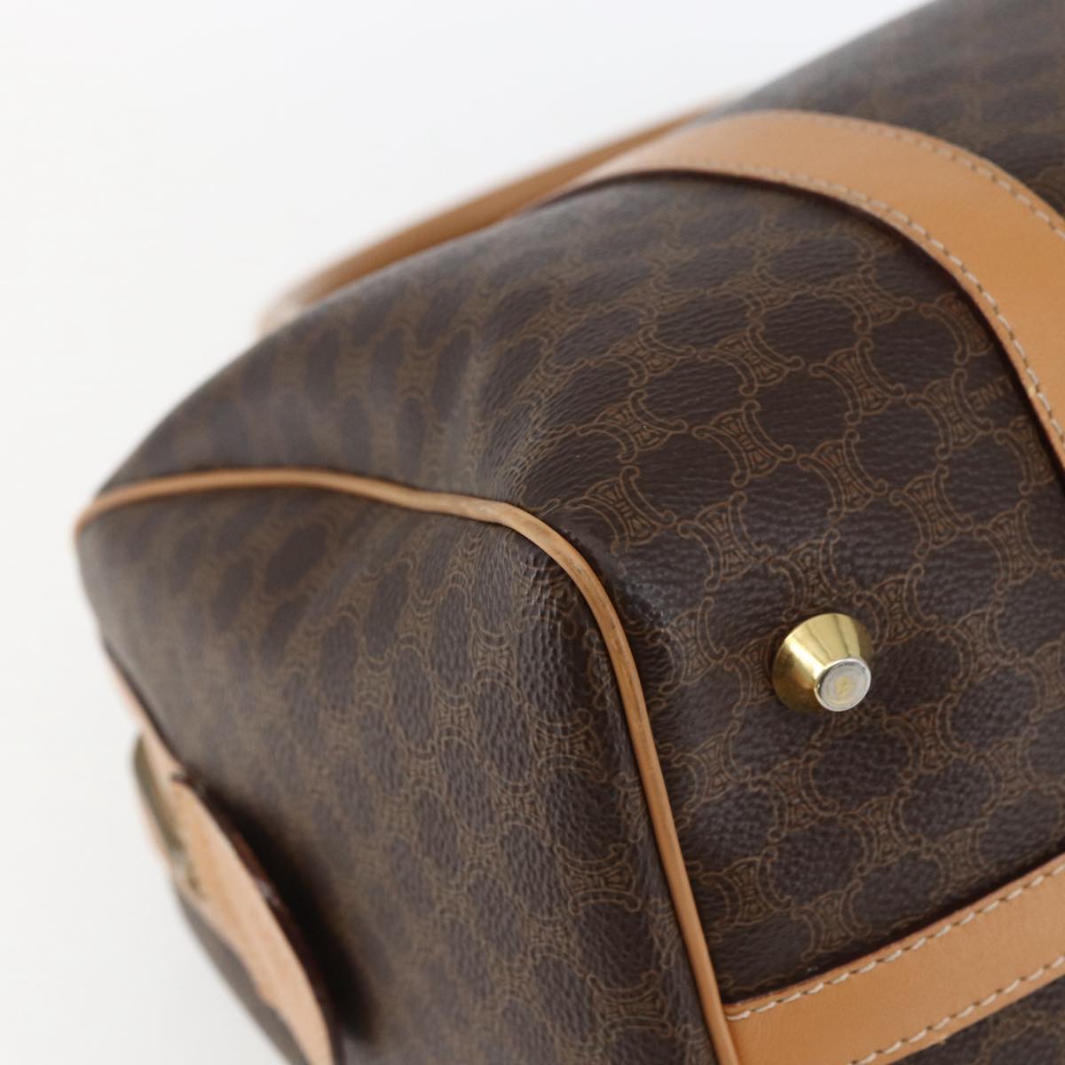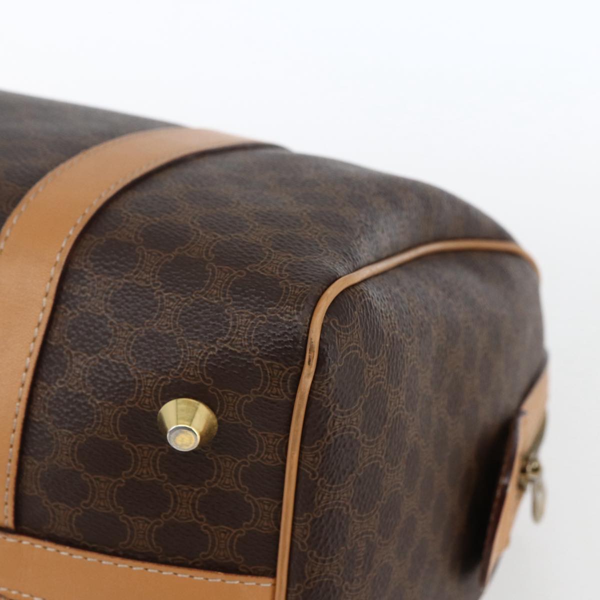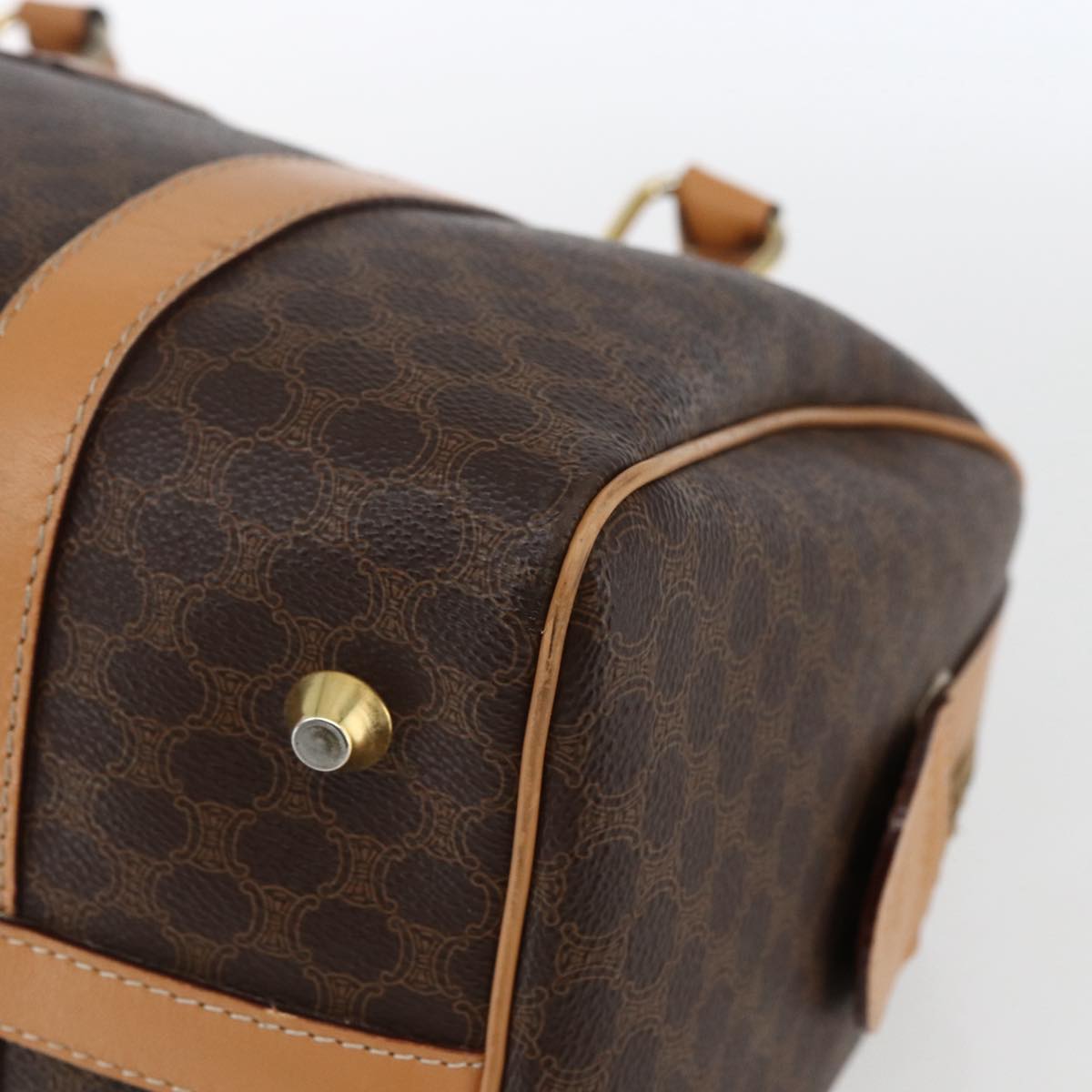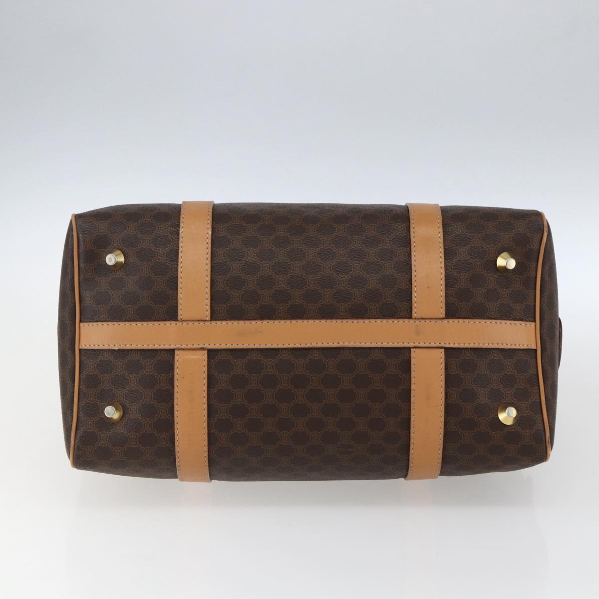 CELINE Macadam Canvas Boston Bag PVC Leather Brown Gold Auth ki6313