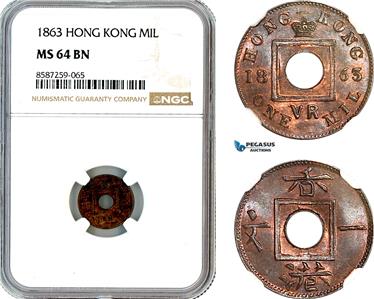 AL494, Hong Kong, Victoria, 1 Mil 1863, NGC MS64BN