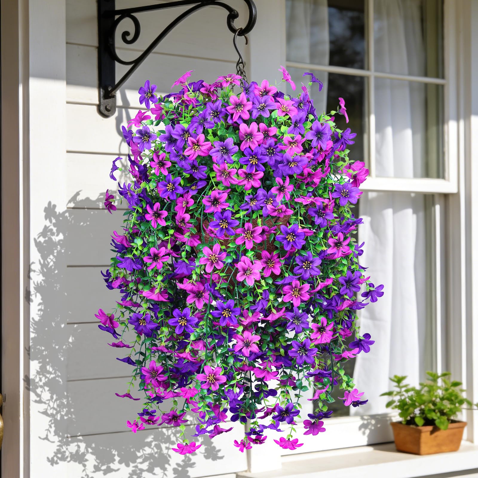 - Simple Assembly: Artificial hanging baskets with flowers needs only 5 minutes to assemble. Simply place the silk flower branches to the basket and design the shape. Please refer to the pictures or video listed above if you need further instruction.