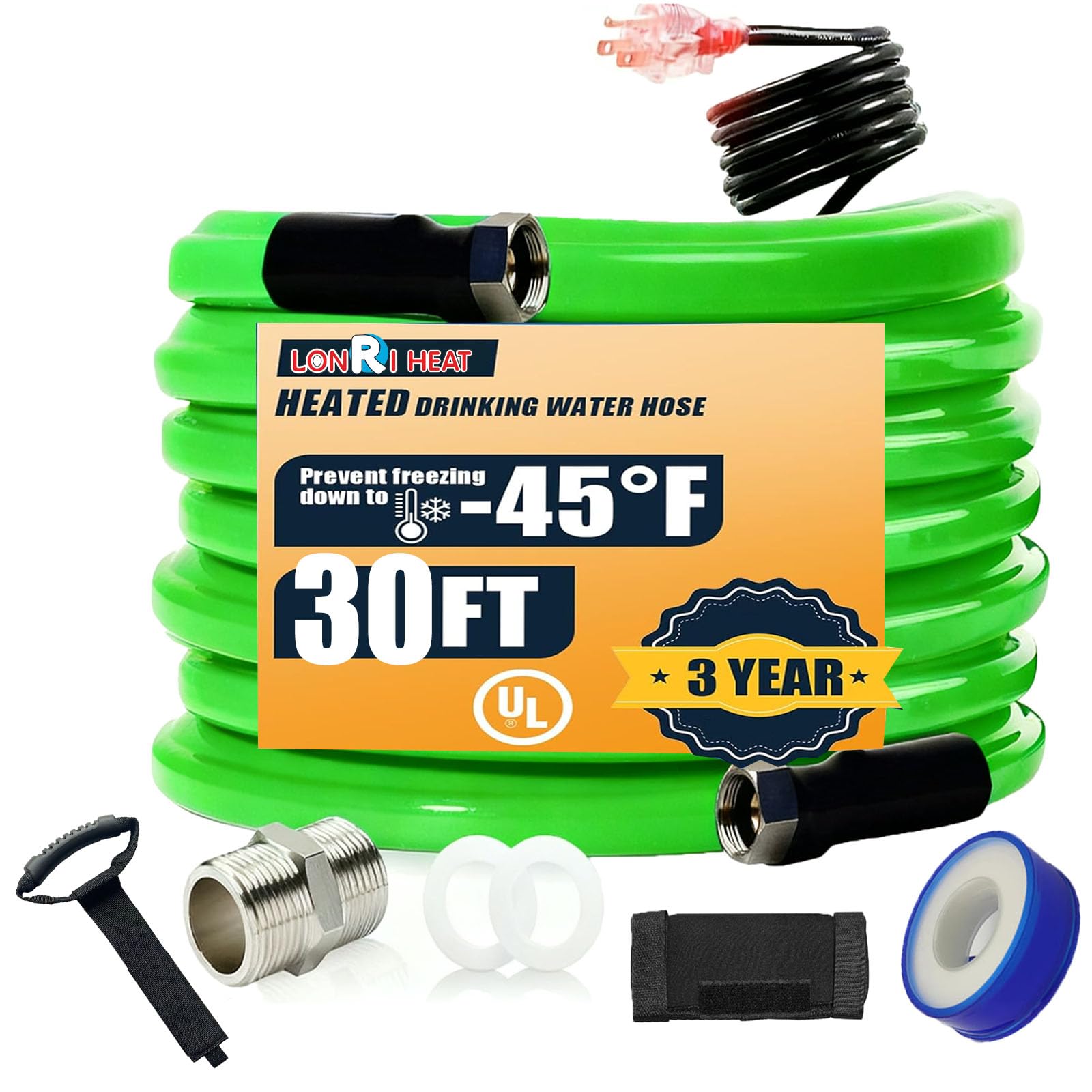 30FT Heated Water Hose for RV Drinking Water, -45°F Freeze Green-30FT