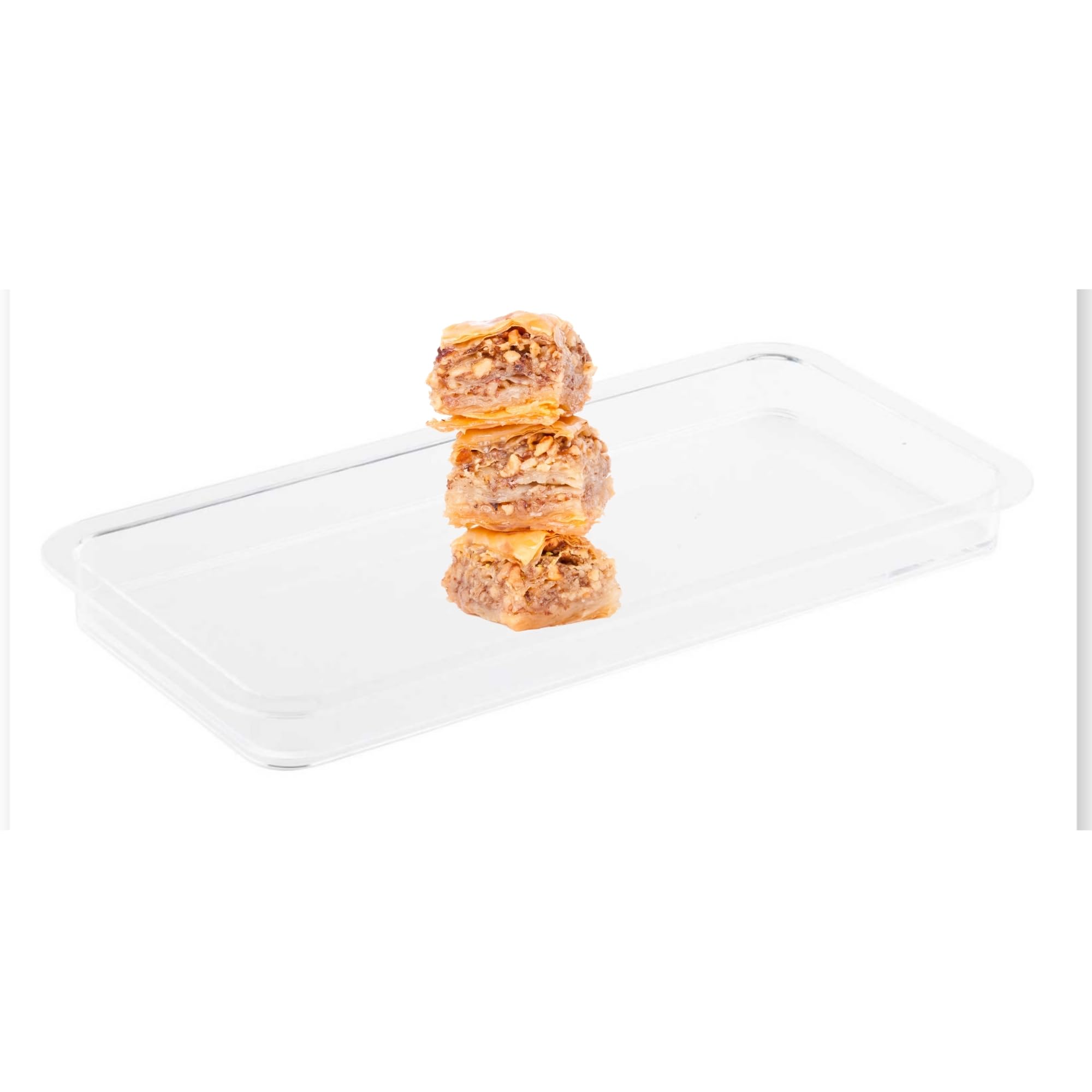 Upgrade your food presentation with this TableCraft 11886 Clear Rectangular Cake Plate—an elegant and functional addition to any restaurant, café, bakery, or catering setup. Made from durable, BPA-free SAN plastic, this sleek rectangle cake platter is part of TableCraft’s upscale bakery display collection and is designed to beautifully showcase cakes, pastries, appetizers, and sandwiches. The clear construction enhances visual appeal, while a built-in channel keeps your food items and compatible dome securely in place, making it ideal for both self-serve and staff-assisted displays.With its 14.75" x 7.25" size and modern design, this cake serving plate doubles as a versatile serving tray or dessert plate, fitting seamlessly into your existing serverware or serveware platter lineup. Whether you're serving delicate cakes, arranging appetizers, or displaying an assortment of treats on a rectangular serving platter, this cake plate ensures a clean, professional look that draws attention to your culinary creations. Easy to clean and built for daily use, it’s the reliable solution for commercial kitchens needing stylish, multipurpose cake platters and dessert trays.Item Details:Styrene Acrylonitrile (SAN), Clear Dimension: 14.75" x 7.25" Easy to clean, dishwasher safe BPA free