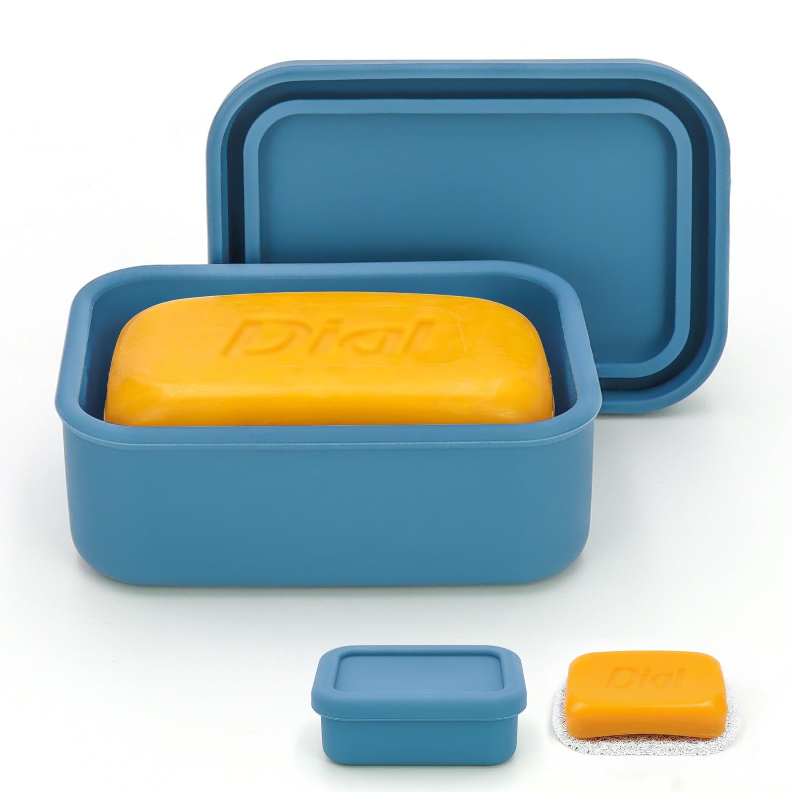 AIDIMMING Leak Proof Silicone Travel Soap Case with Draining Layer, Dark Blue
