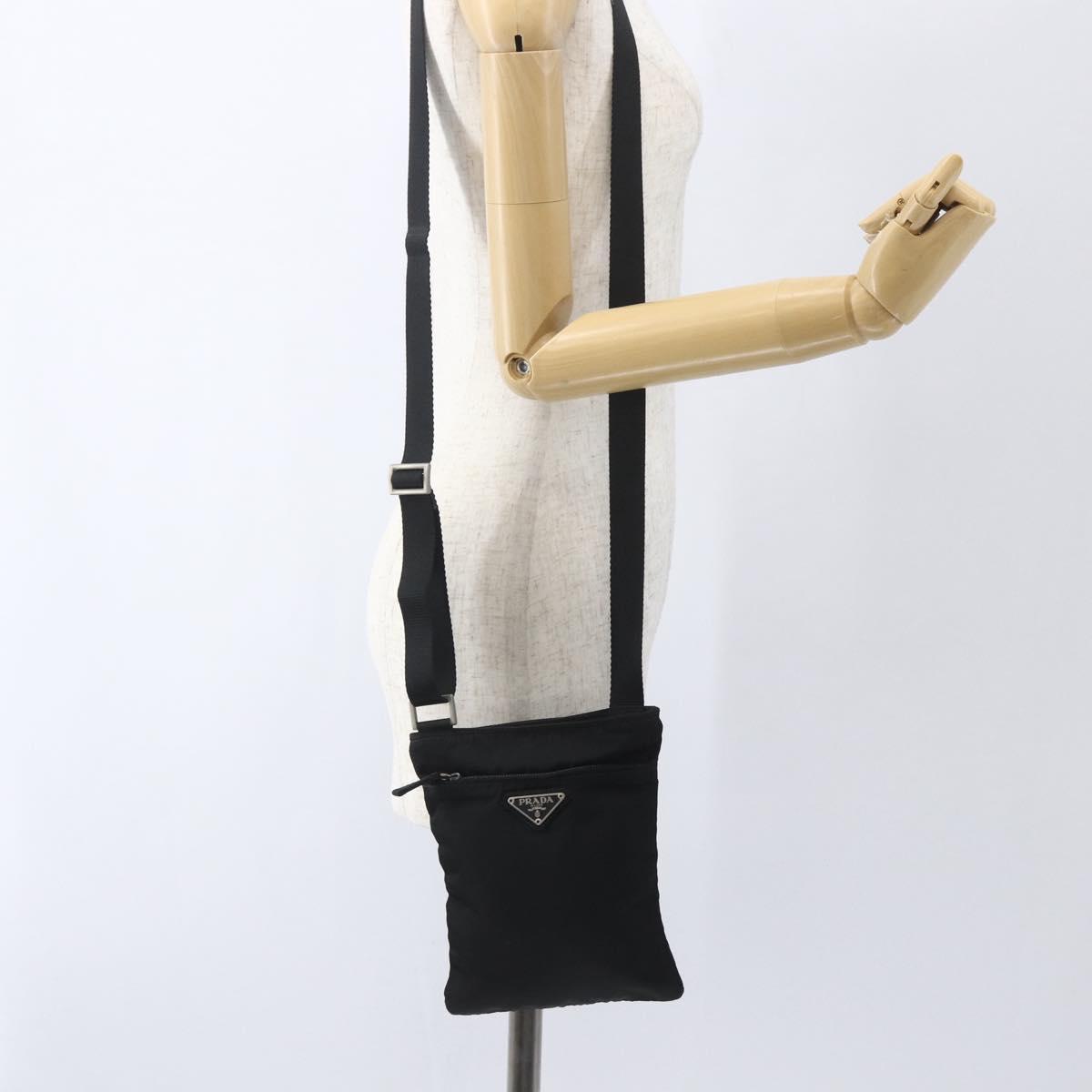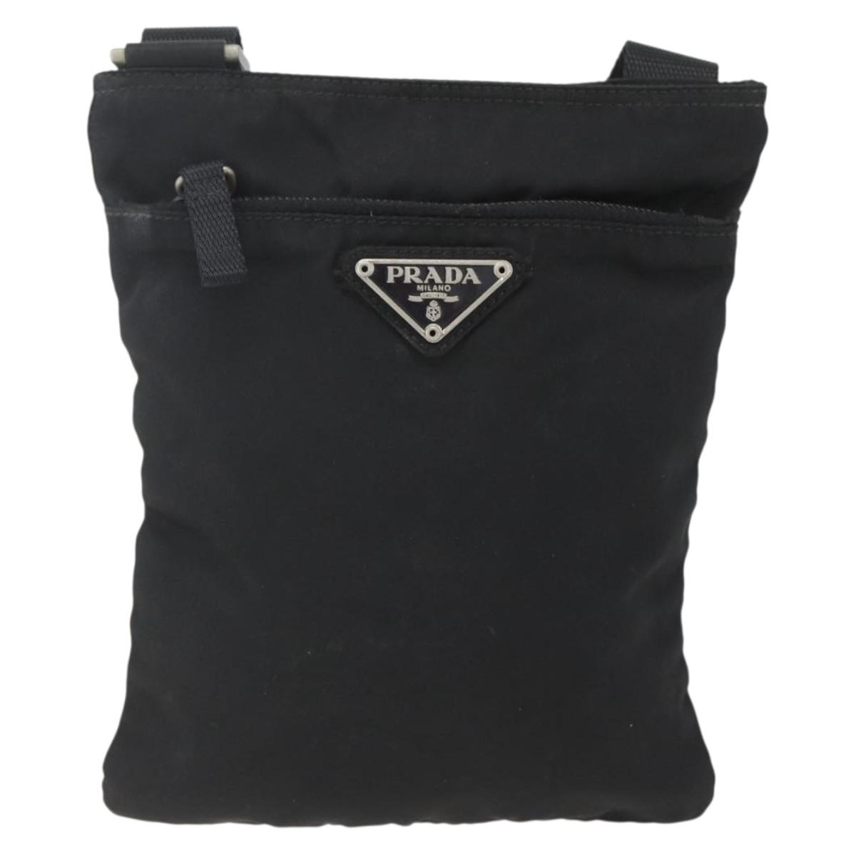 PRADA Shoulder Bag Nylon Black Silver Auth 168360