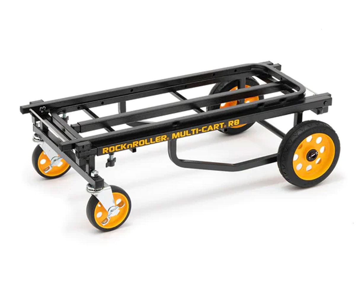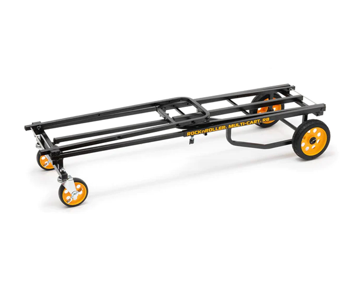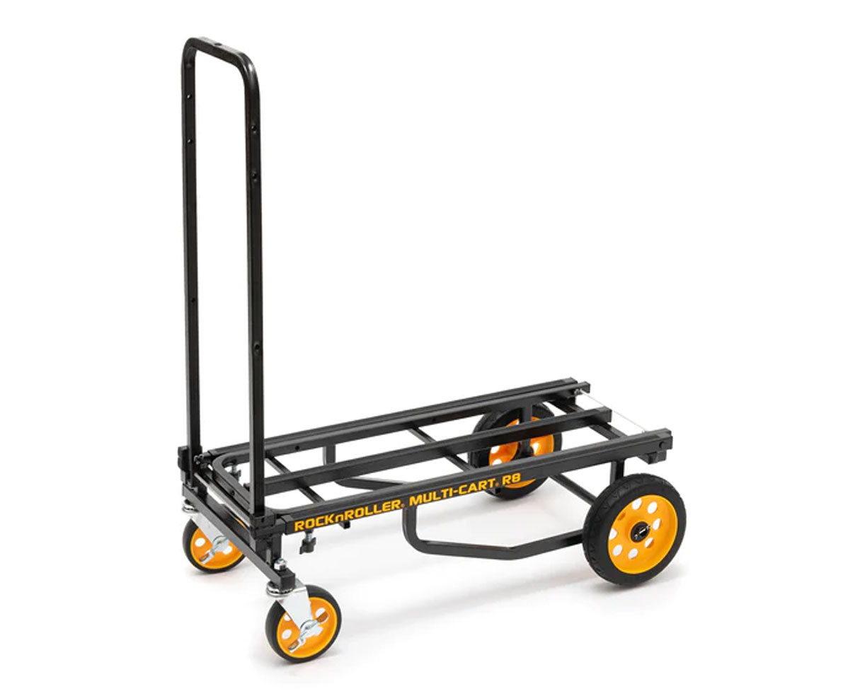 The RocknRoller Multi-Cart R8RT comes with sturdy, foam-filled, low profile “no-flat” 8" rear wheels and 5" front swivel casters, making it effortless to move massive amounts of gear quickly and efficiently. Its telescoping frame extends from 34" to 52"and it has a weight capacity of 500 lbs, yet its fold-away design allows for compact storage and transportation. Its R-Trac tires provide smooth rides and excellent traction, similar to traditional pneumatic tires, but without the hassle of maintenance. The patented 8-in-1 design lets you adjust it to different wildly different load sizes quickly and efficiently. Plus, the textured powder-coated steel construction ensures durability and reduces slippage during transport.
