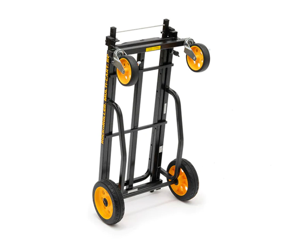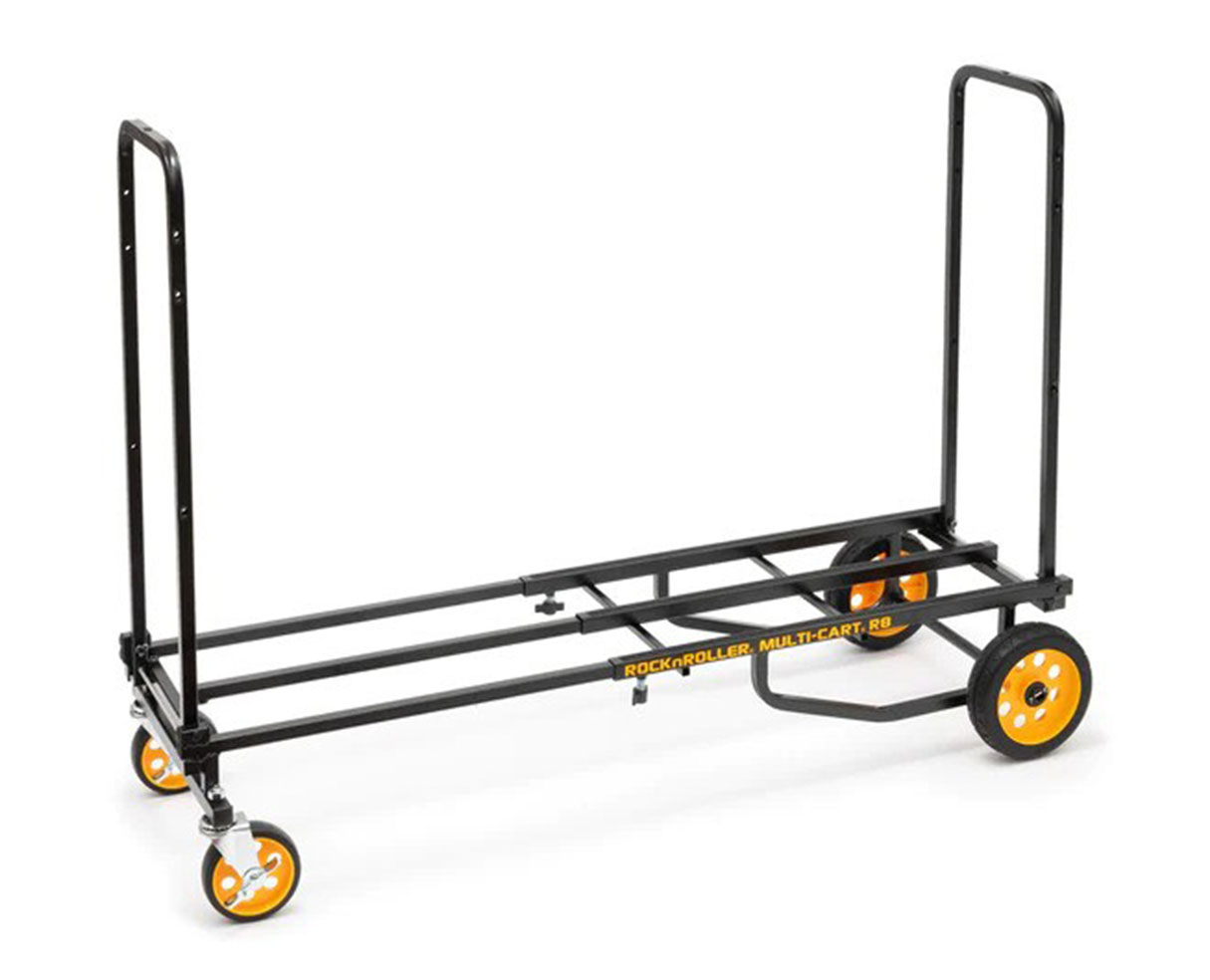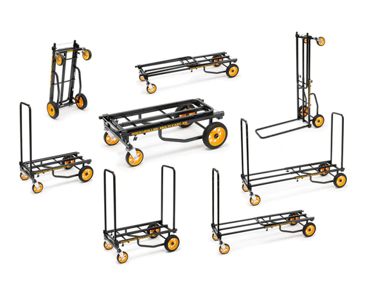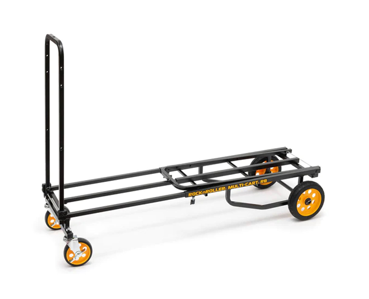 The RocknRoller Multi-Cart R8RT comes with sturdy, foam-filled, low profile “no-flat” 8" rear wheels and 5" front swivel casters, making it effortless to move massive amounts of gear quickly and efficiently. Its telescoping frame extends from 34" to 52"and it has a weight capacity of 500 lbs, yet its fold-away design allows for compact storage and transportation. Its R-Trac tires provide smooth rides and excellent traction, similar to traditional pneumatic tires, but without the hassle of maintenance. The patented 8-in-1 design lets you adjust it to different wildly different load sizes quickly and efficiently. Plus, the textured powder-coated steel construction ensures durability and reduces slippage during transport.