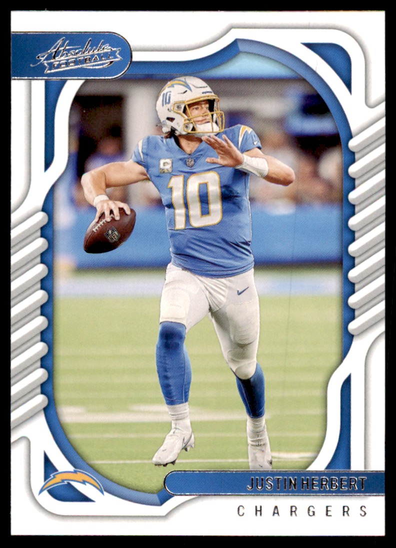 | Description: | Justin Herbert | | Category: | Football | | Year: | 2022 | | Product: | Panini Absolute: | | Team: | Los Angeles Chargers | | Card Number: | 87 | | Dimensions: | 3½" x 2½" |
