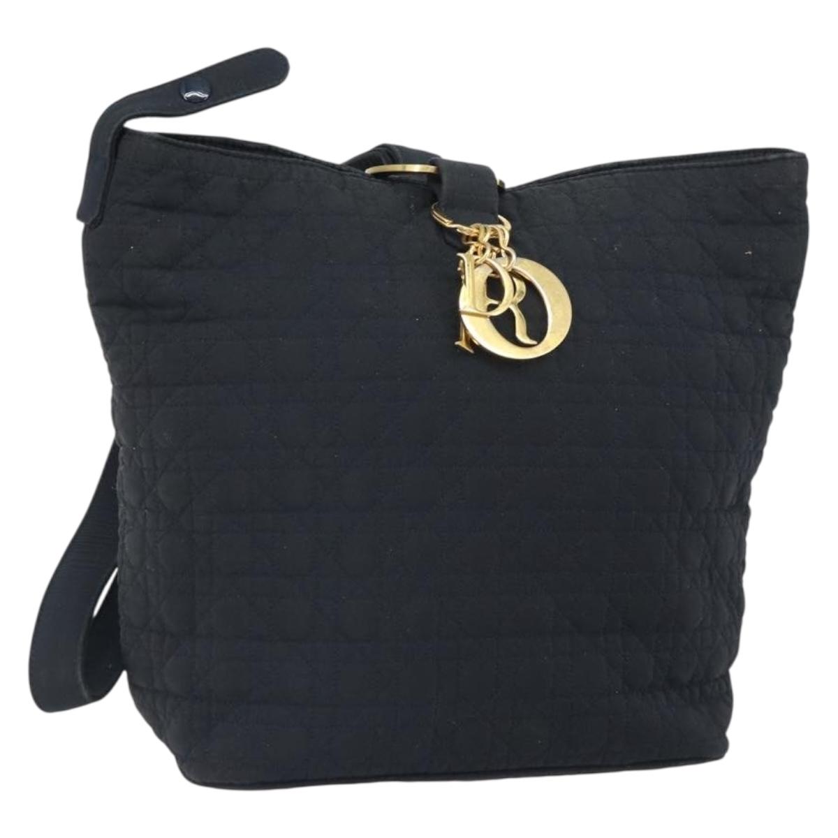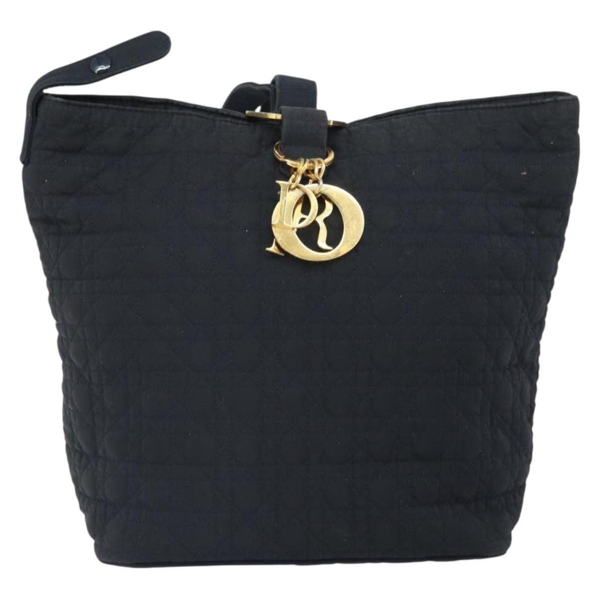 Christian Dior Canage Shoulder Bag Nylon Black Gold Auth 166720
