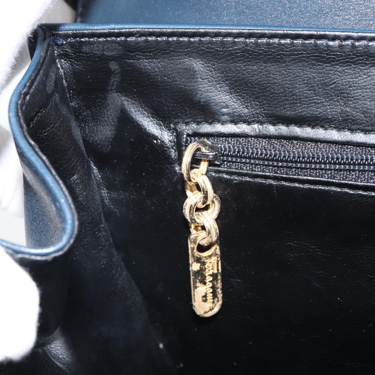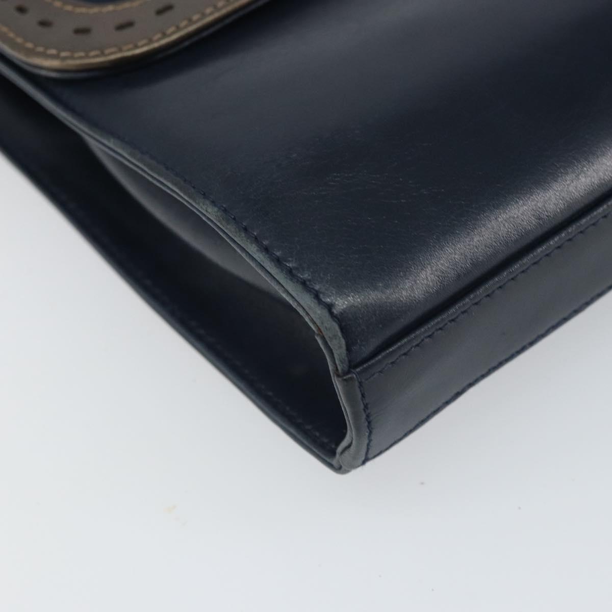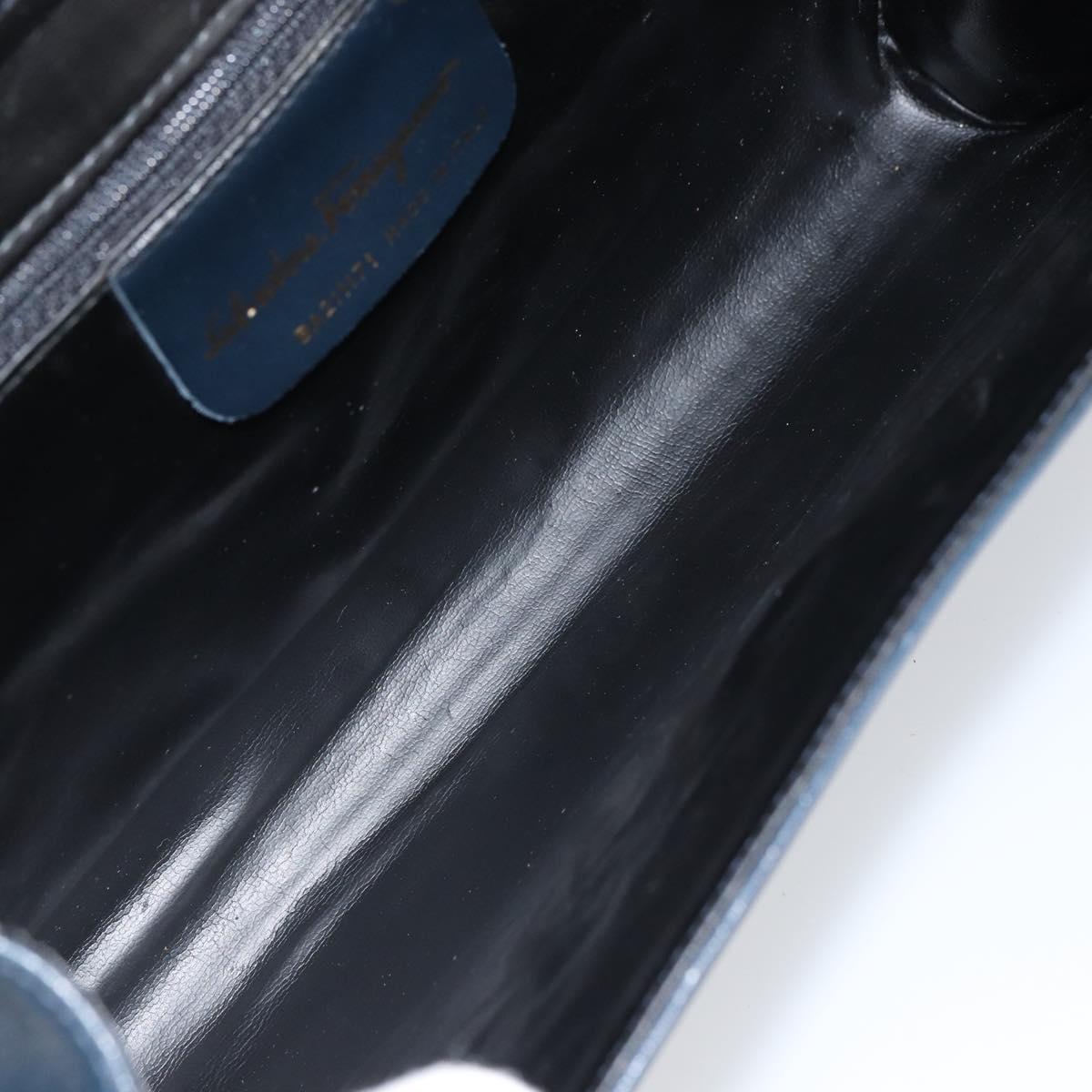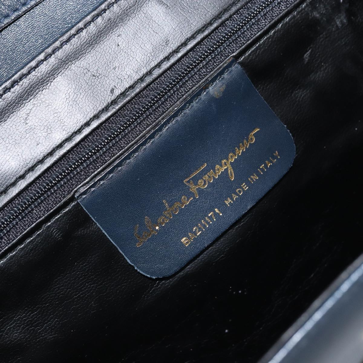 Salvatore Ferragamo Shoulder Bag Leather Navy Gold Auth 166744
