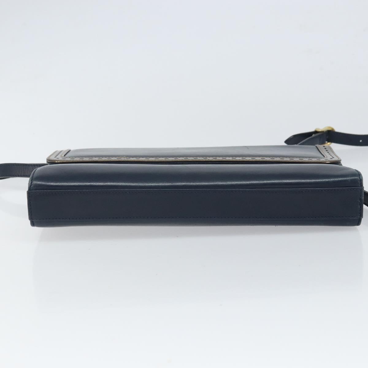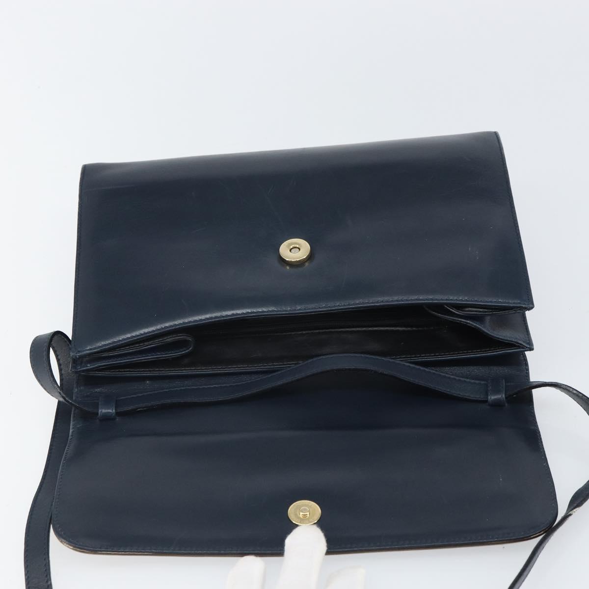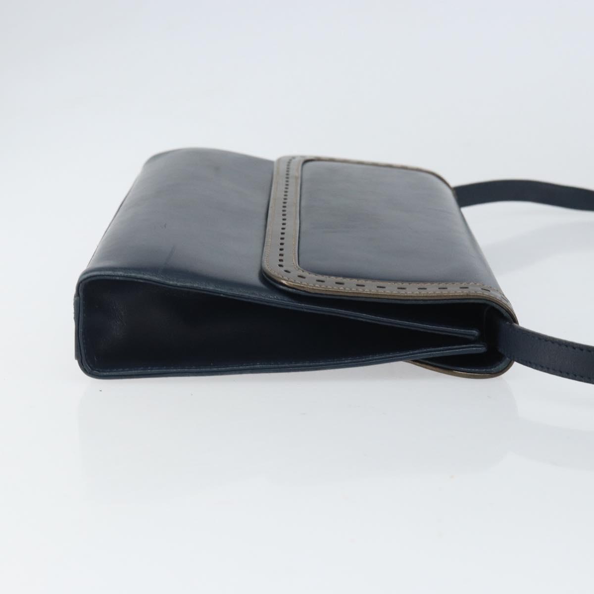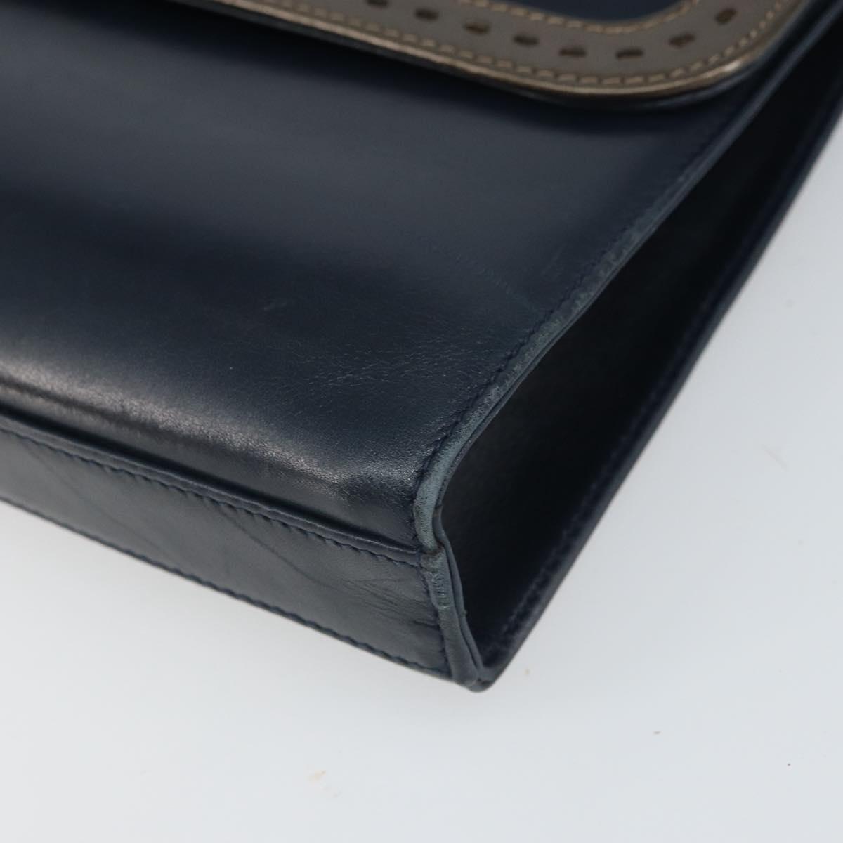 Salvatore Ferragamo Shoulder Bag Leather Navy Gold Auth 166744
