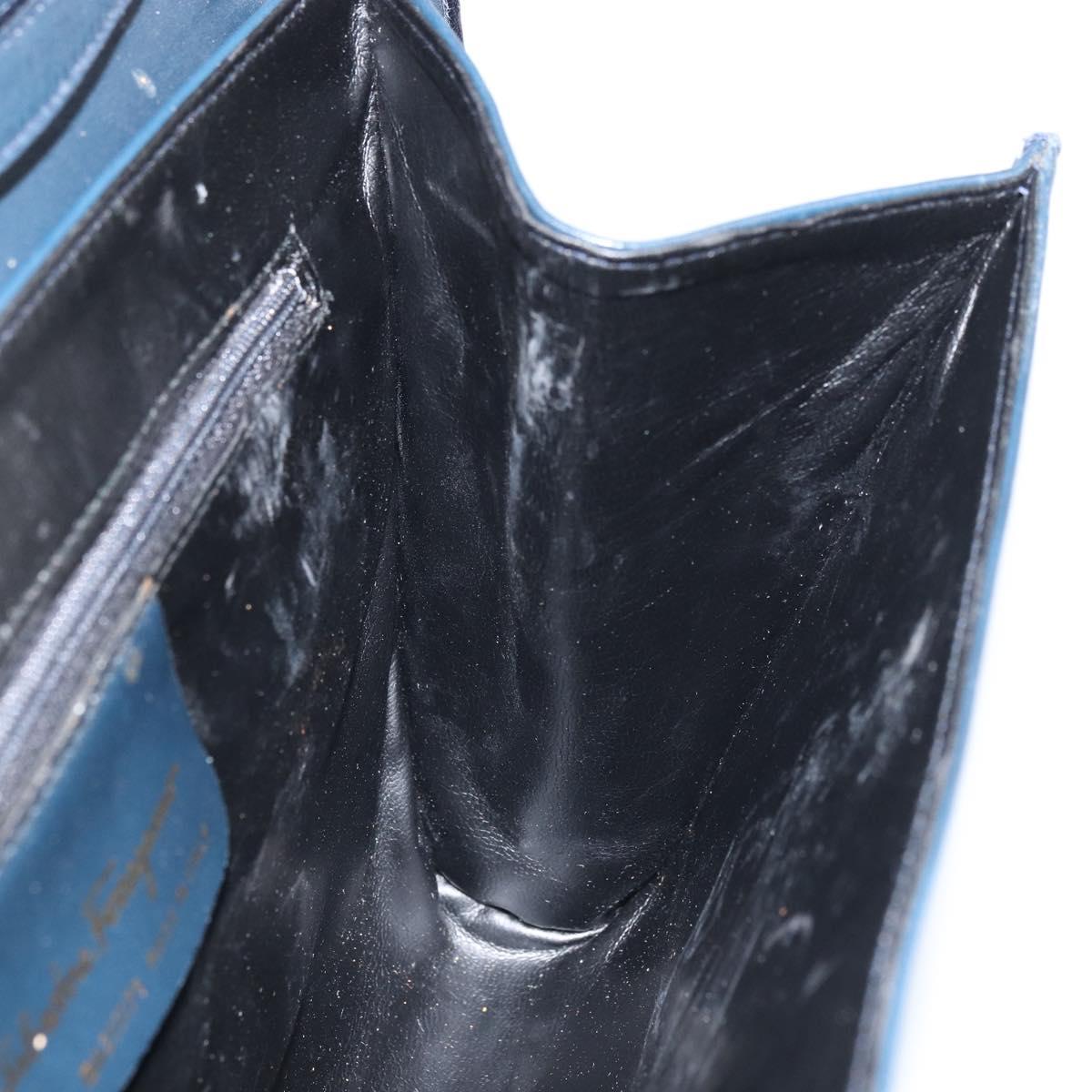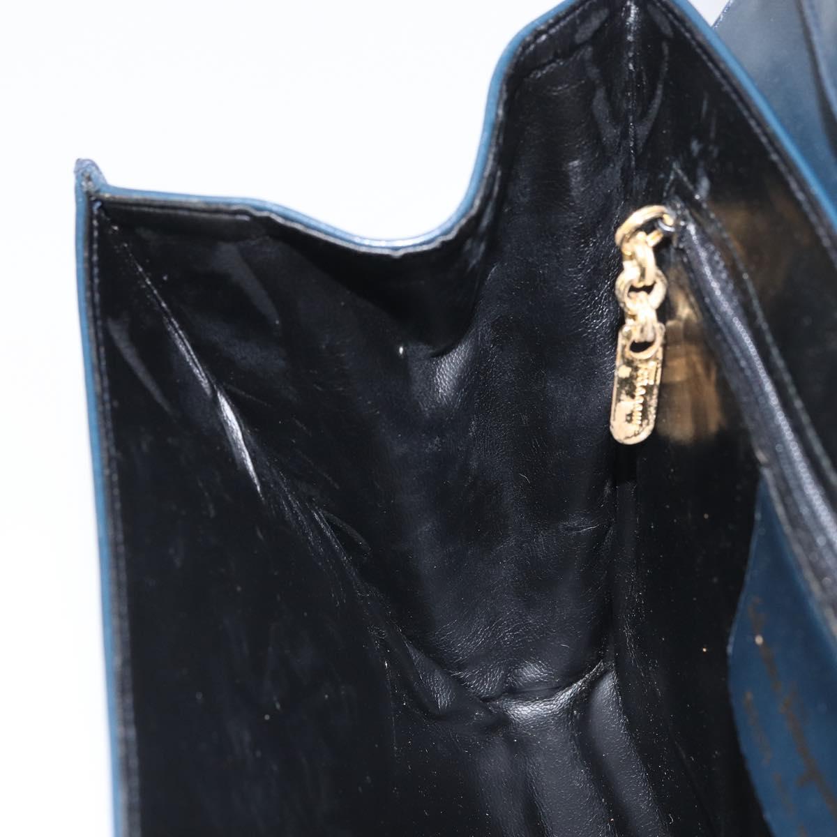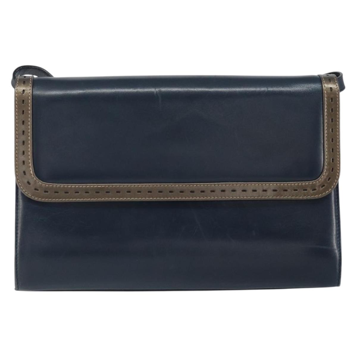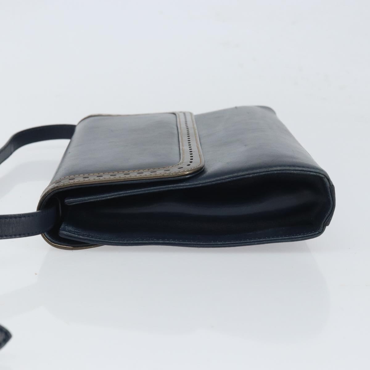 Salvatore Ferragamo Shoulder Bag Leather Navy Gold Auth 166744