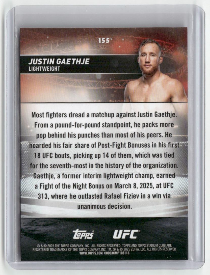 | 2025 Topps Stadium Club UFC Black Foil - Justin Gaethje #155 |
