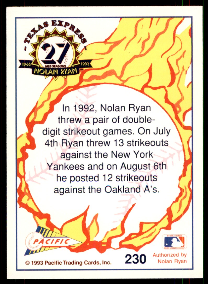 | 1993 Pacific Texas Express Multiple Strikeout Games Baseball Cards #230 |