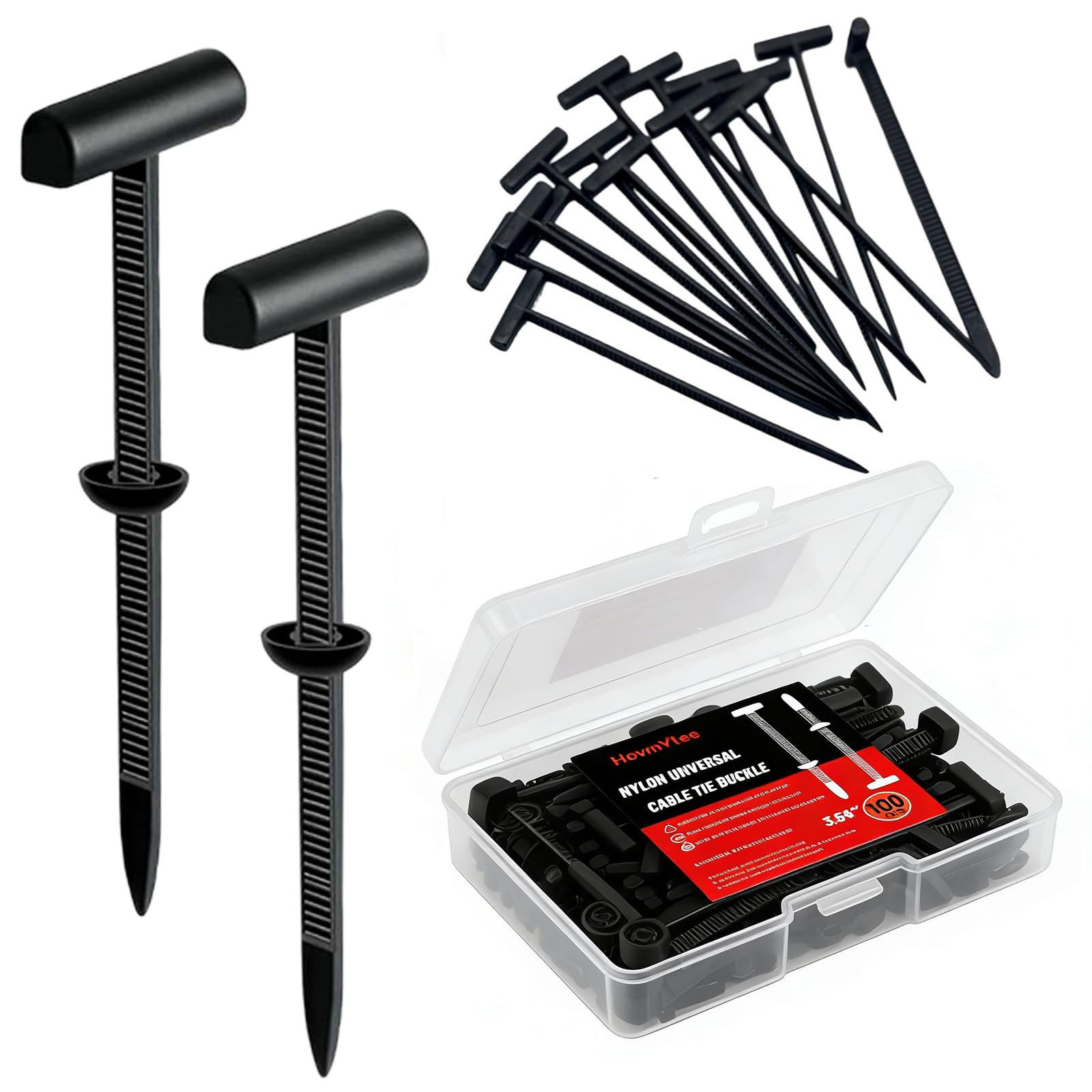 Upgrade Nylon Universal Cable Tie Buckle with Storage Box, 100PCS, Black