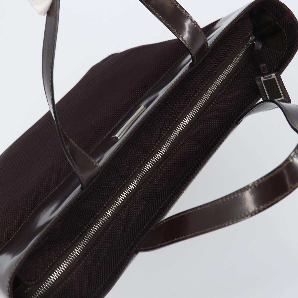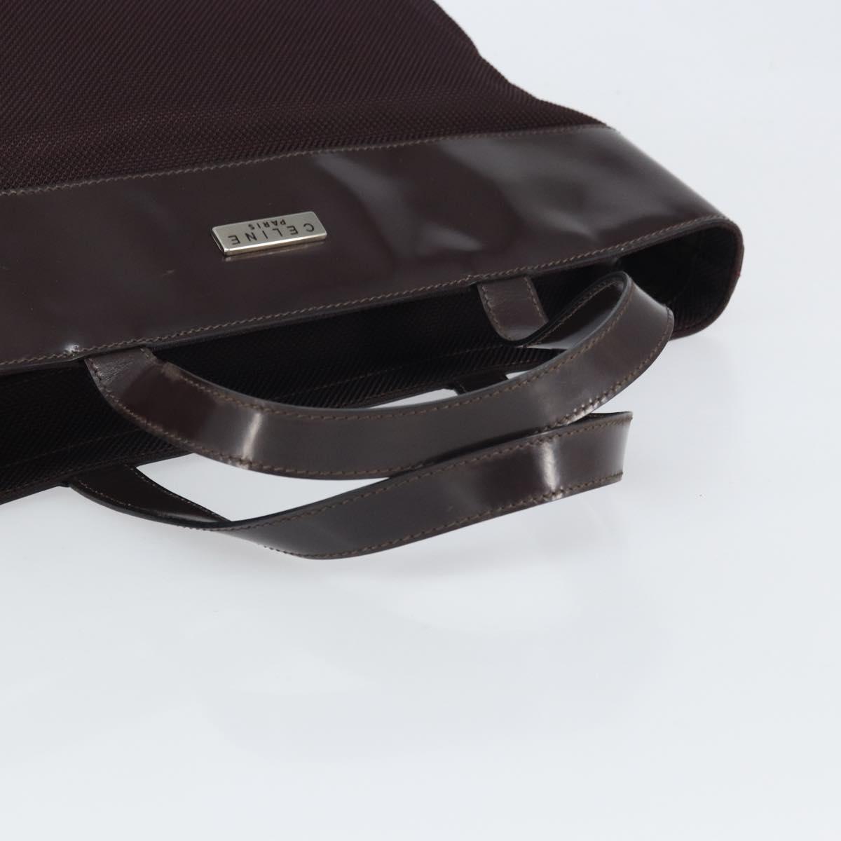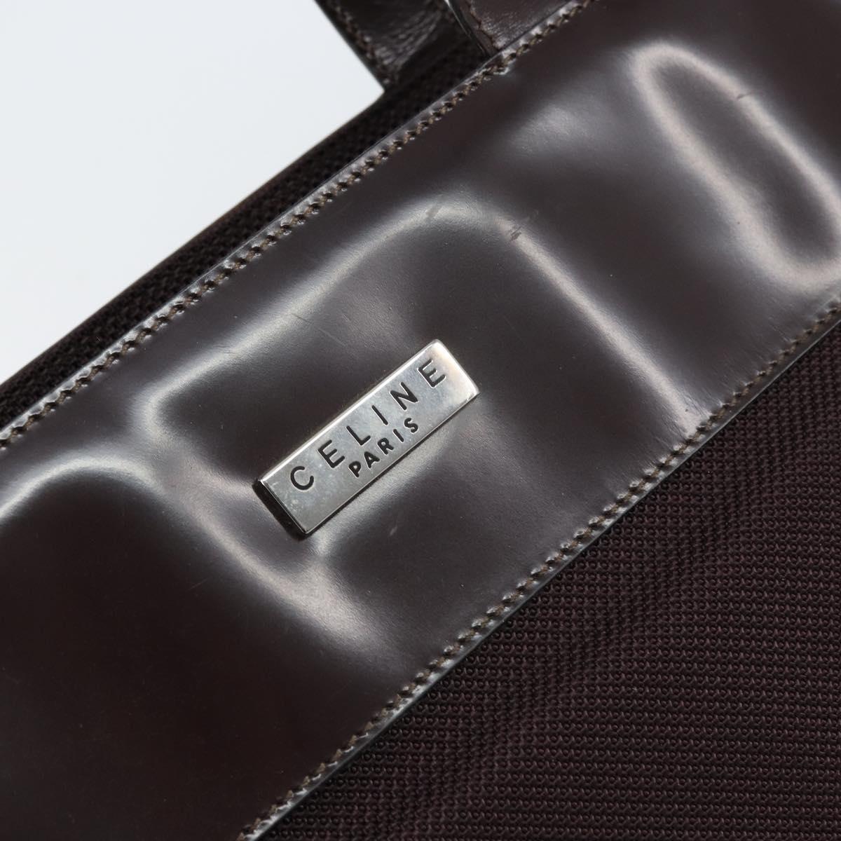 CELINE Tote Bag Canvas patent leather Brown Silver Auth 162037