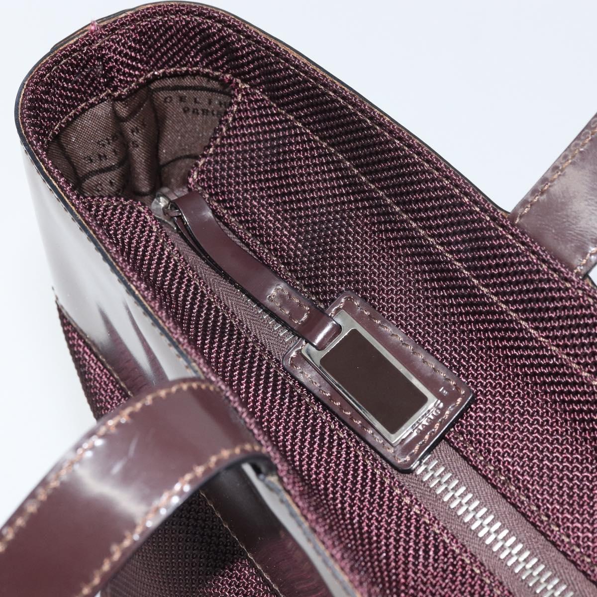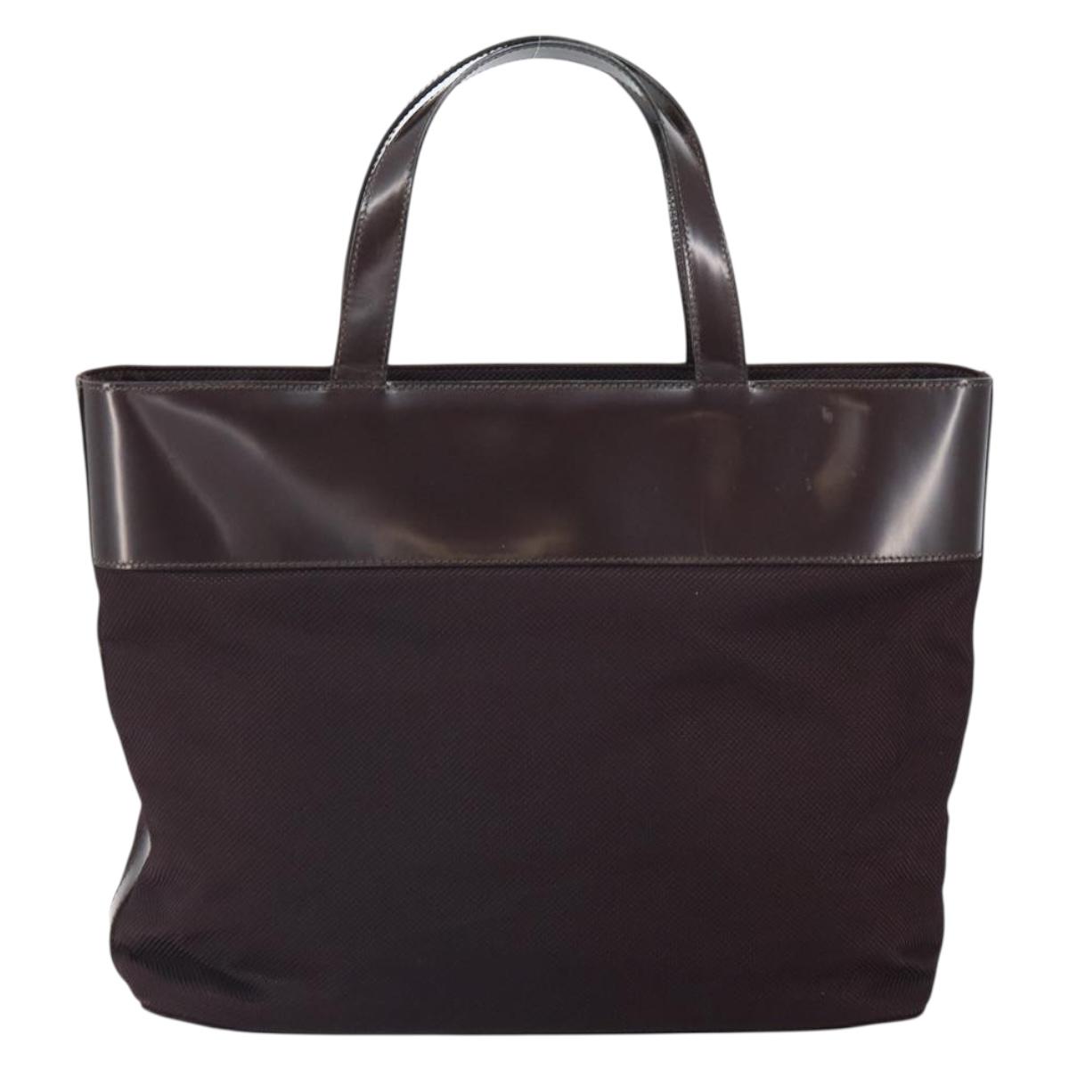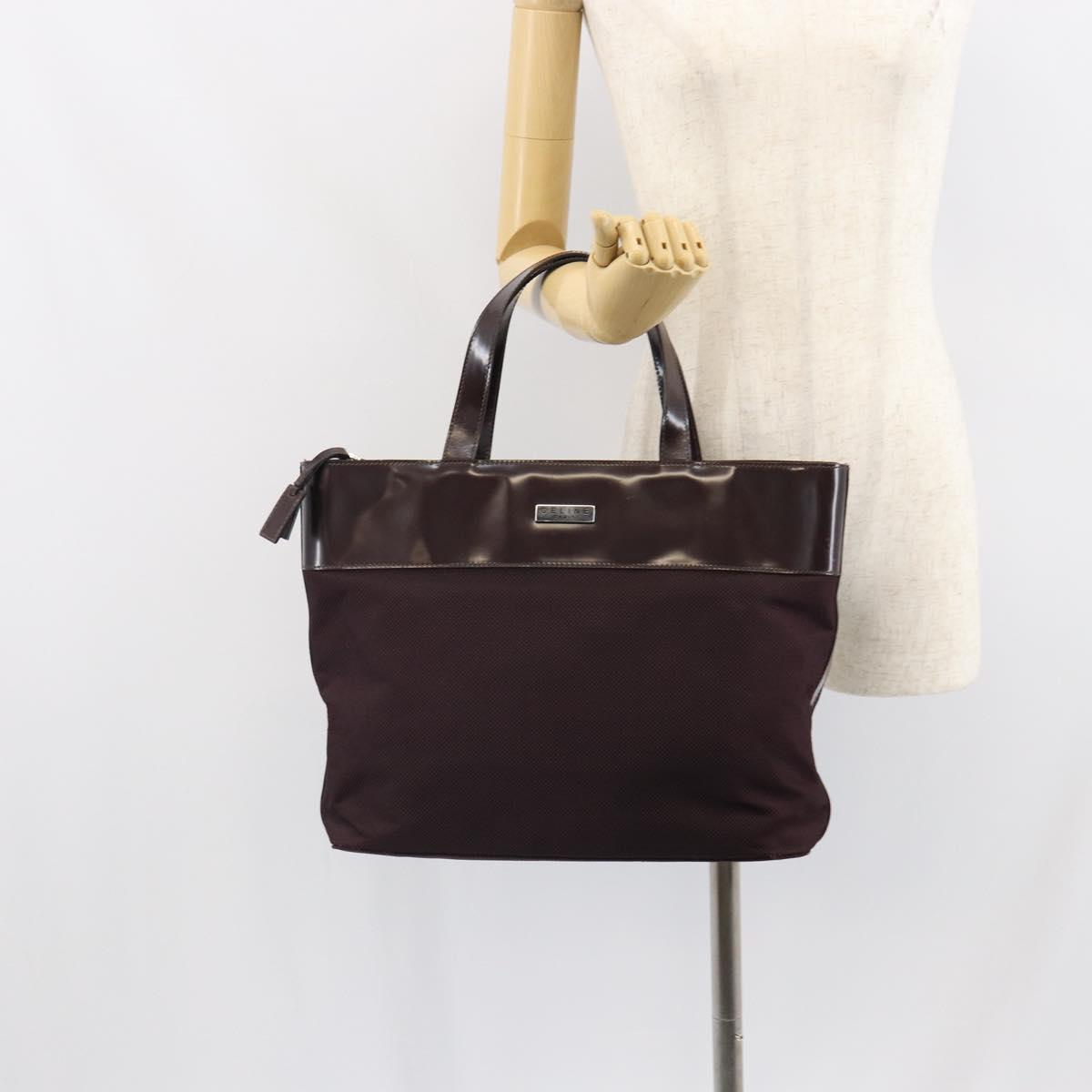CELINE Tote Bag Canvas patent leather Brown Silver Auth 162037