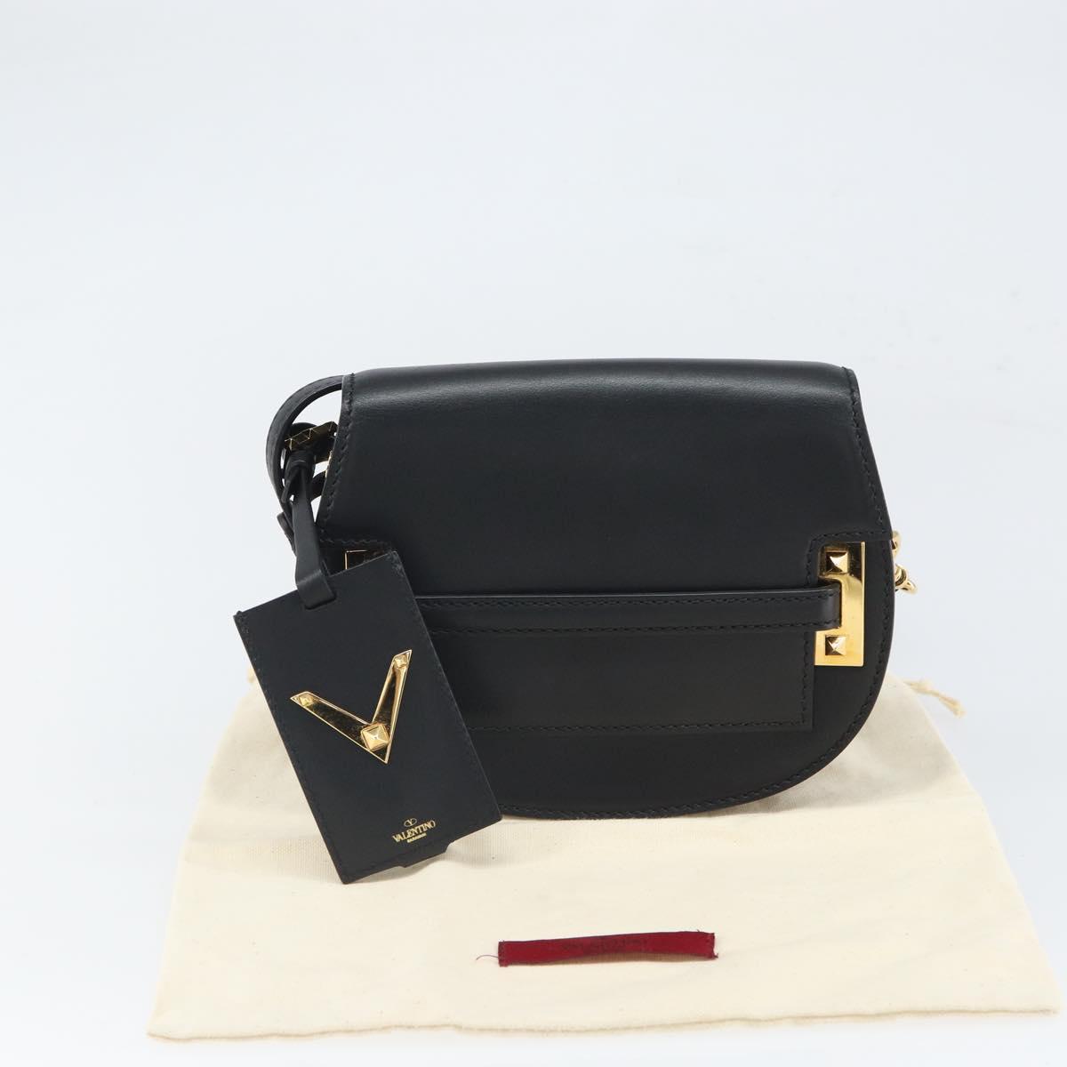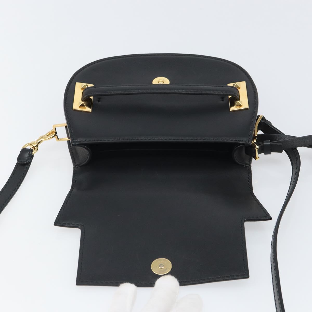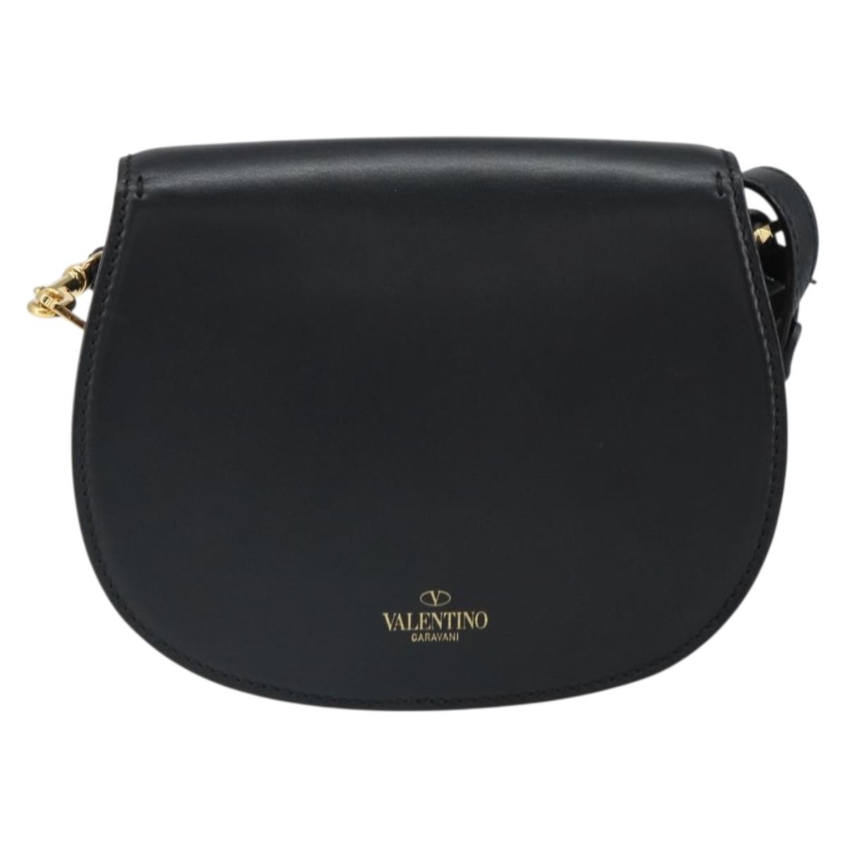 VALENTINO Shoulder Bag Leather Black Gold Auth ka1669V
