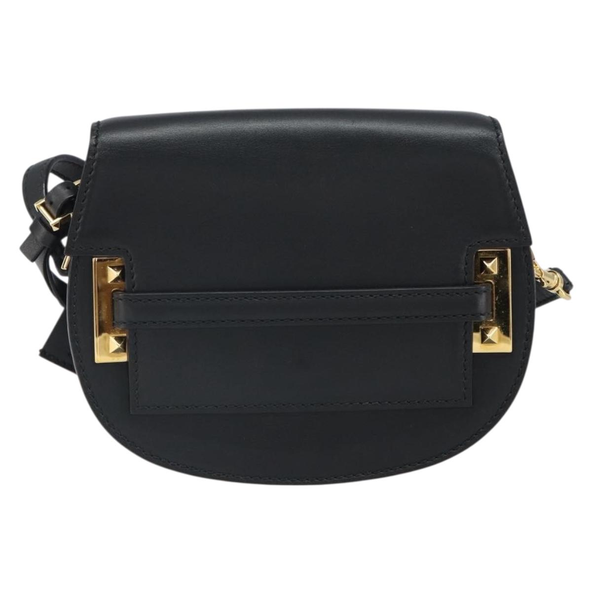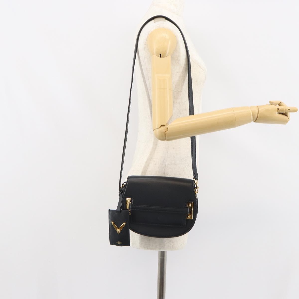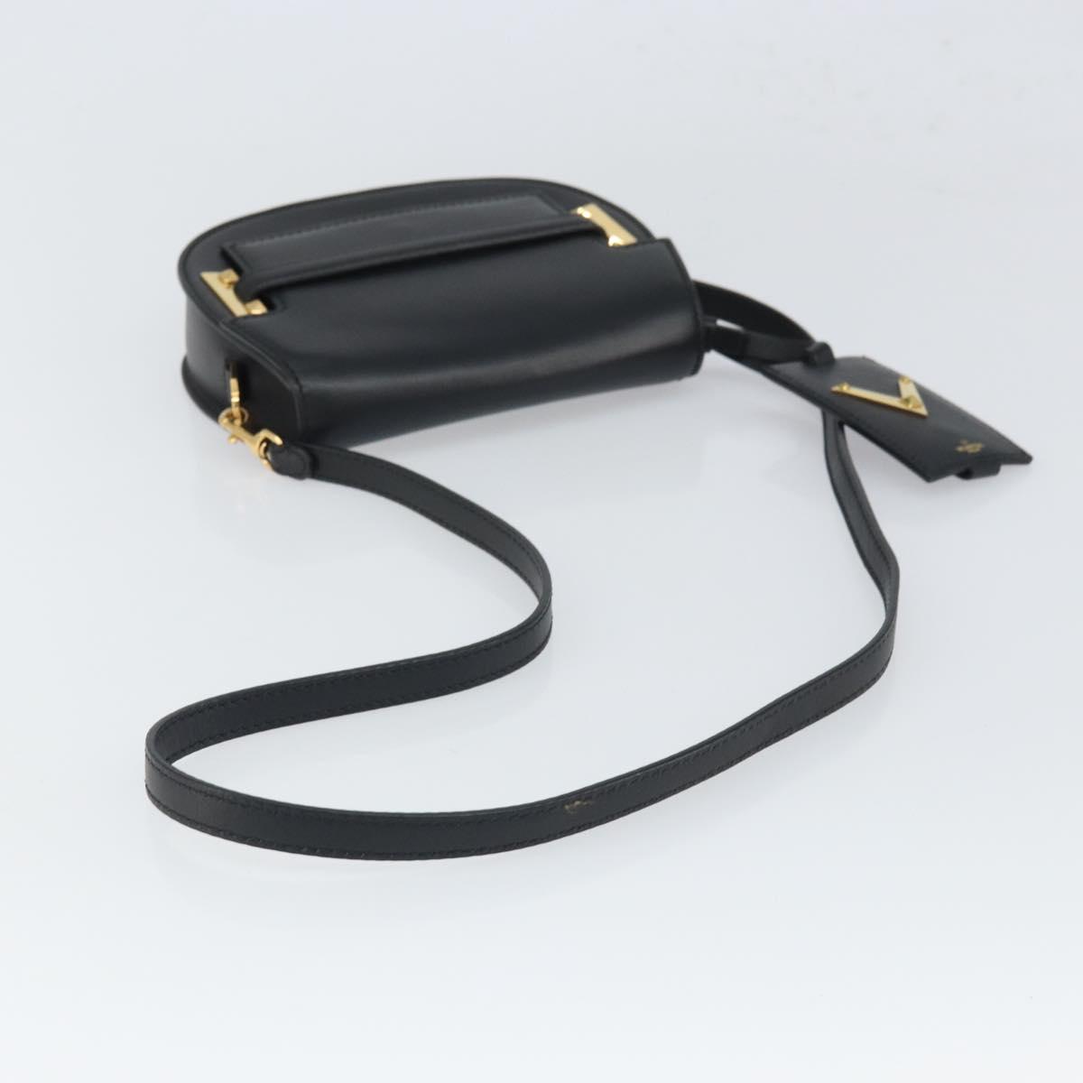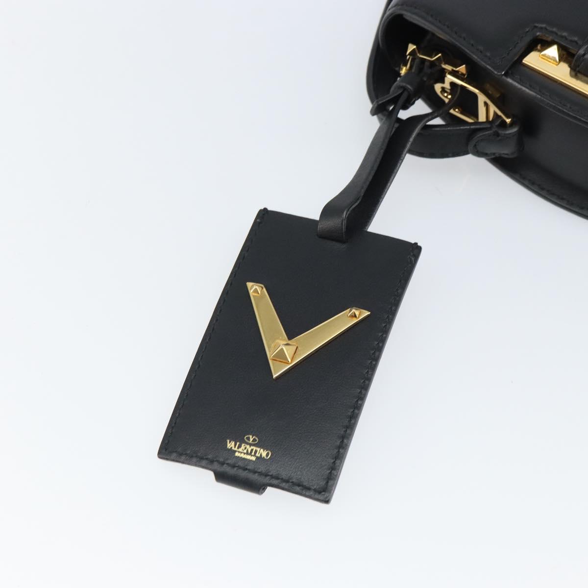 VALENTINO Shoulder Bag Leather Black Gold Auth ka1669V
