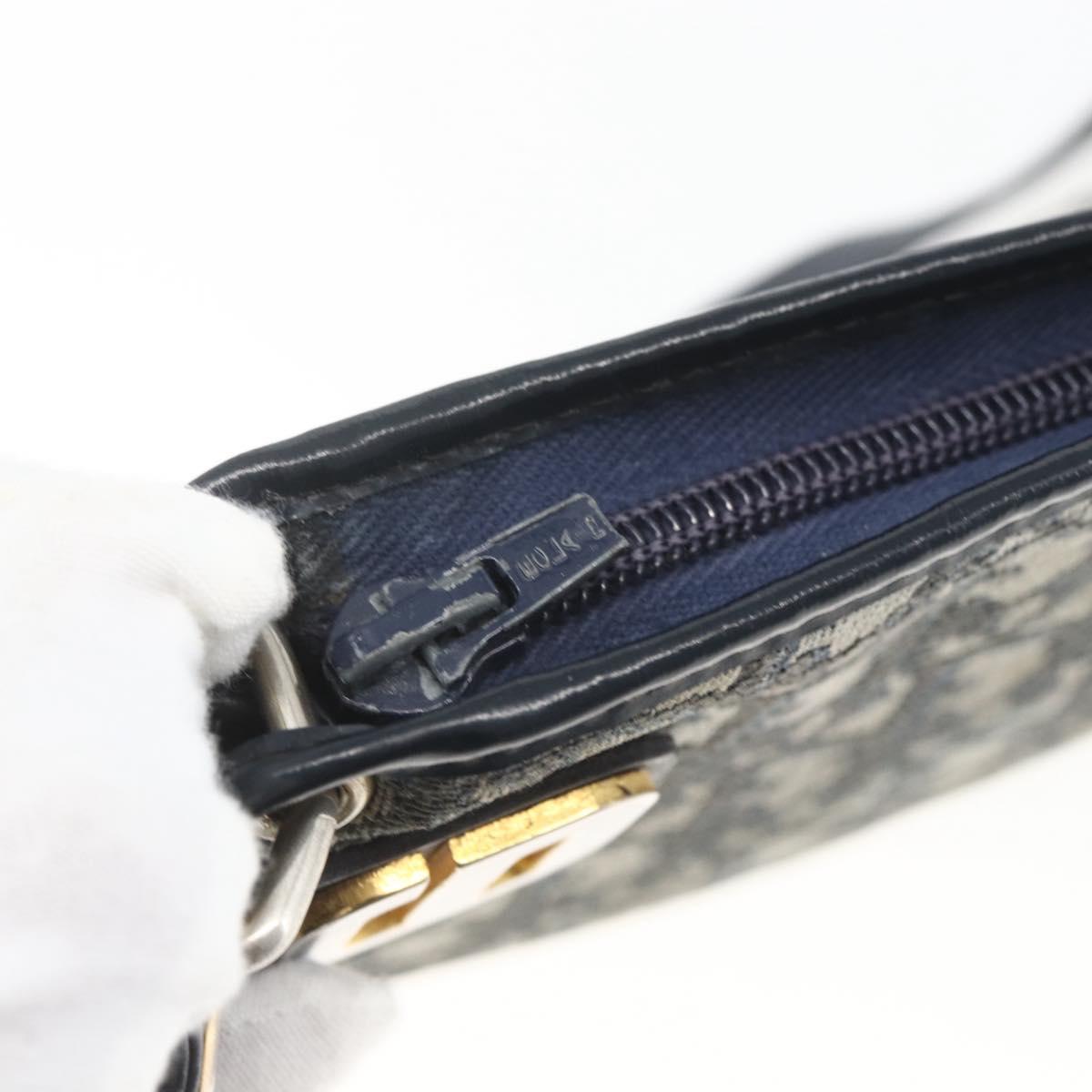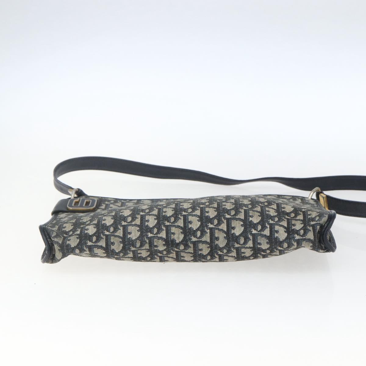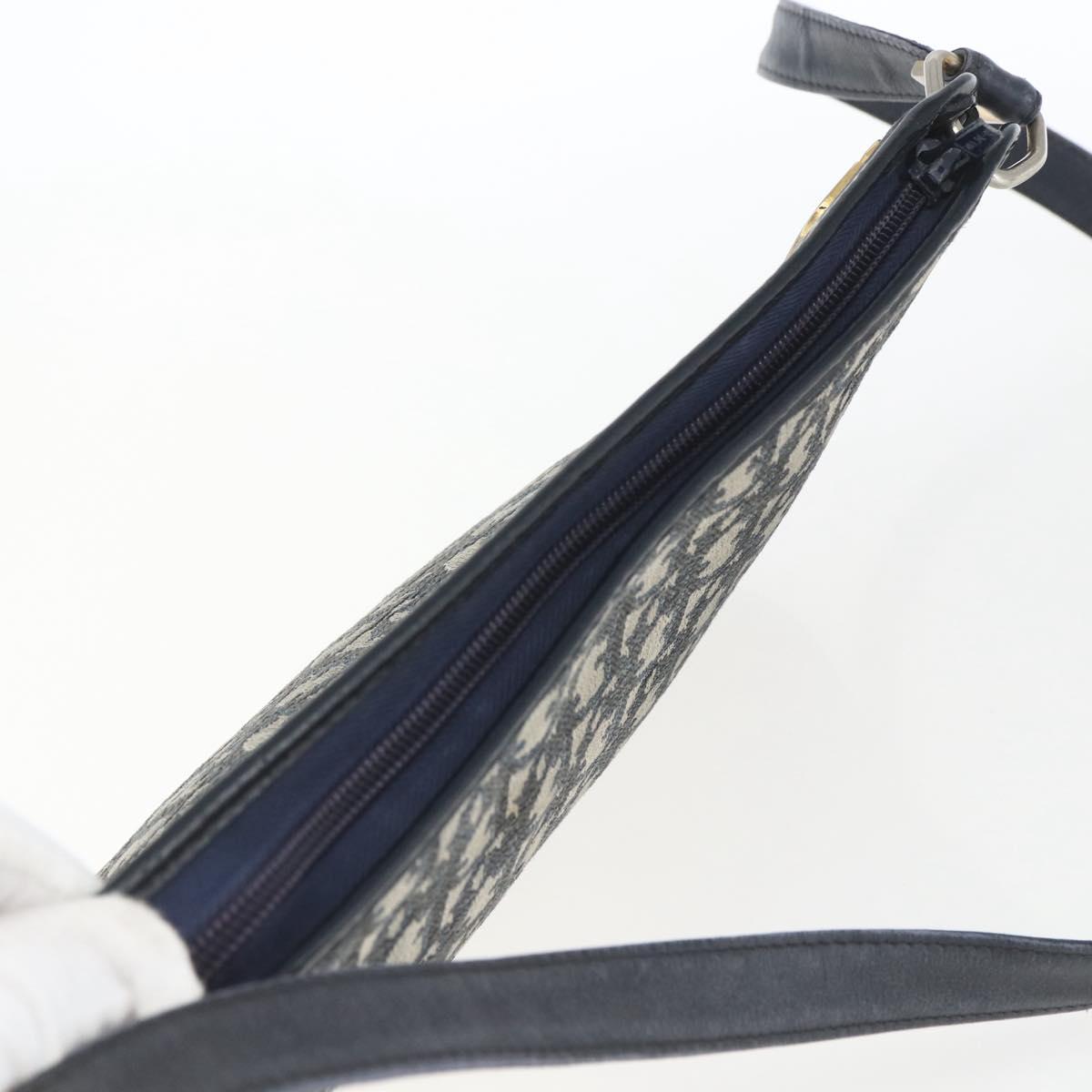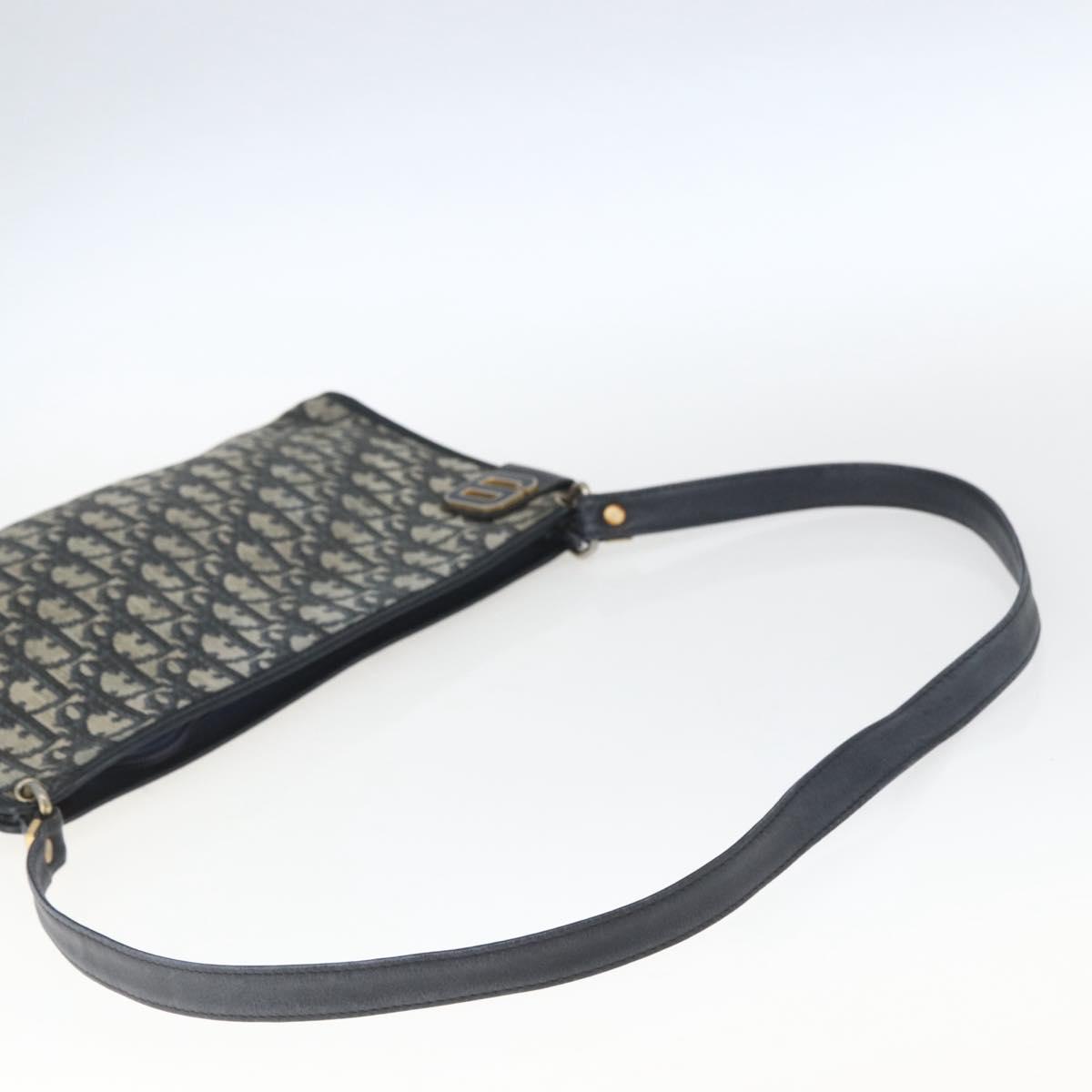 Christian Dior Trotter Canvas Shoulder Bag Beige Navy gold Auth 100669